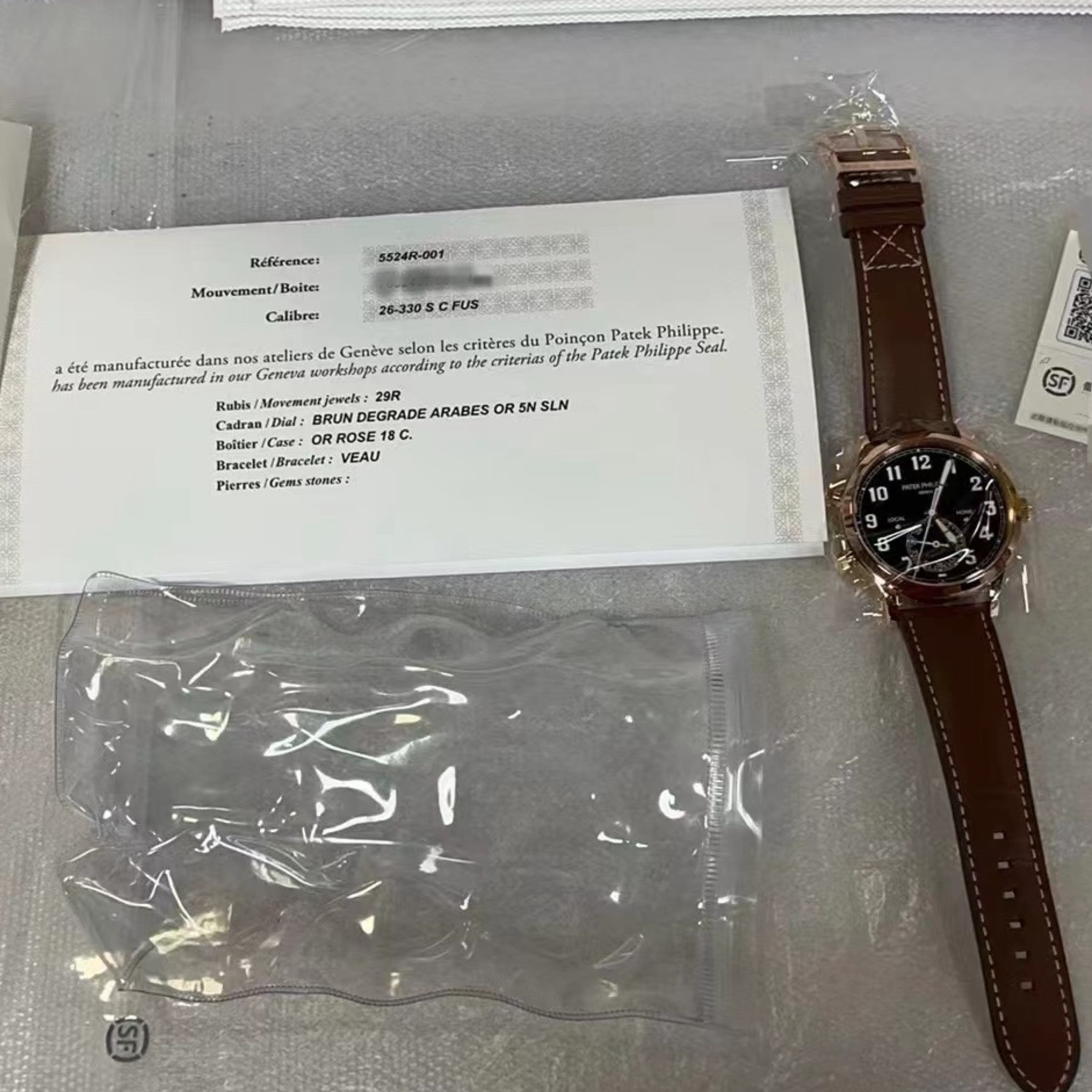【全新现货】24年未使用 百达翡丽5524R玫瑰金飞行员两地时腕表全新正品现货!全新百达翡丽专柜正品5524R机械表+18K玫瑰金+42mm+24年全新未使用+有保卡无盒+老徐未使用报告+现特价出~