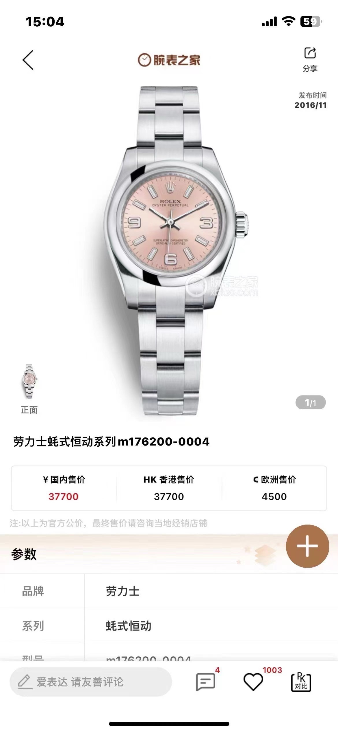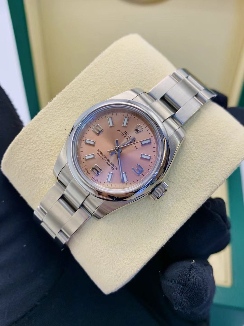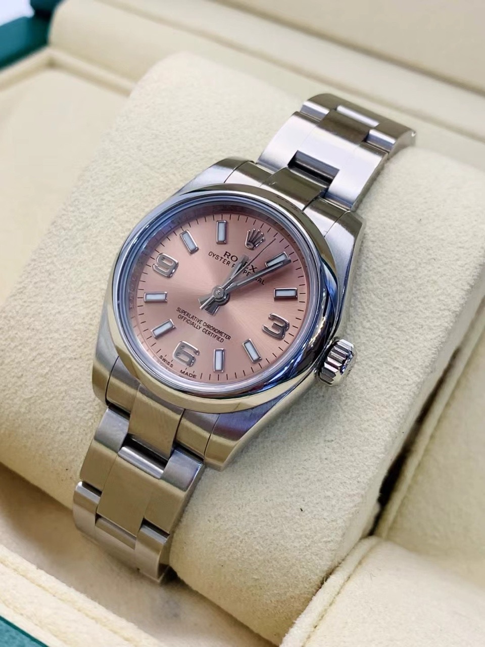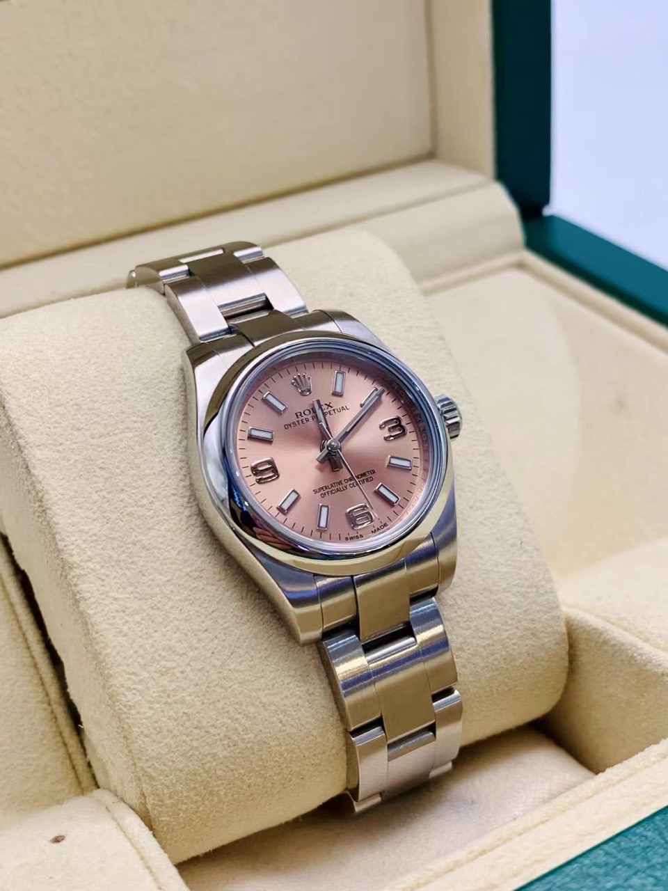 劳力士 蚝式恒动 176200粉盘 自动机械女表 表径26mm 精钢材质 夜光刻拼数字公价 37700