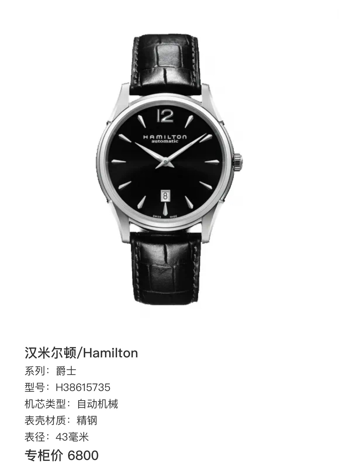 自动机械 精钢 43毫米 专柜价 6800~