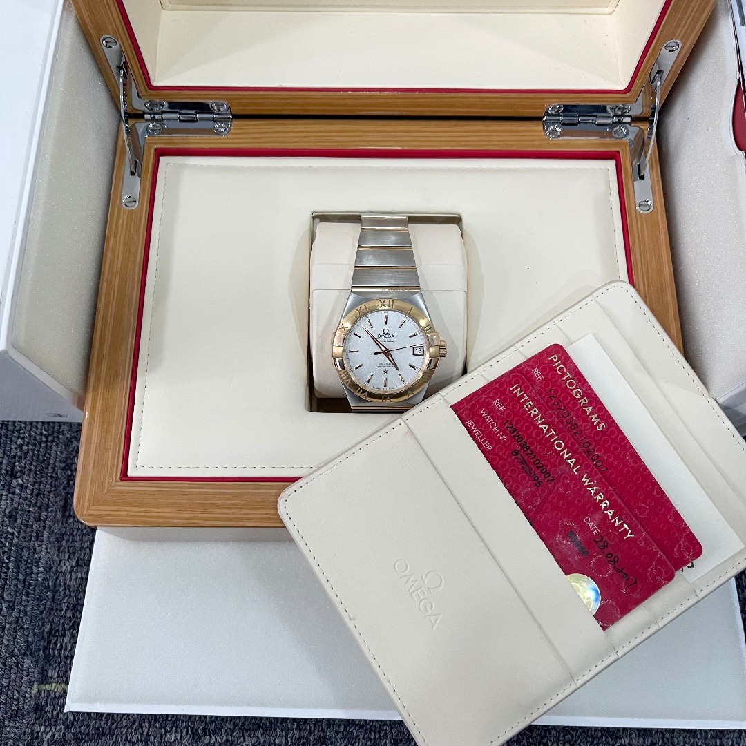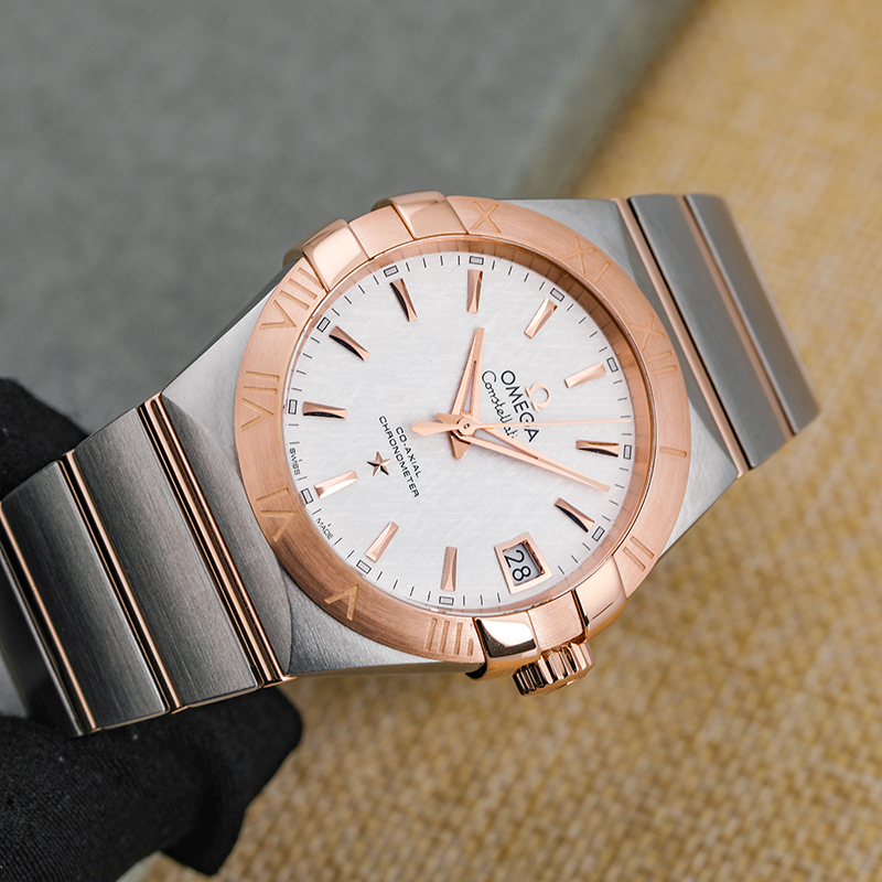 欧米茄星座123.20.38.21.02.007自动机械男士腕表,表径38mm、精钢/18K玫瑰金、背透8500机芯、17年8月全套附件齐全,专柜价65200,现好价秒杀