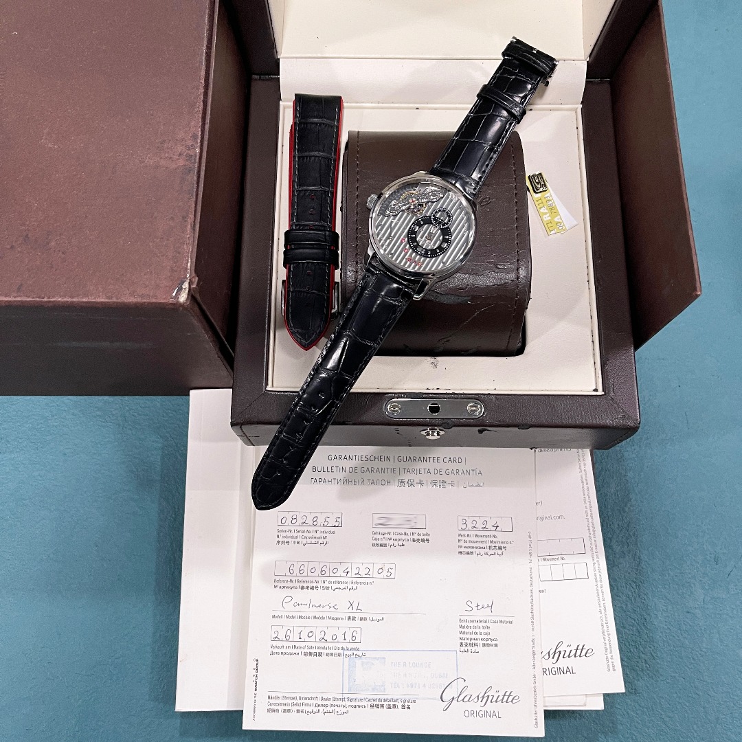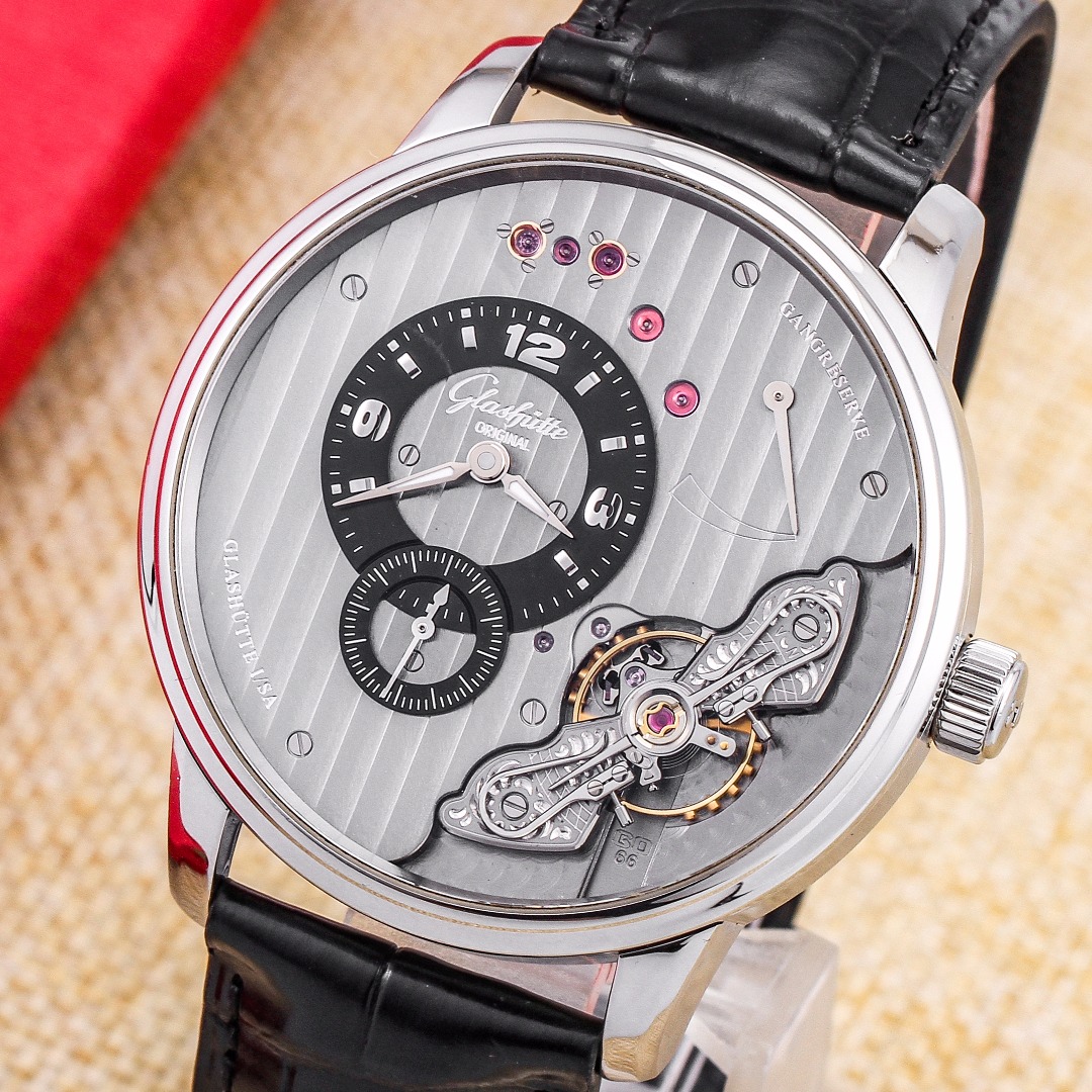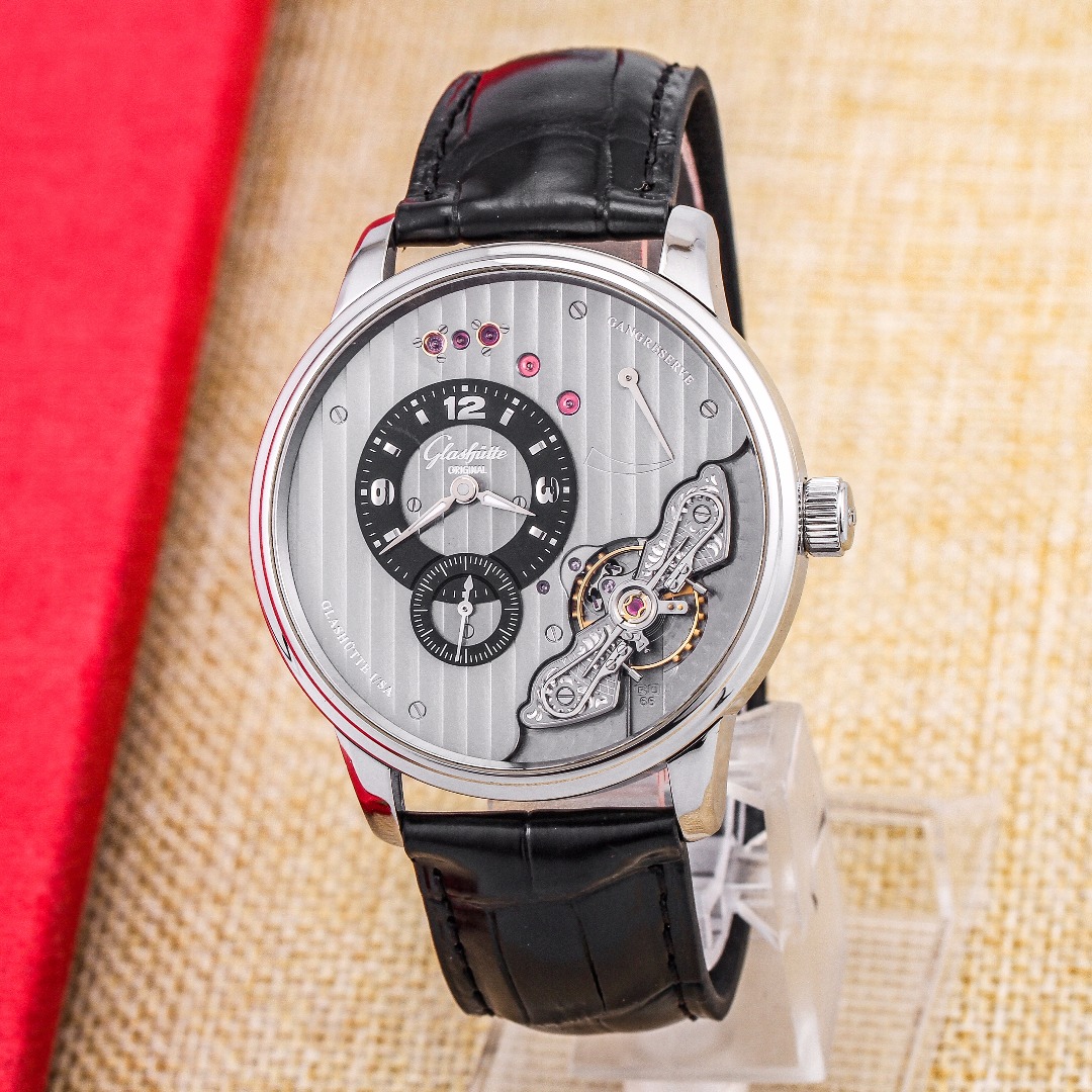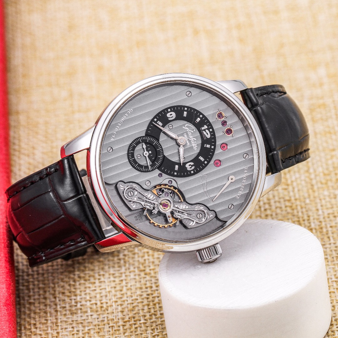 格拉苏偏蒂心系列1-66-06-04-22-05手机动械男表,动储显示,双鹅颈正显,小针盘,真皮表带,2016年10月大套,公价96500,现货好价