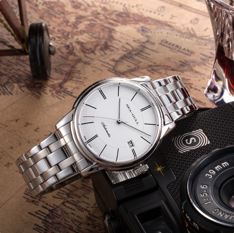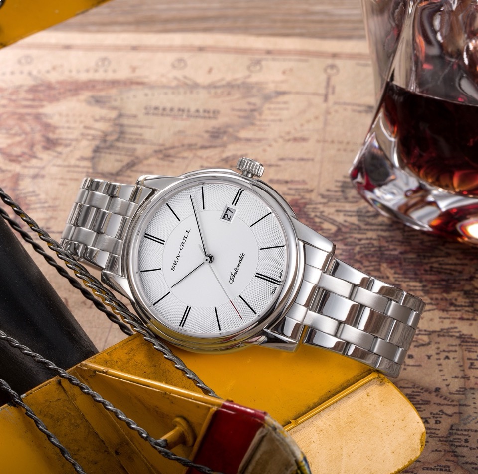 海鸥Sea-Gull国民系列 D816.405商务日历男士 自动机械机芯 钢表带 国表 男表 白色表盘 简约钢带设计 表径40毫米 动储42小时,专柜售价2200 全新全套全国联保近期保卡