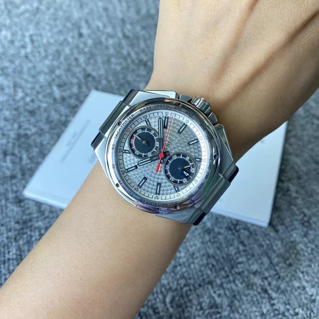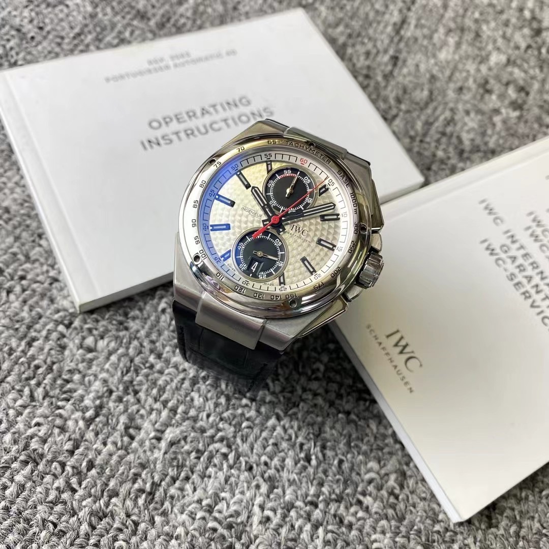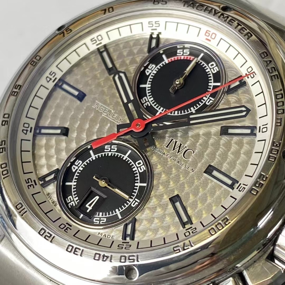 万国工程师系列 ,公价8.5万,表径45MM,单表,极品成色,质感鱼麟纹表盘,熊猫面配色,飞返计时功能,极具性价比 稀有款。