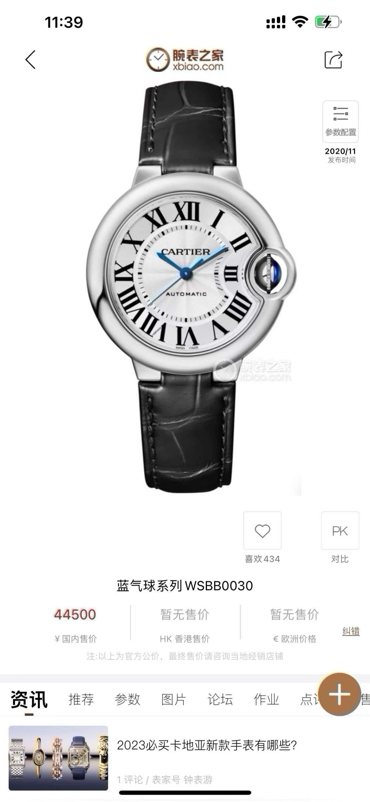 卡地亚蓝气球BALLON BLANCWSBB0030机械女性