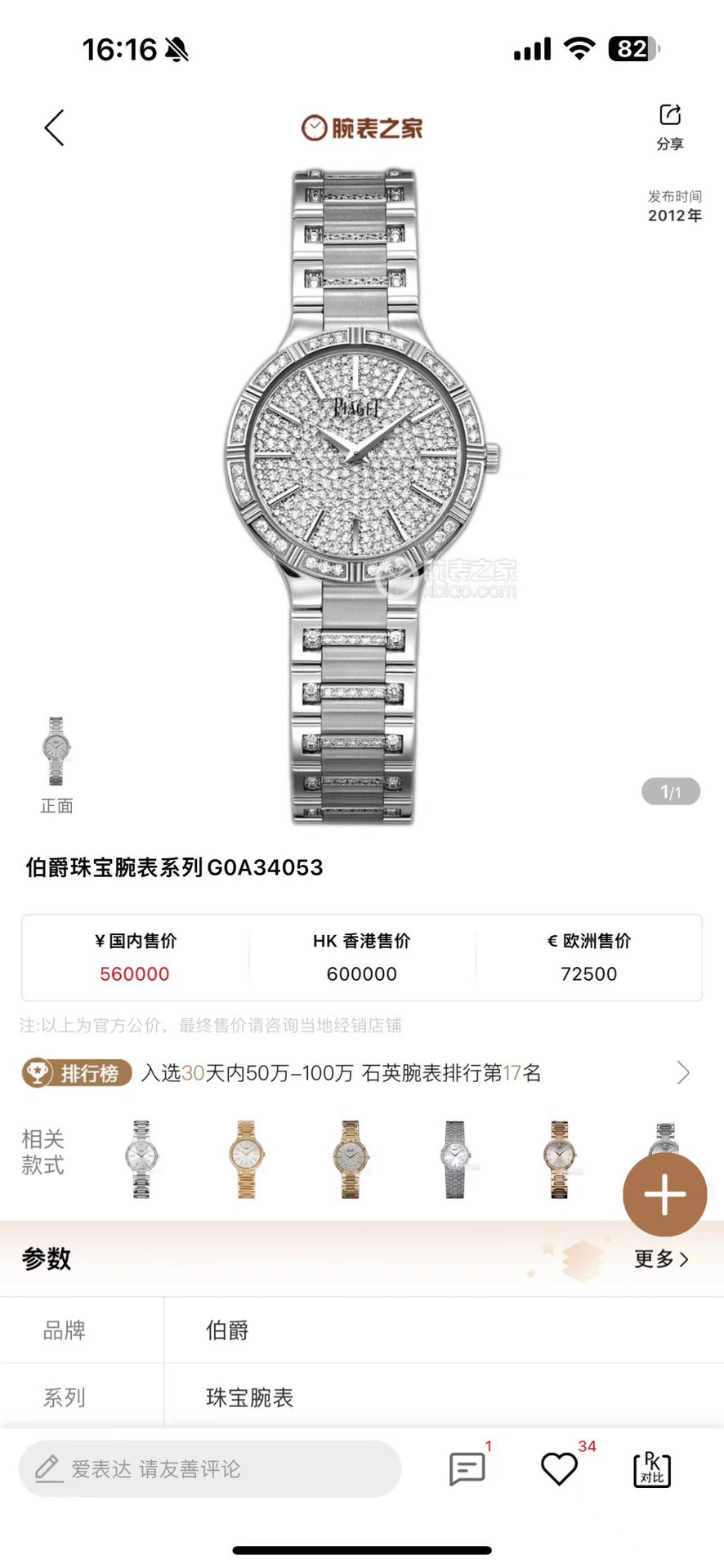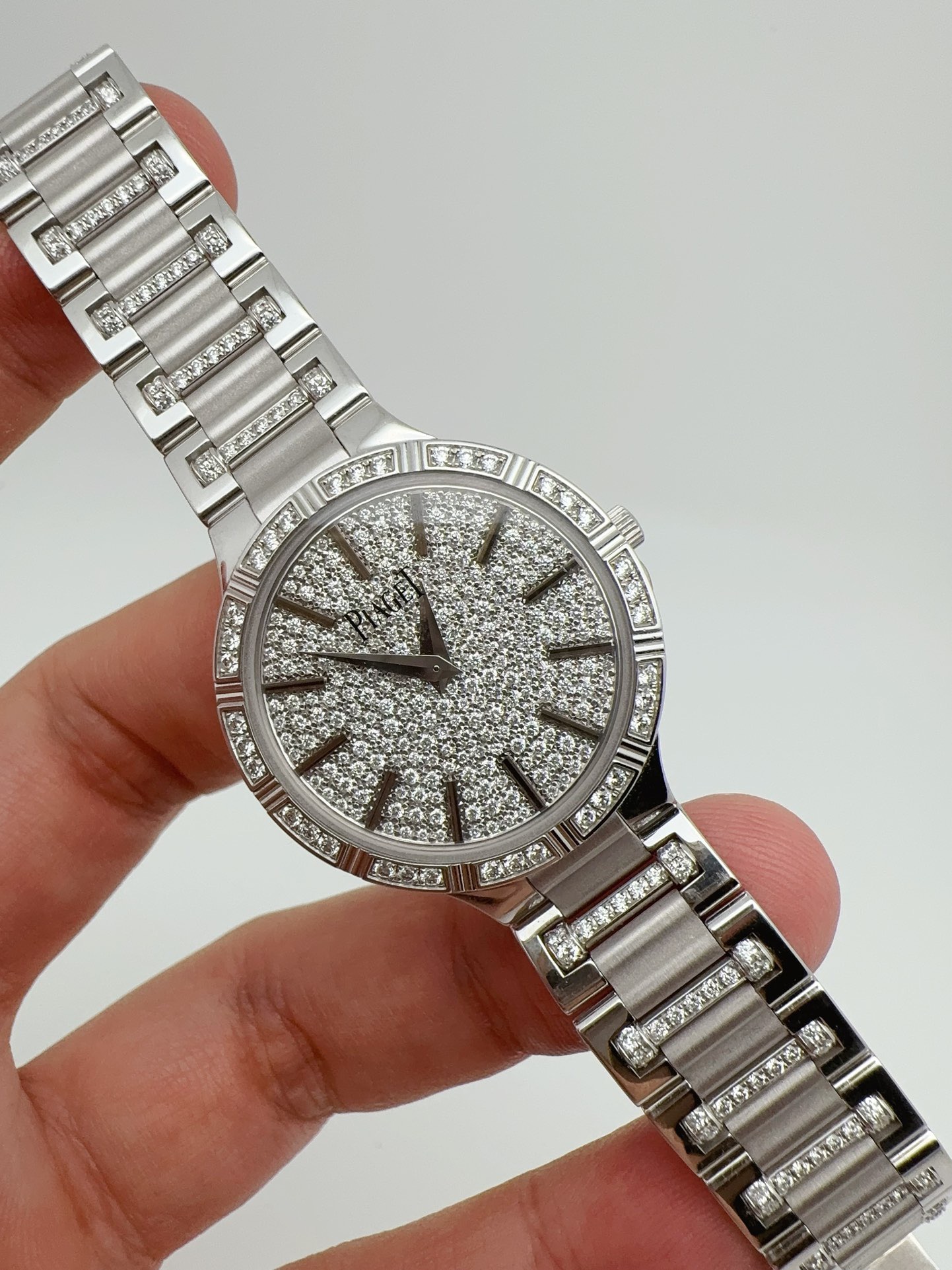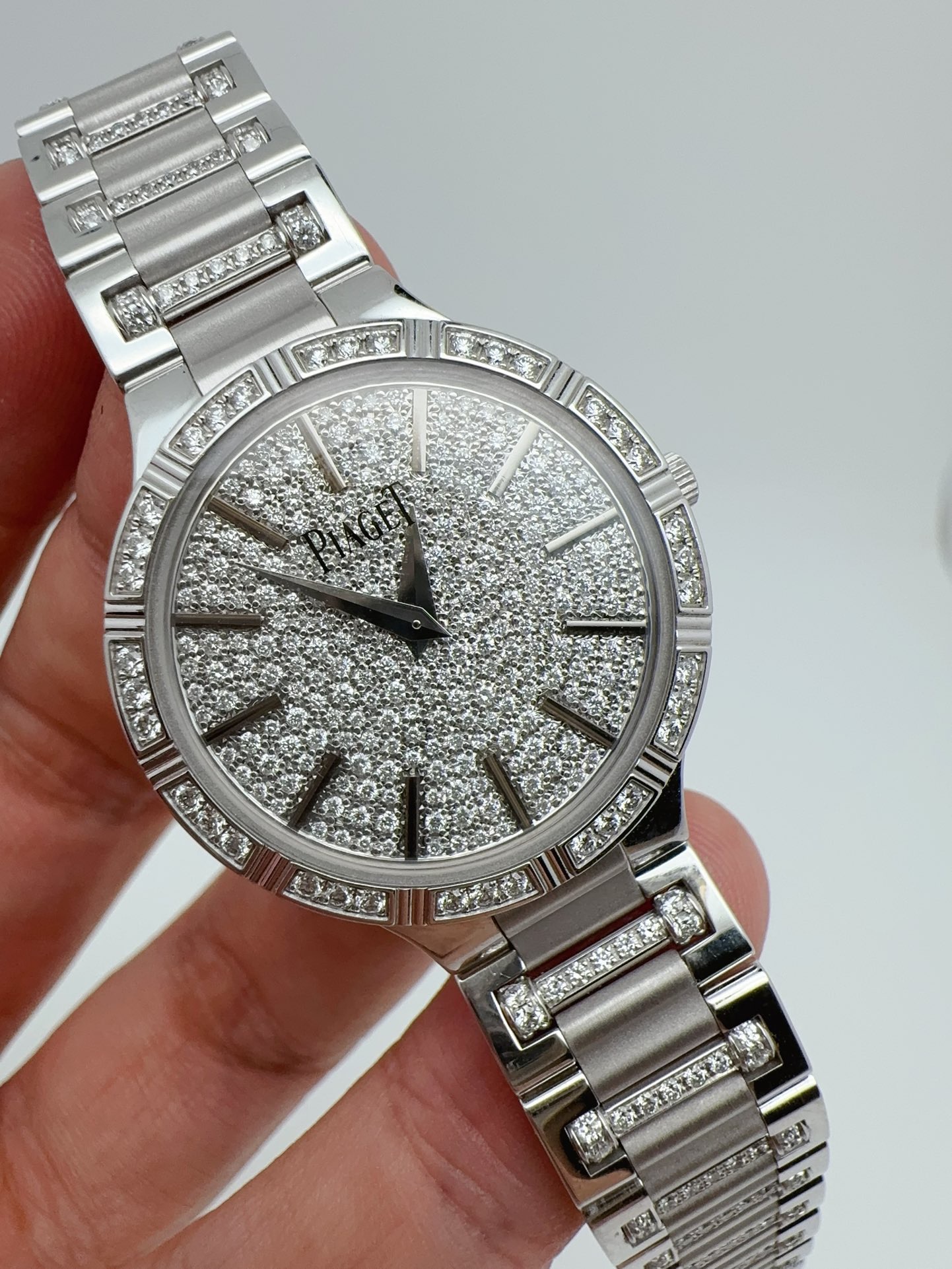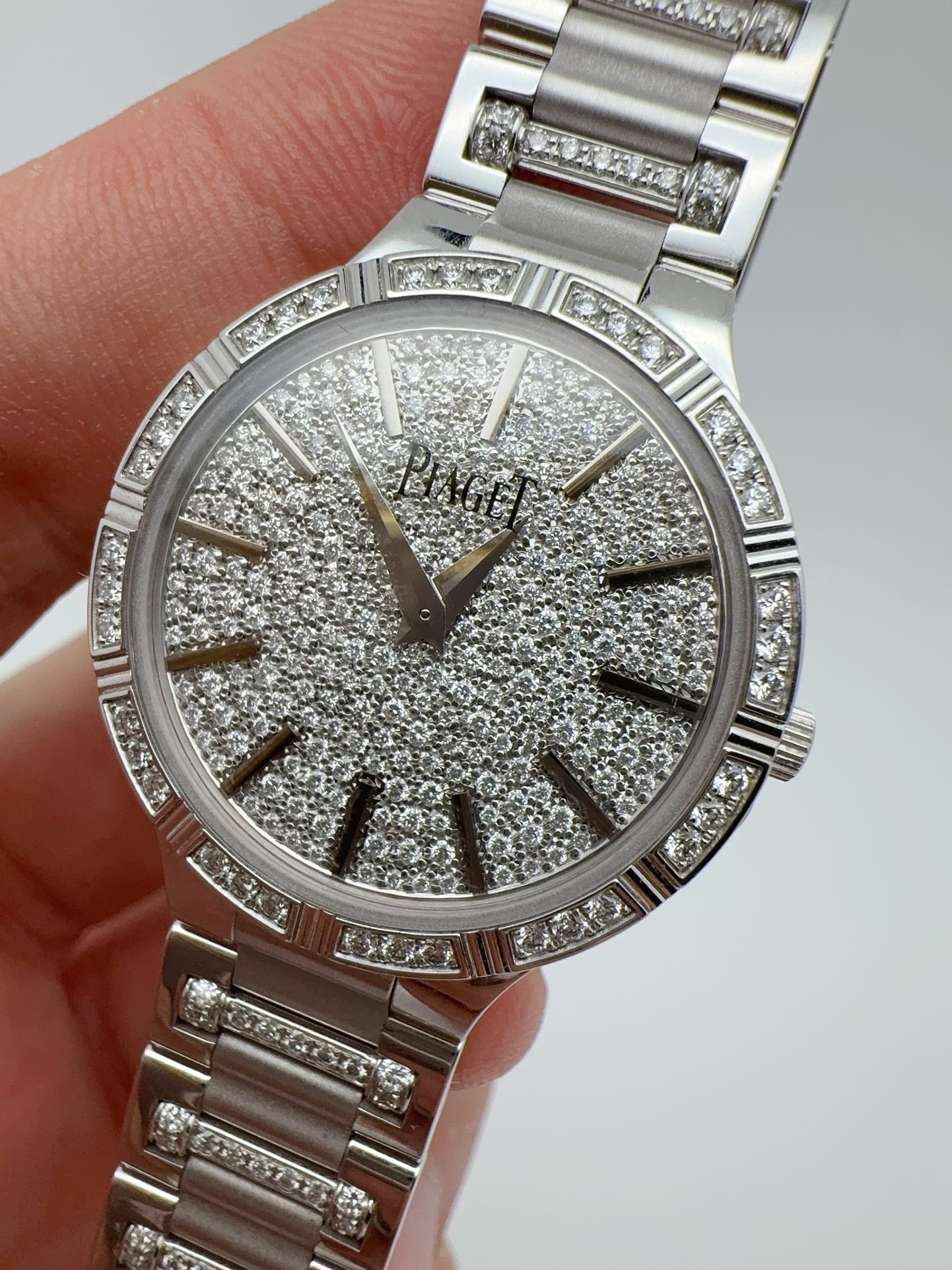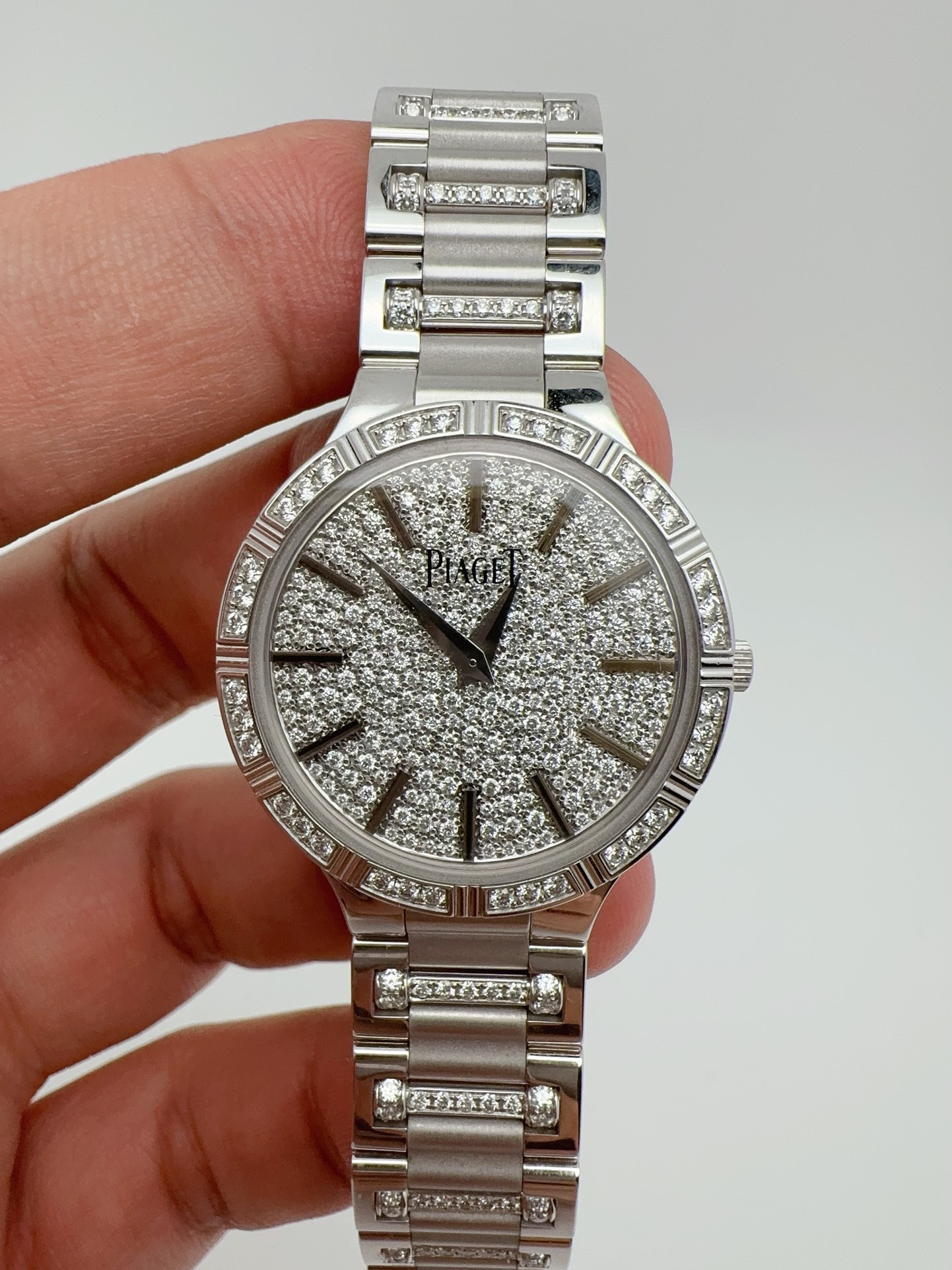 伯爵珠宝腕表系列G0A34053女士石英腕表,表径28mm,18k白金原镶钻款,公价560000,现好价