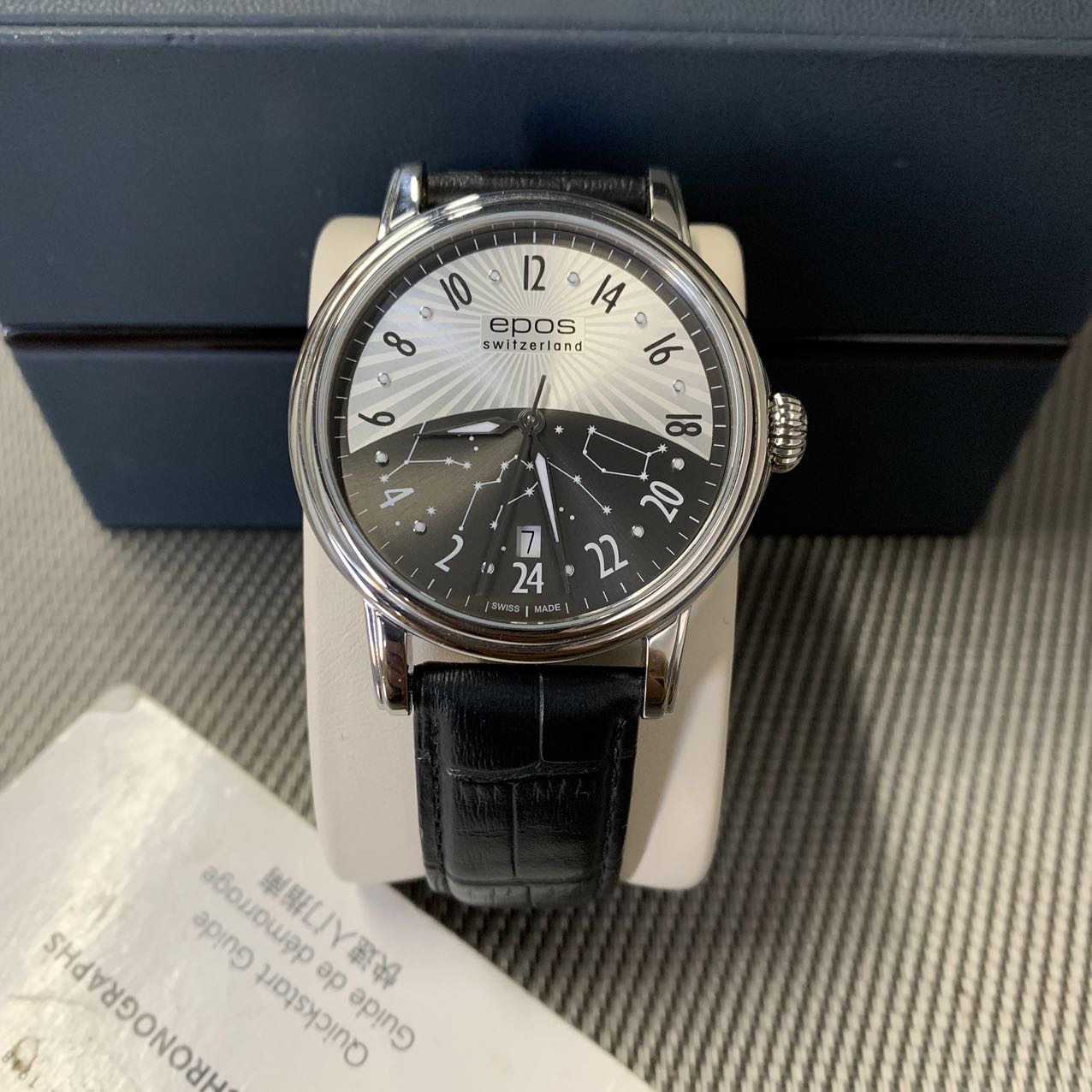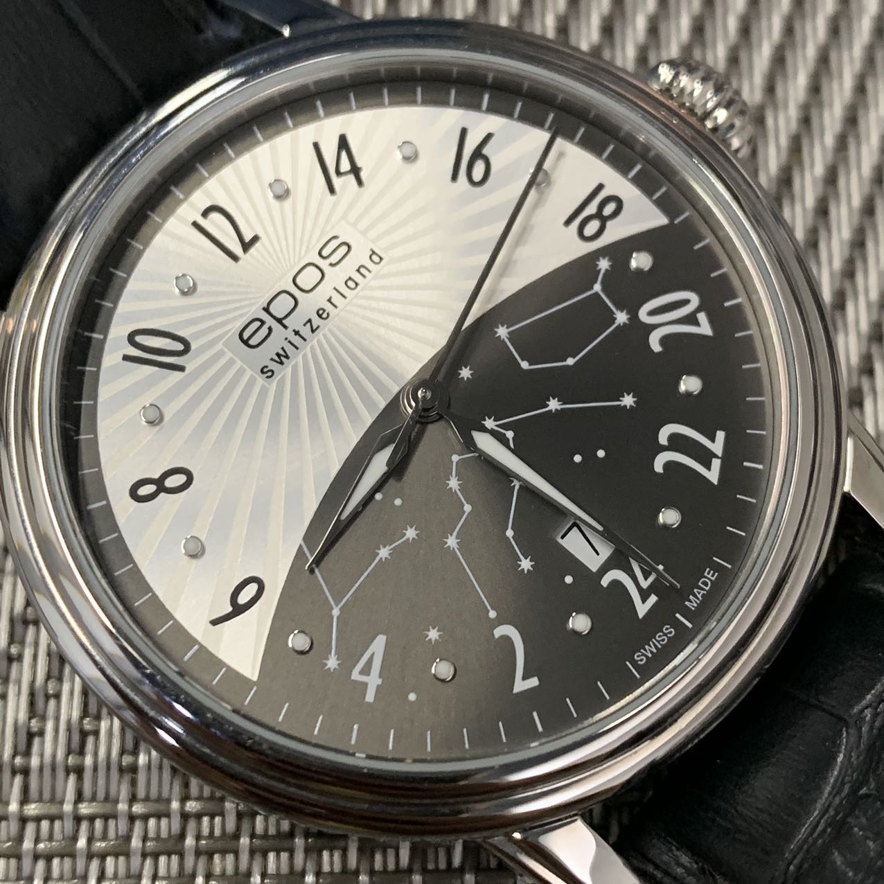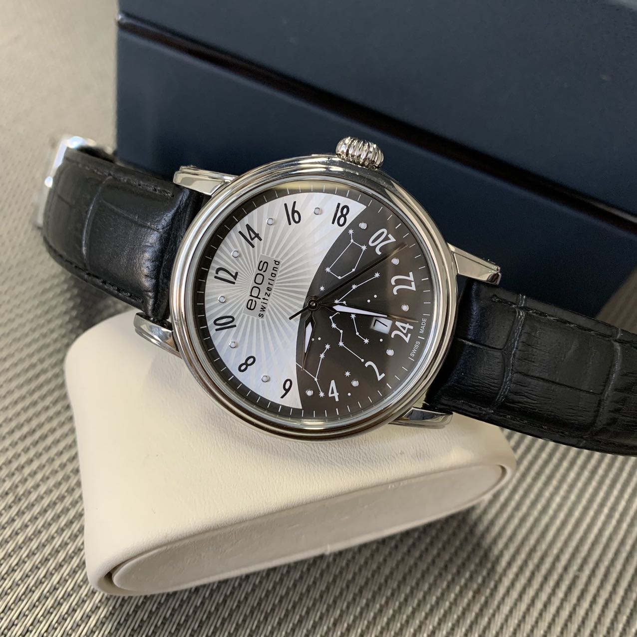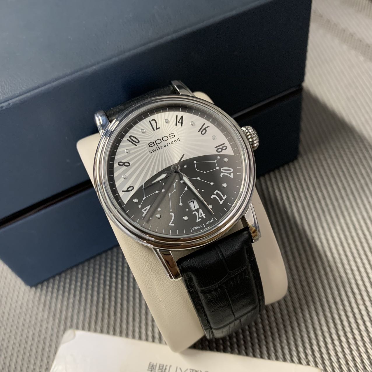 爱宝时 日月无间系列机械男表,公价1.1万元,表径41mm,全套附件齐全,极品成色新,白昼表盘 采用渐变太阳纹设计,在光线反射下如烈阳般凌厉出众,黑色盘点缀满天星荧光点,在黑暗中夜空般浪漫璀璨,高配2892机芯,性价比十足款。