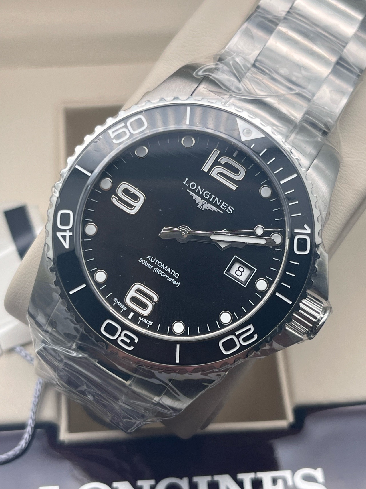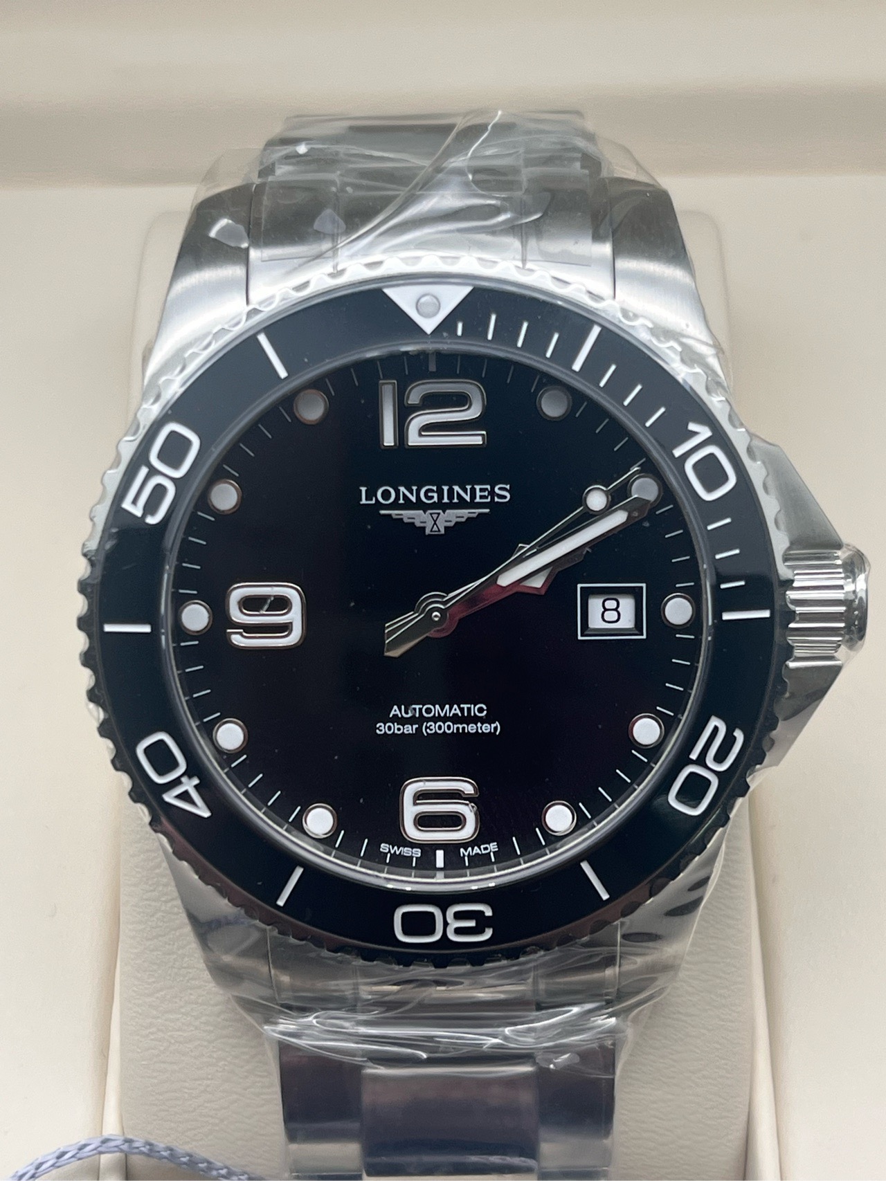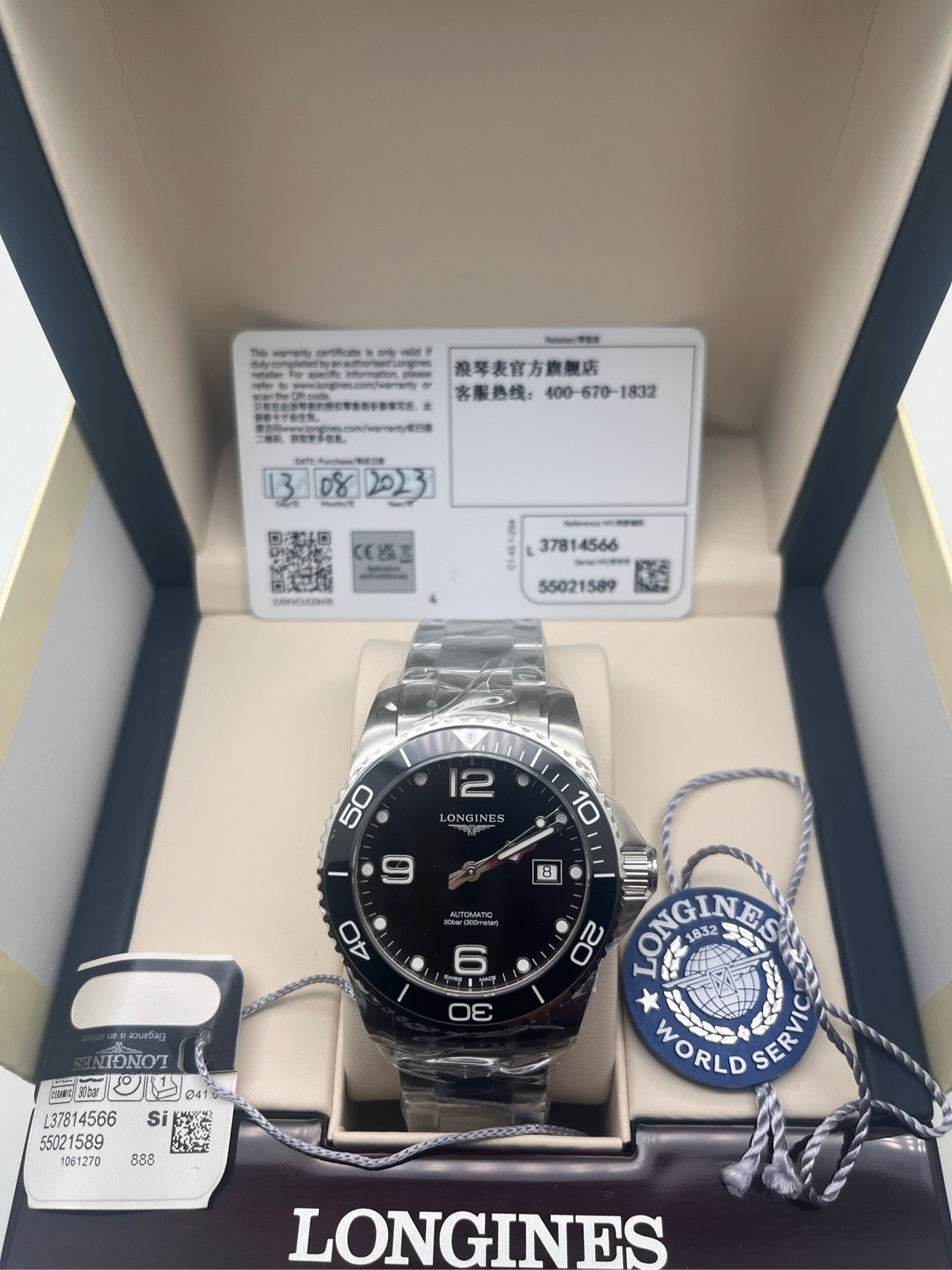 浪琴/Longines 康卡斯潜水系列 L3.781.4.56.6 自动上链机械机芯 精钢及陶瓷 41.00mm 专柜价 14600。2023年全套,全新未使用。~