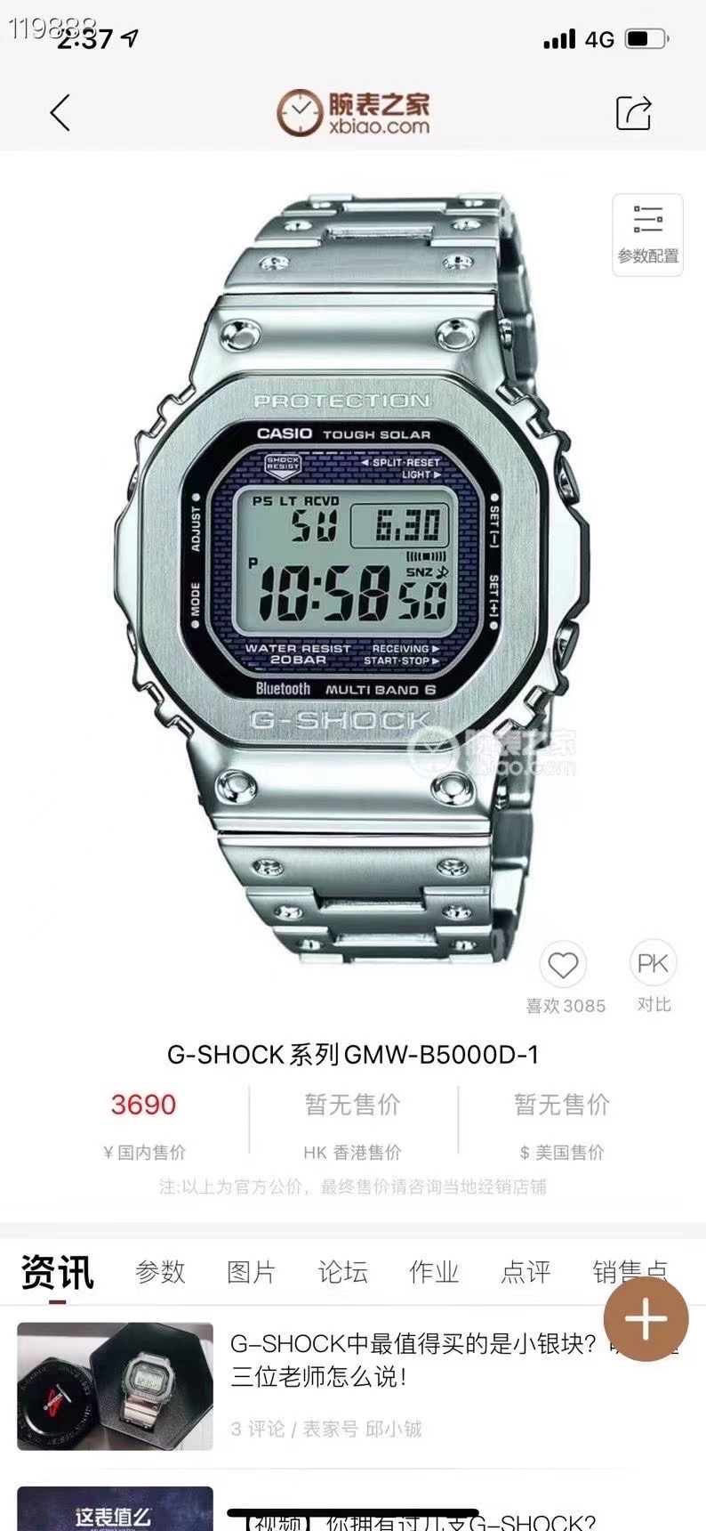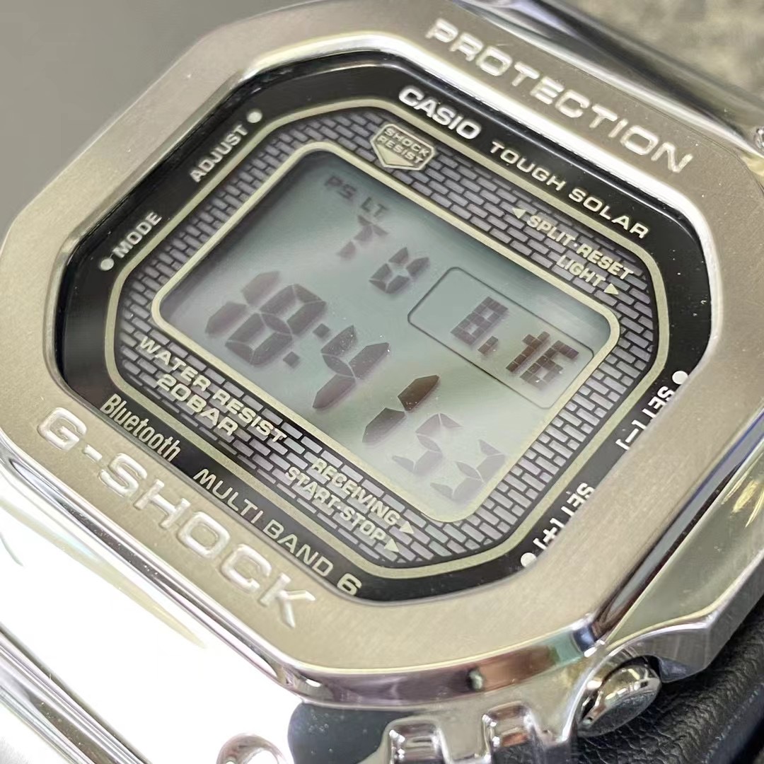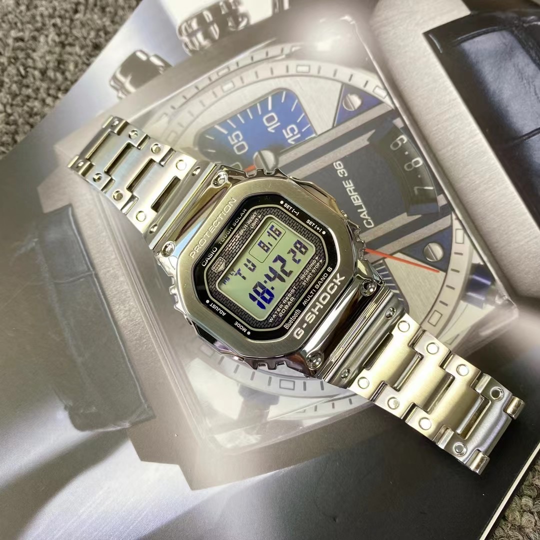 卡西欧小银块GMWB-5000D 35周年限量款,公价3650元,极品成色,精钢英朗方形表壳,精湛拉丝工艺,太阳能动力 蓝牙电波 抬手显示等功能,热门溢价款。