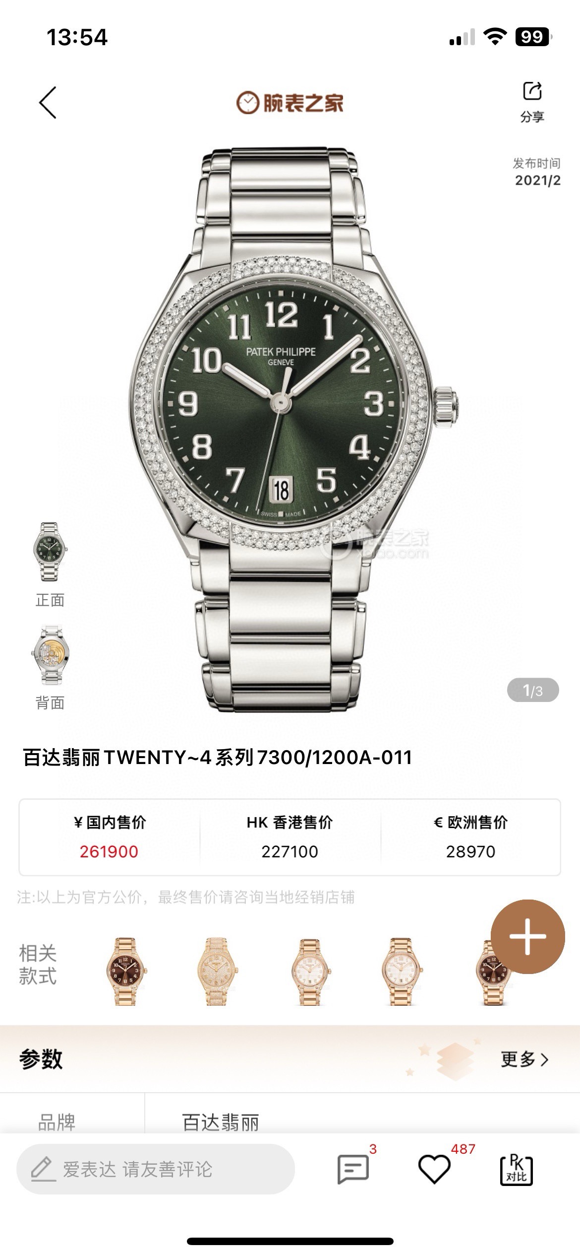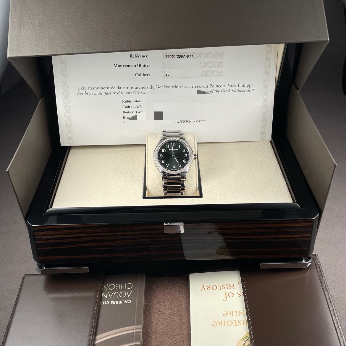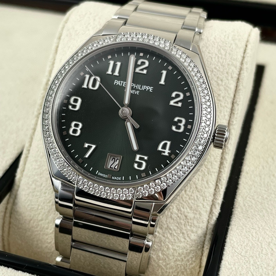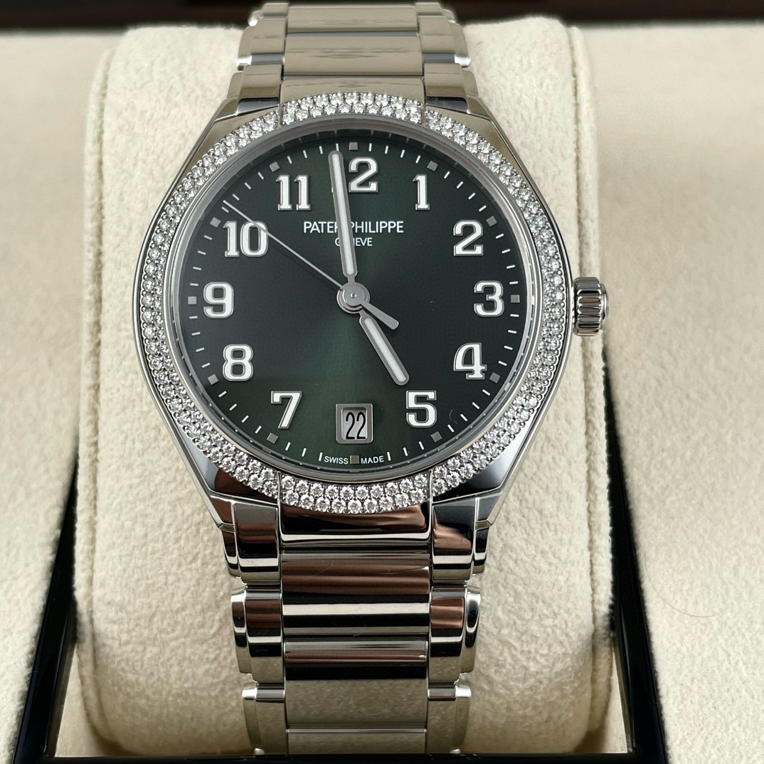 百达翡丽 TWENTY~4系列 7300/1200A-011,绿盘,女士自动机械腕表,表径36mm,外圈原镶钻,2024年全套未使用,公价261900,现货好价~