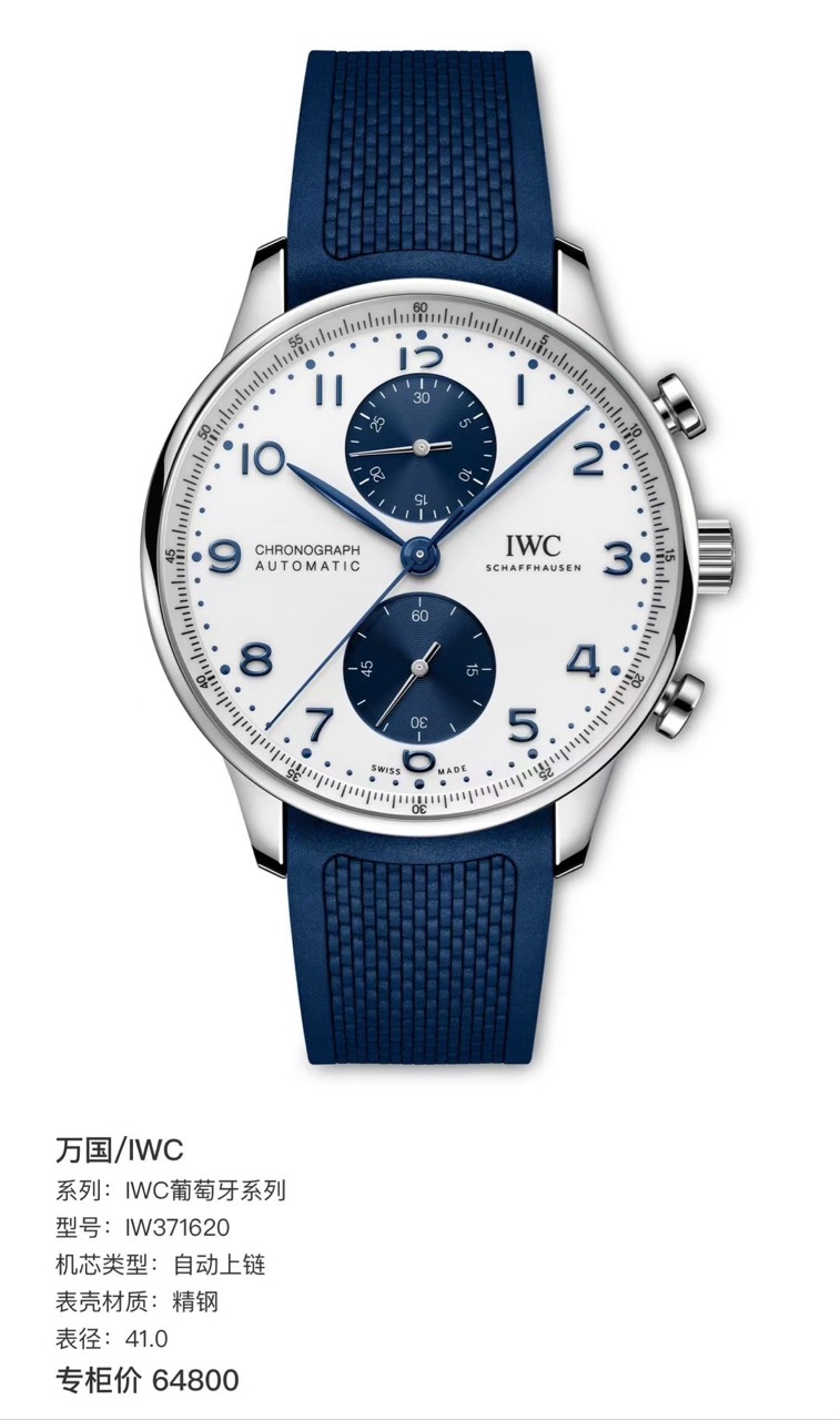 万国葡萄牙系列IW371620 41mm表径 附带云鱼报告 蓝色熊猫盘 背透机芯 阿拉伯数字刻度 经典不过时公价64800