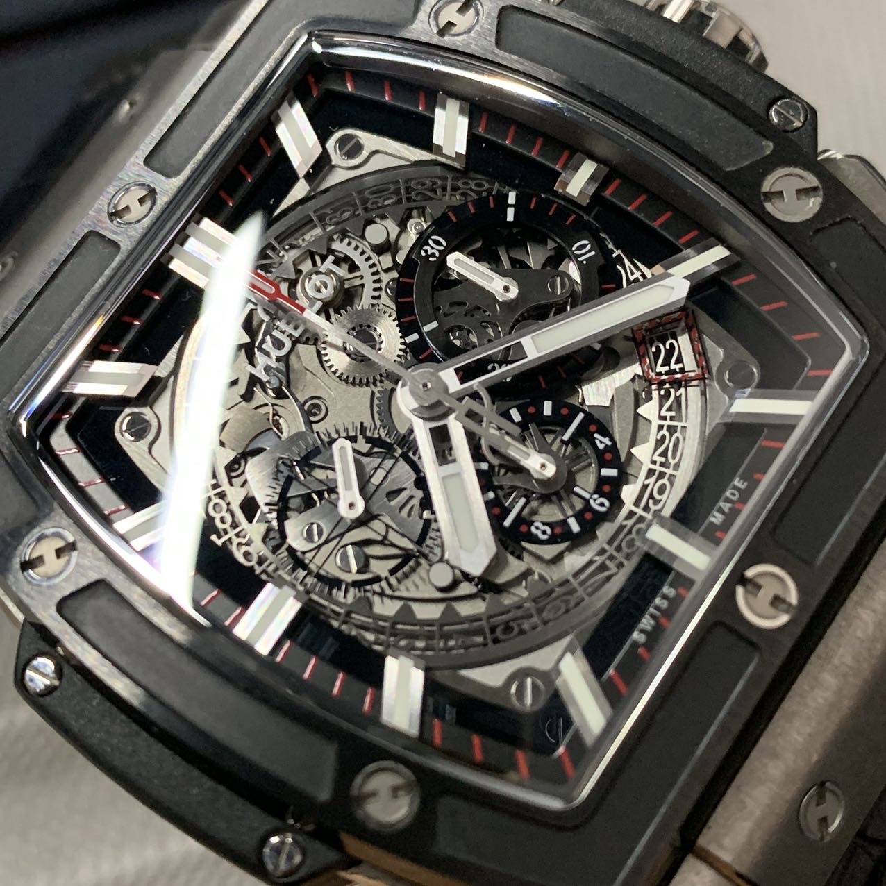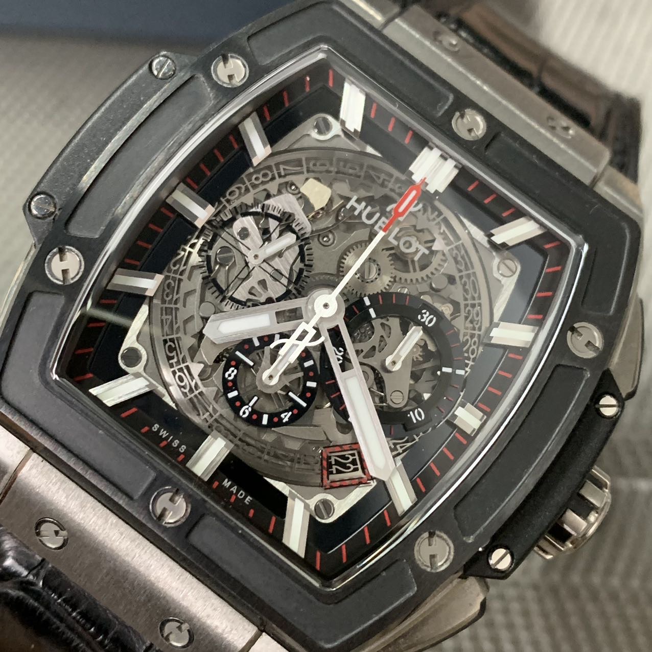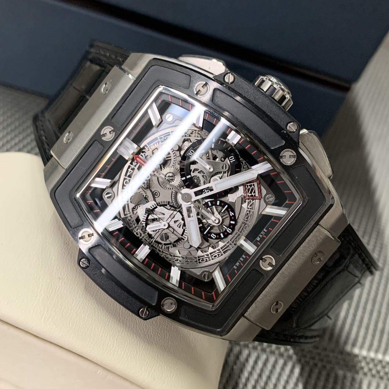 宇舶灵魂系列,大爆炸,公价18.2万,表径45mm,全套附件齐全(2019年购买)97新,钛合金材质表壳,陶瓷相间,正反镂空设计,经典热门款。