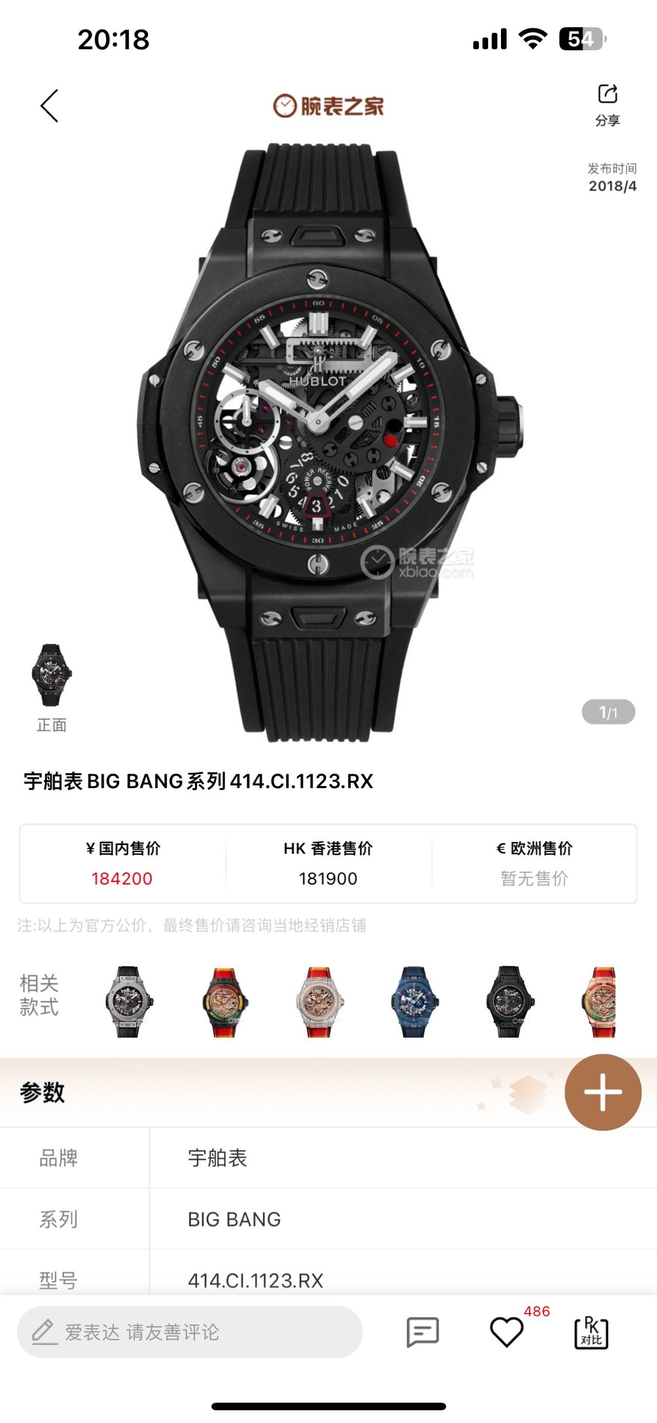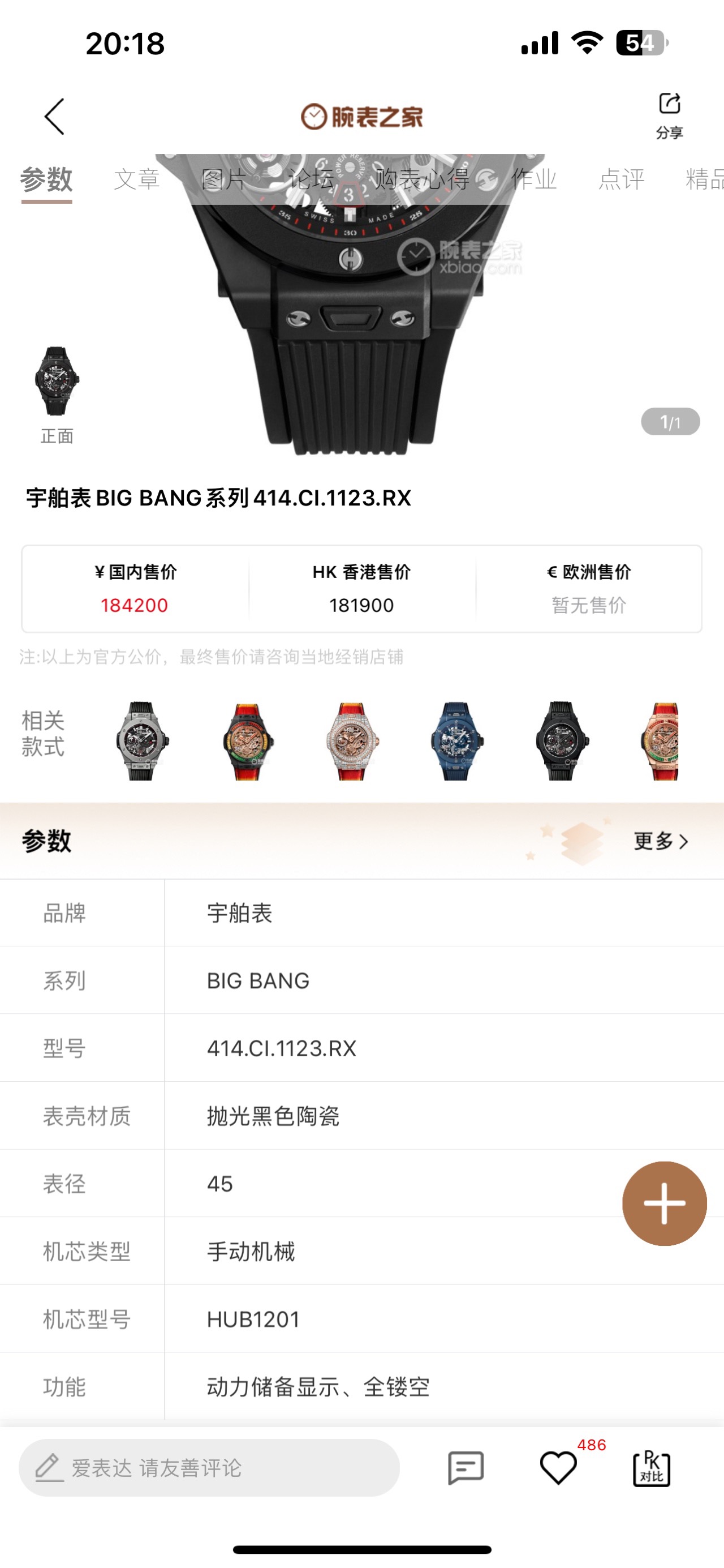 宇舶 big bang系列 414.CI.1123.RX 22年全套 极品原始成色 手动机械 45表径~专柜价184300 现货好价!