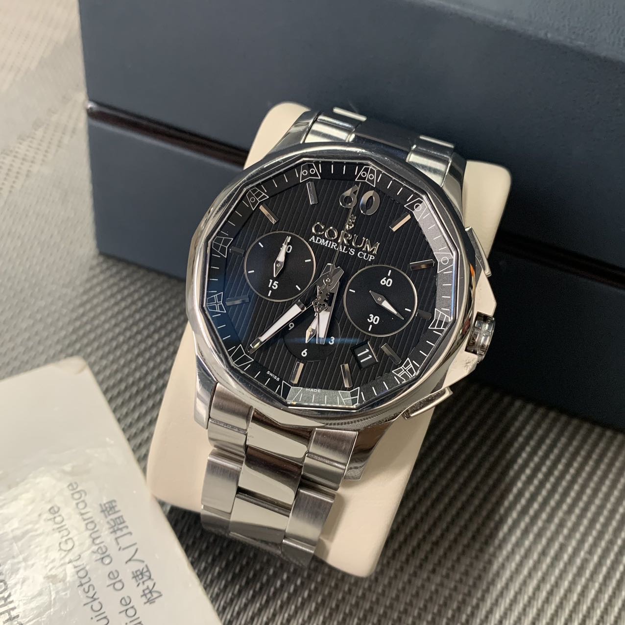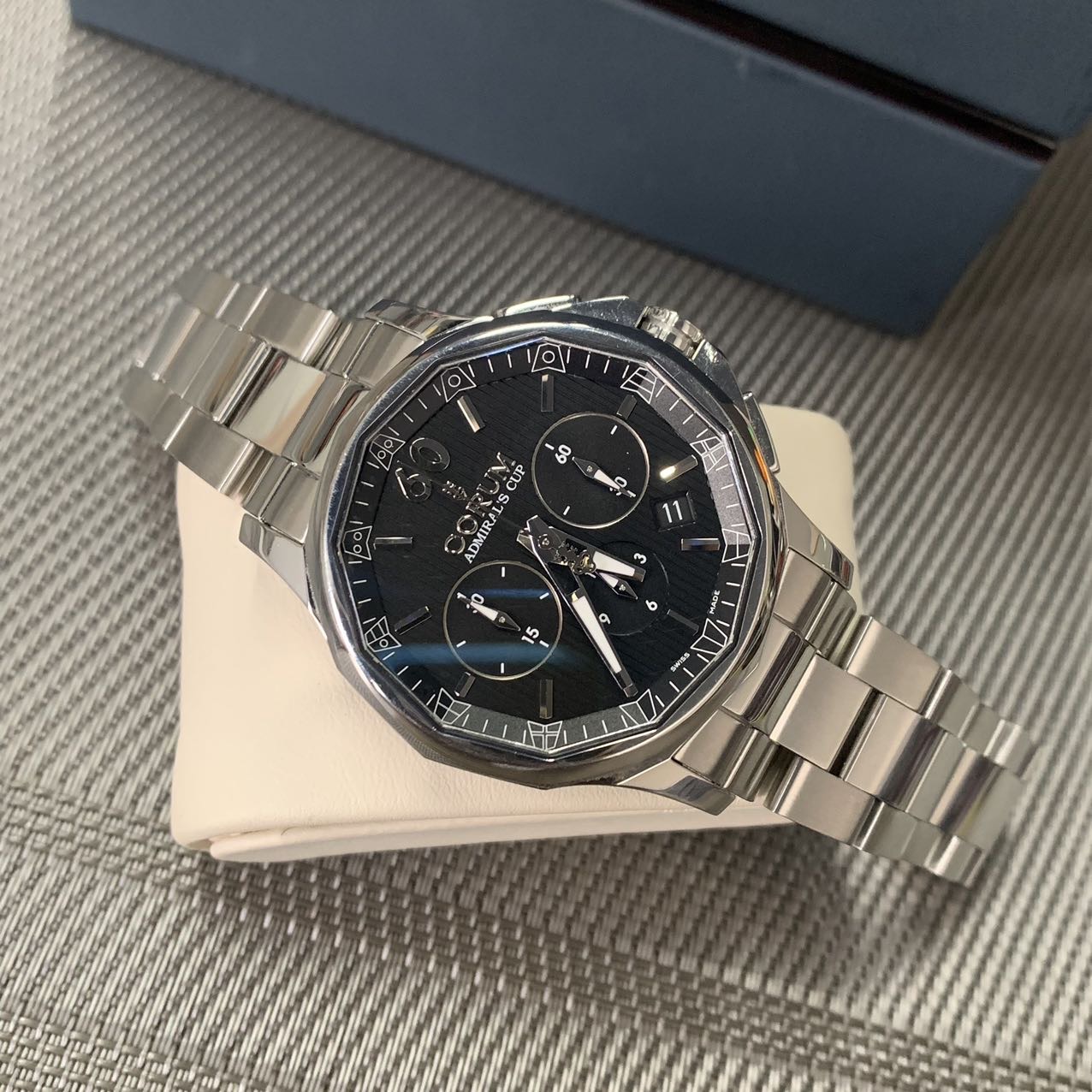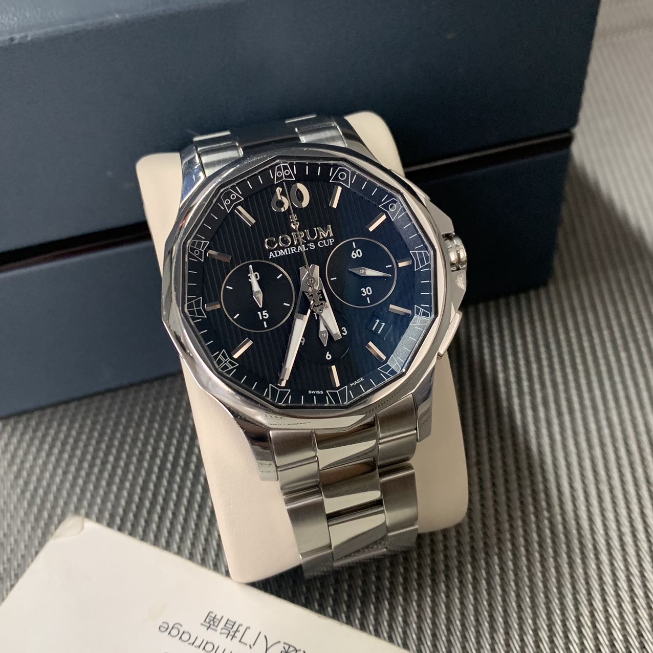 昆仑海军上将系列,参考公价5万,表径42mm,全套附件齐全,纵向日内瓦纹表盘,经典三眼计时盘面布局,天文台认证机芯。