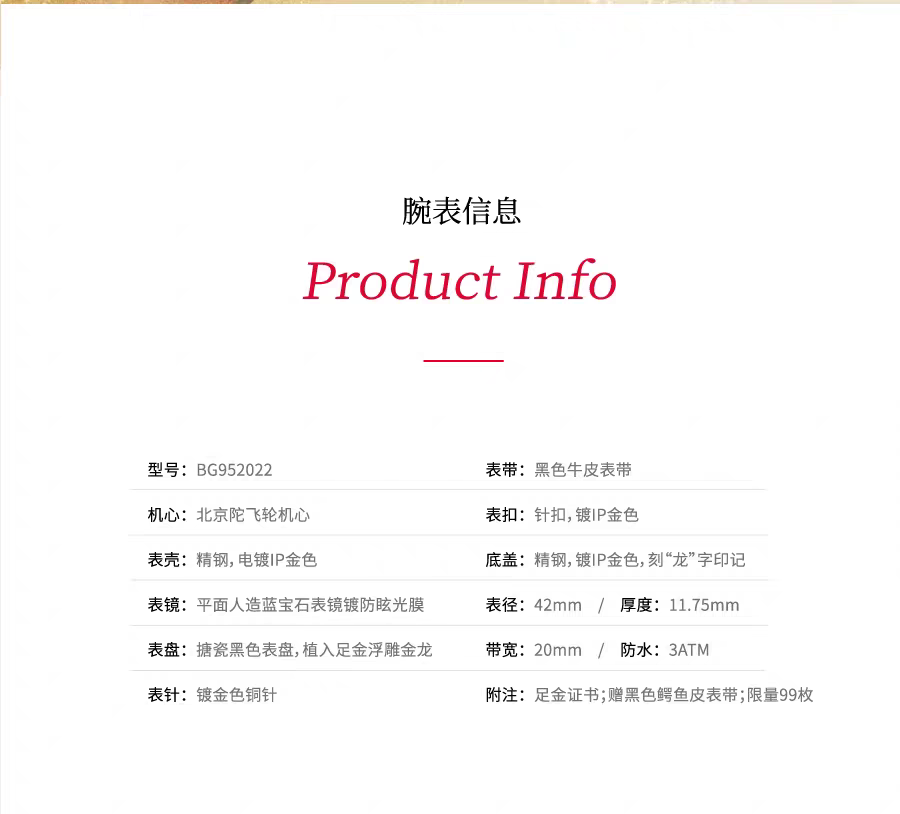 北京手表官方正品龙年陀飞轮手动机械手表男限量高端礼物男士腕表