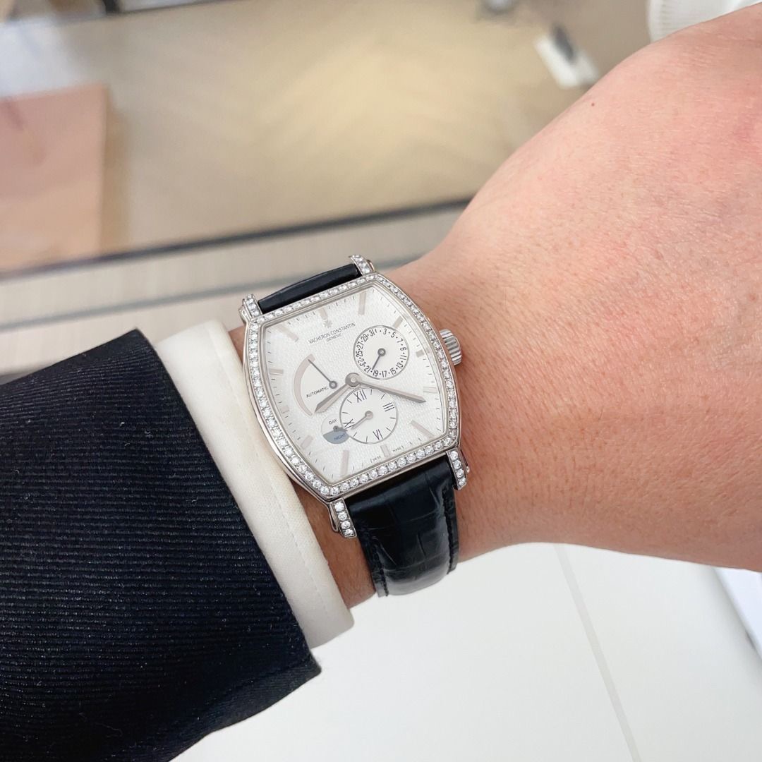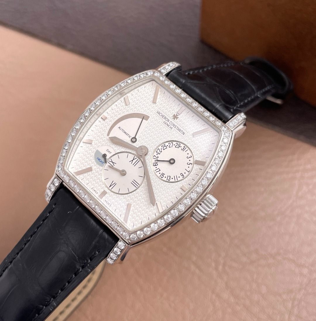 江诗丹顿马耳他系列18K白金后镶钻自动机械男表】