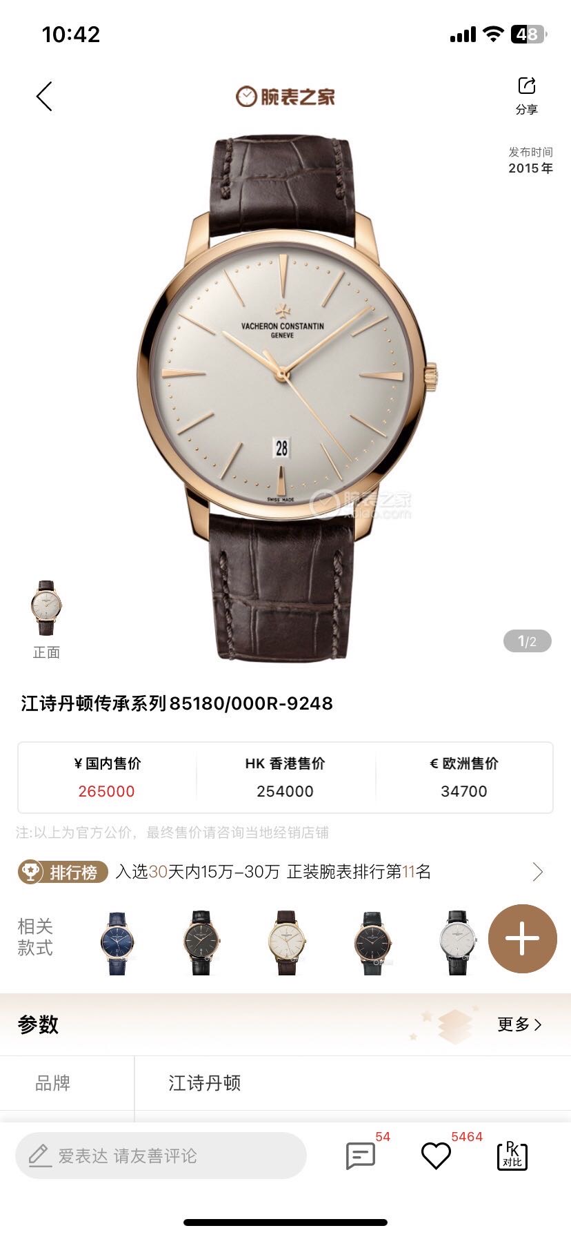 江诗丹顿传承系列85180/000R-9248,自动机械男士腕表,表径40mm,18K玫瑰金材质,日期显示功能,附件:无,公价265000 现货好价~