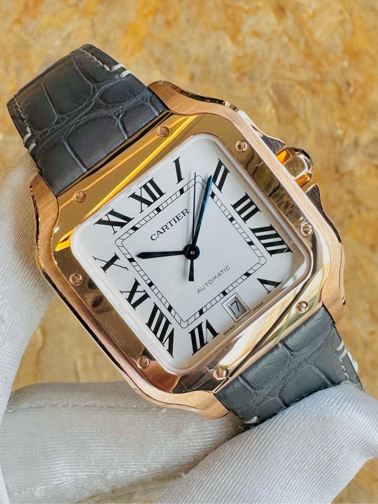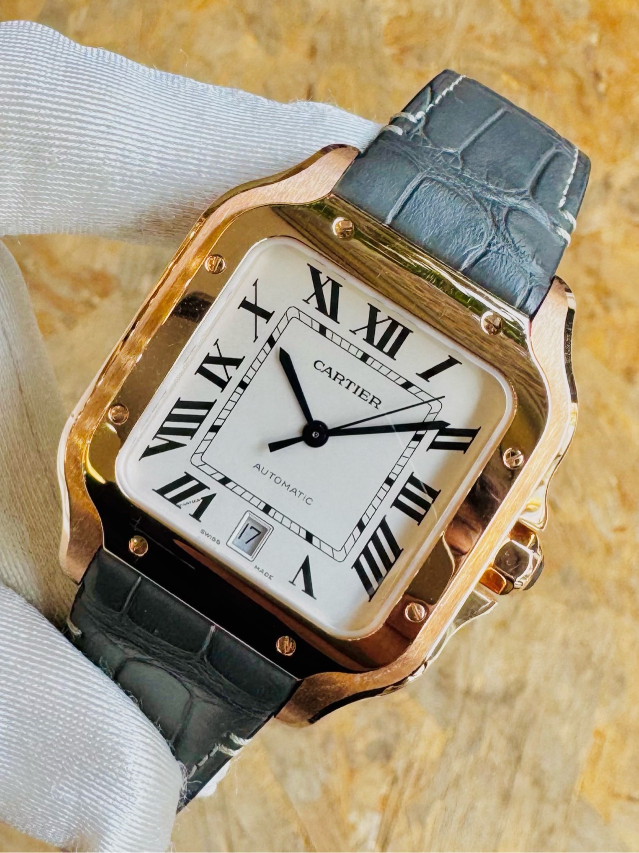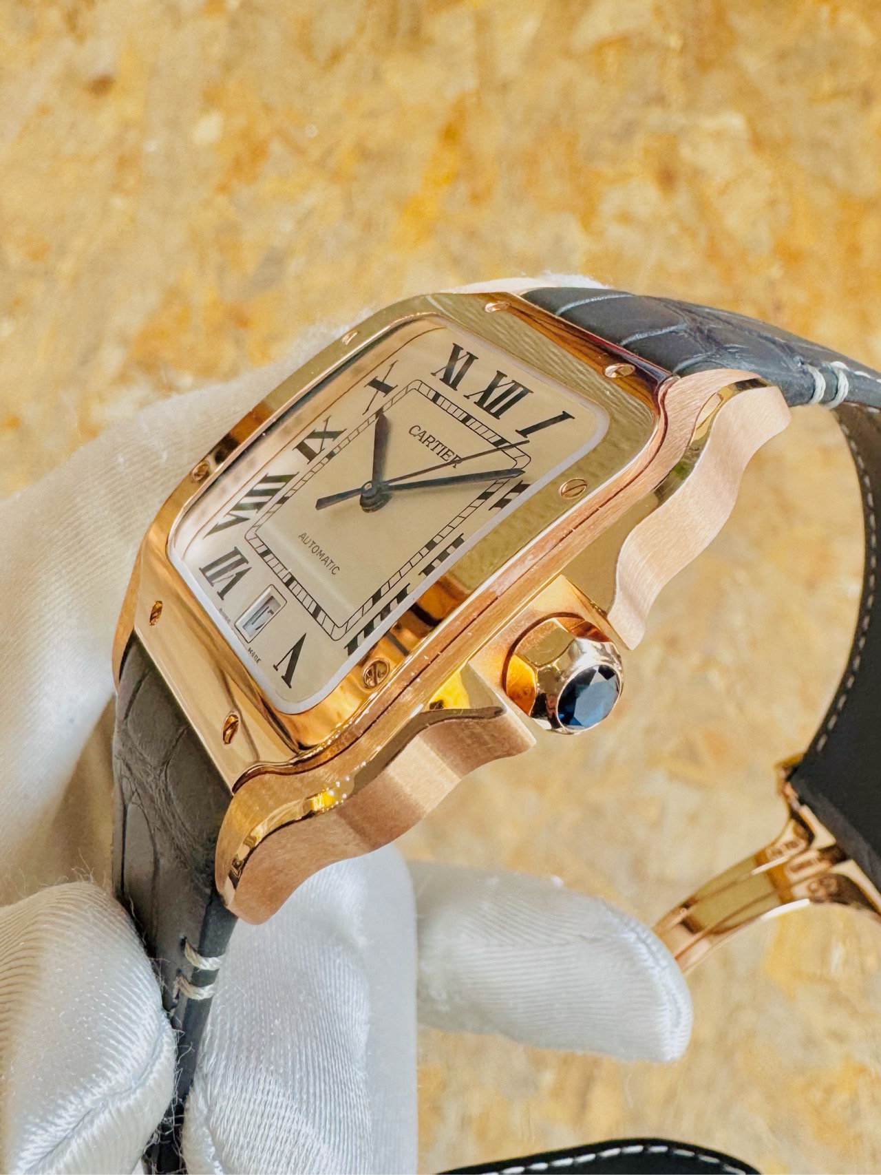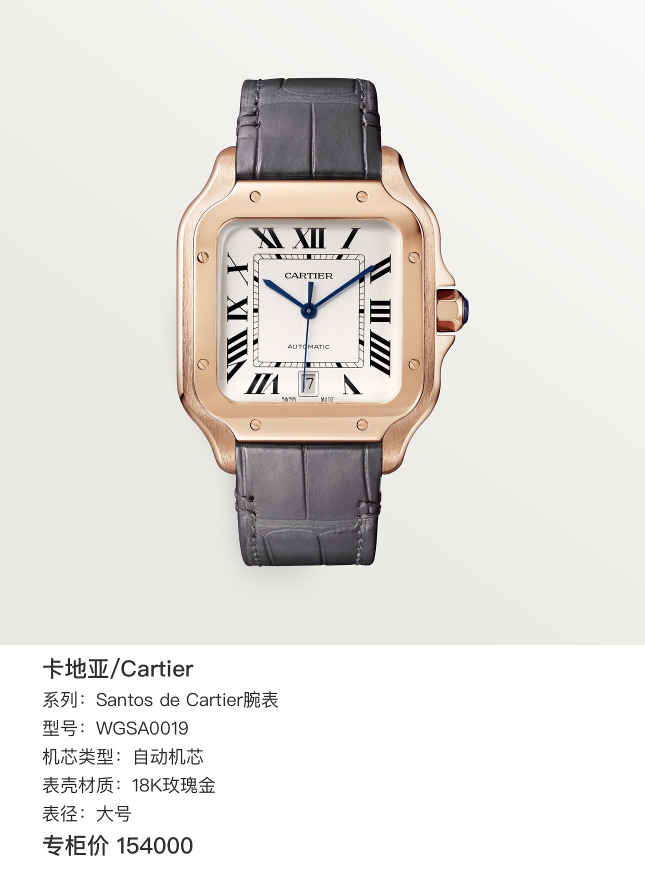 卡地亚/Cartier,Santos de Cartier腕表,型号WGSA0019,自动机芯,18K玫瑰金,大号山度士,专柜价154000