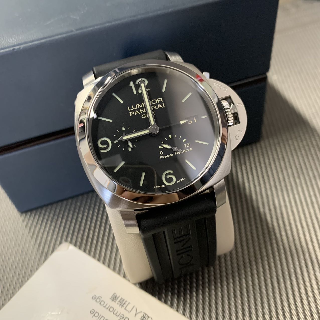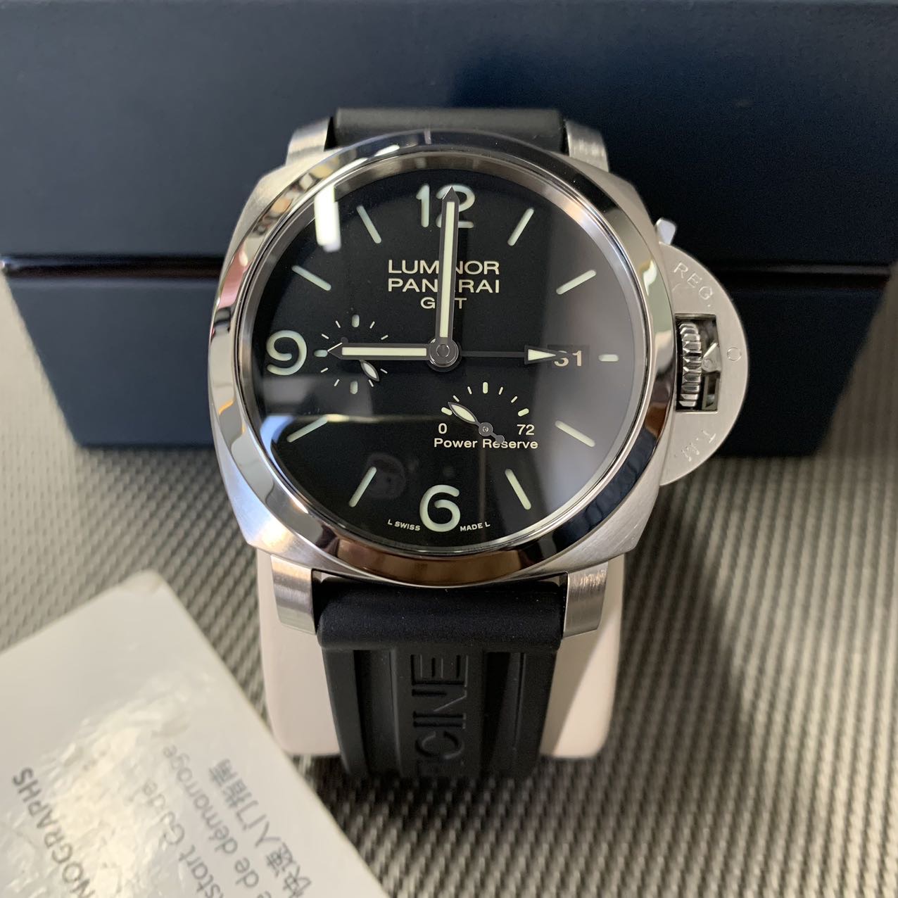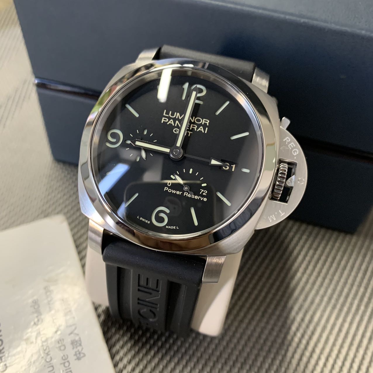 沛纳海00321,公价6.92万,表径44mm,单表 97新,GMT两地时 动储显示功能,限量2500枚第2260枚。