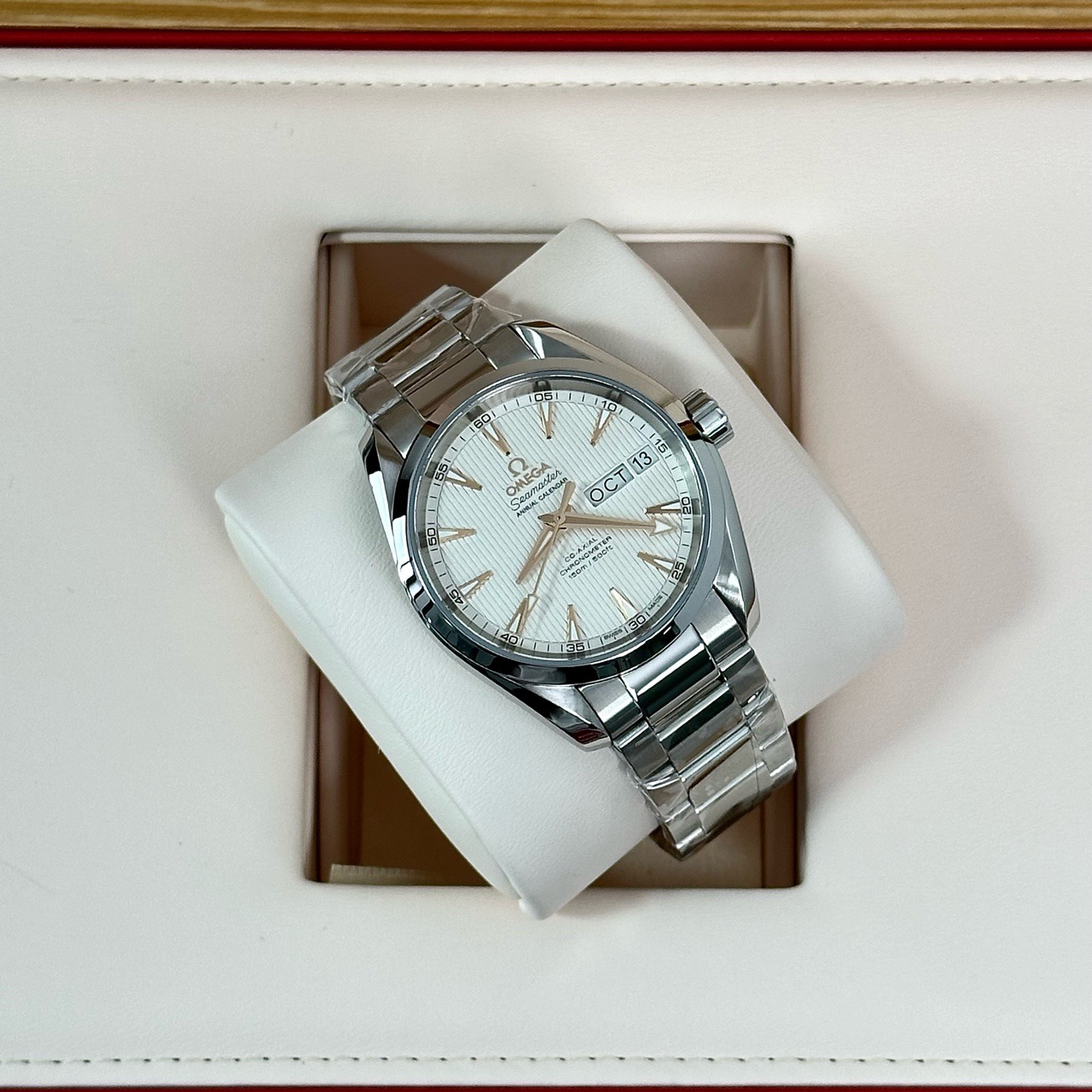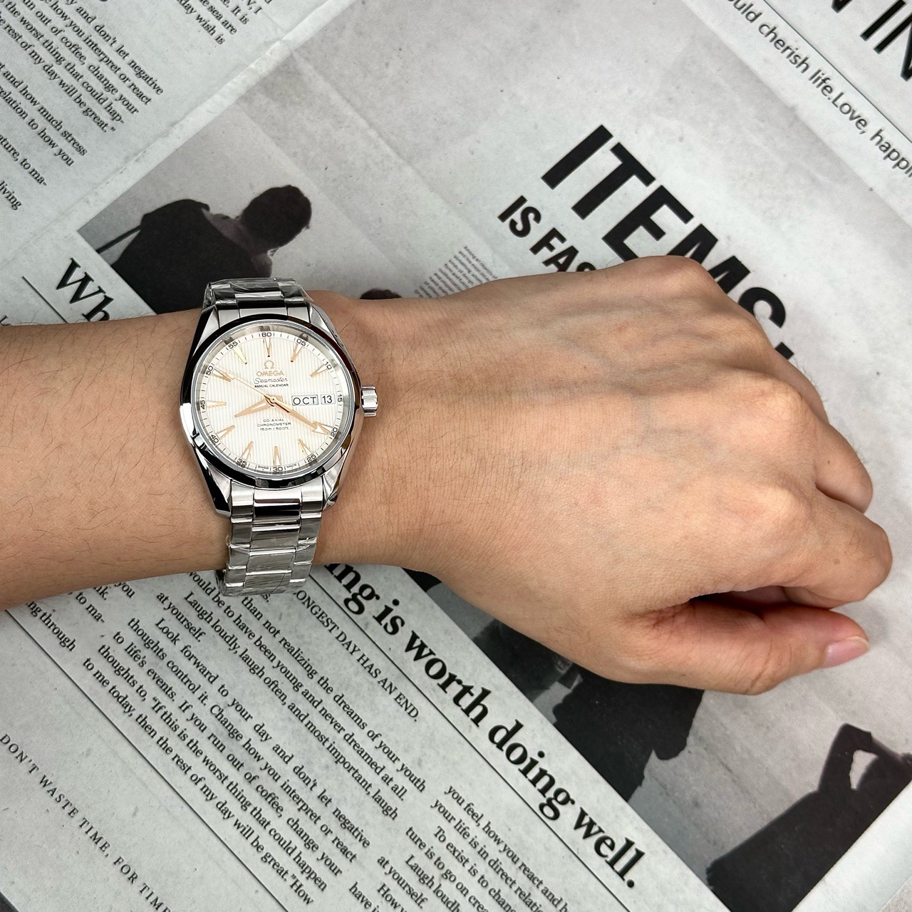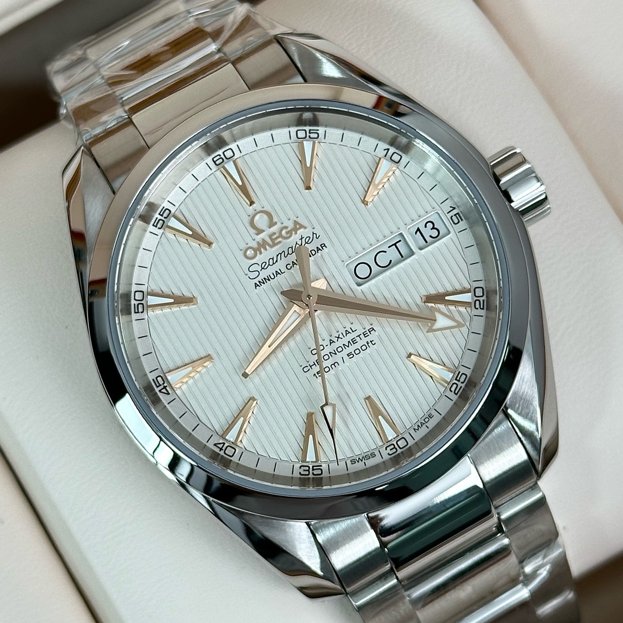此款腕表标志性“柚木概念”银色表盘上的垂直纹理令人联想到奢华游艇上的柚木甲板,经典隽永的设计颂扬着欧米茄辉煌的海洋传奇。