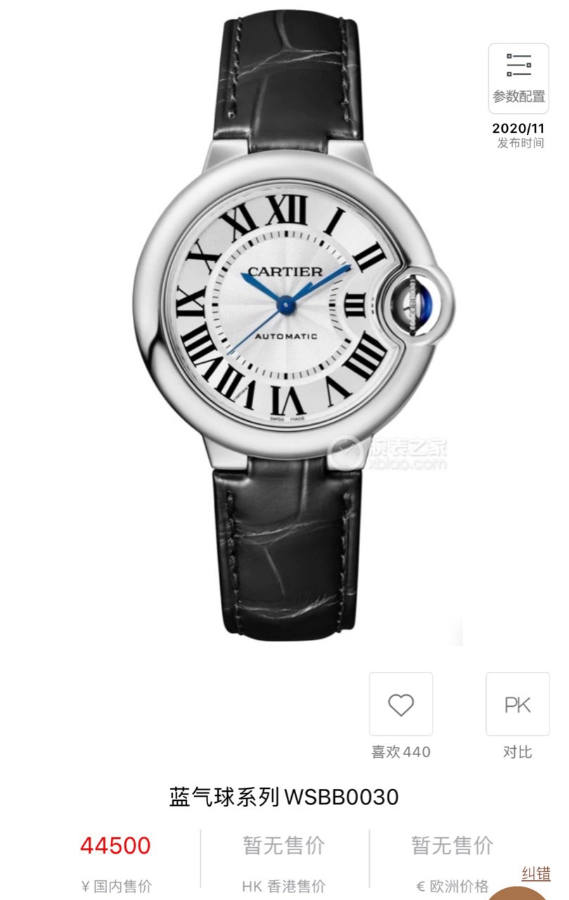 卡地亚蓝气球BALLON BLANCWSBB0030机械女性