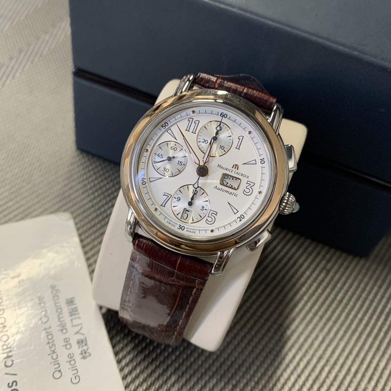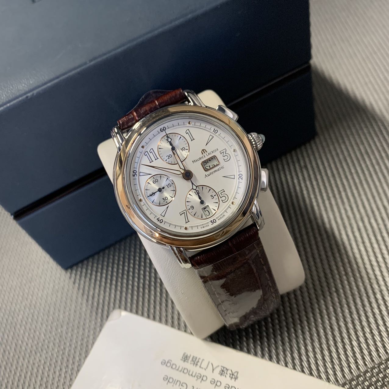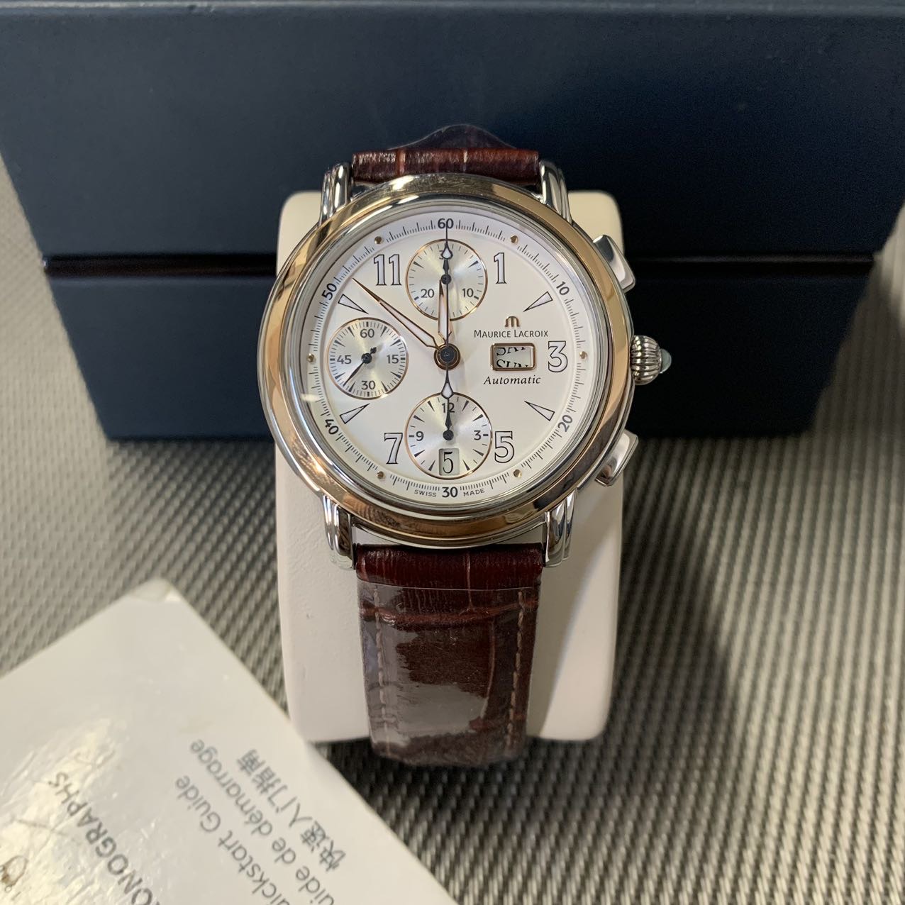 艾美匠心系列机械男表,公价3.4万,表径40mm,单表 97新,18K玫瑰金材质表圈,白盘 三眼计时盘面布局,高性价比正装款。