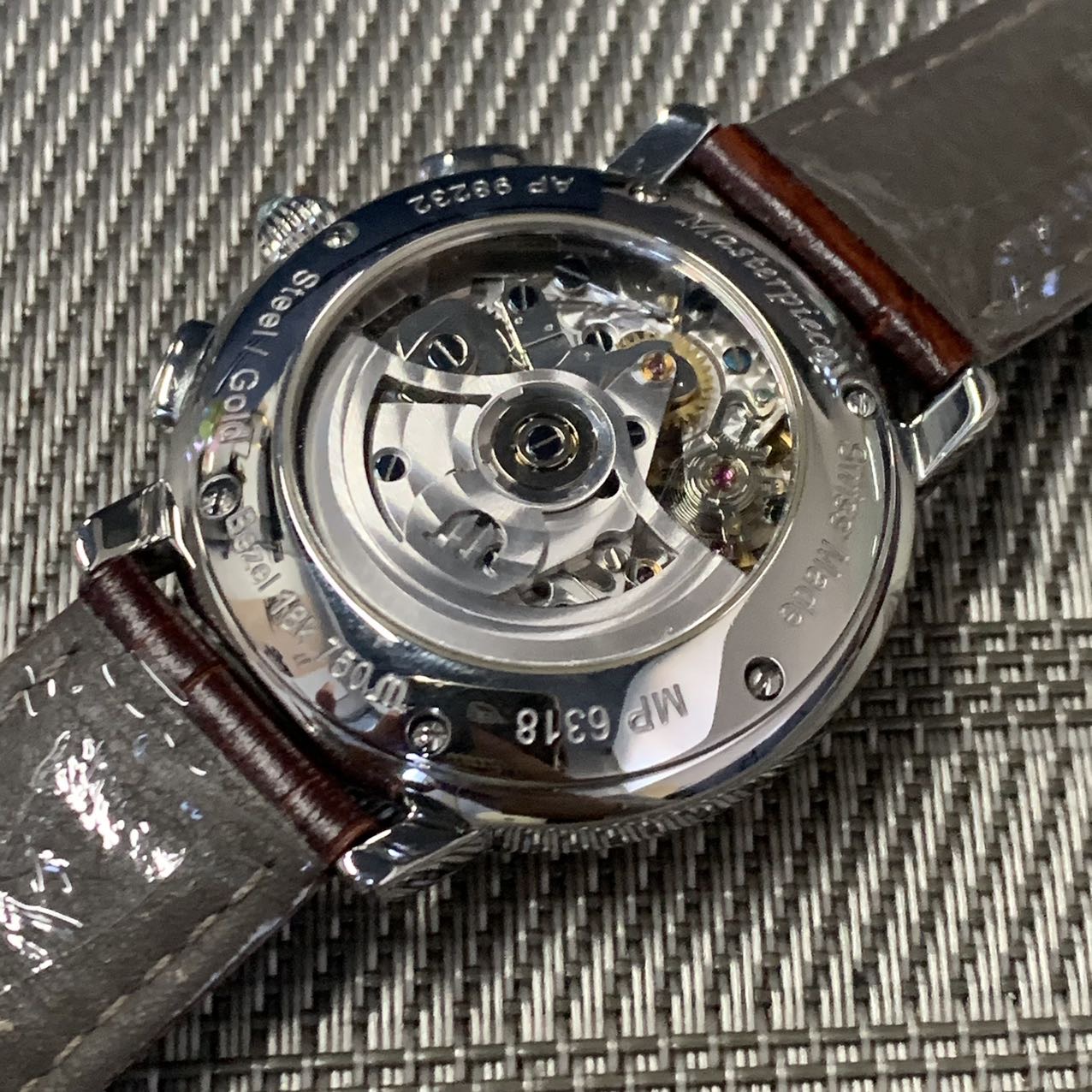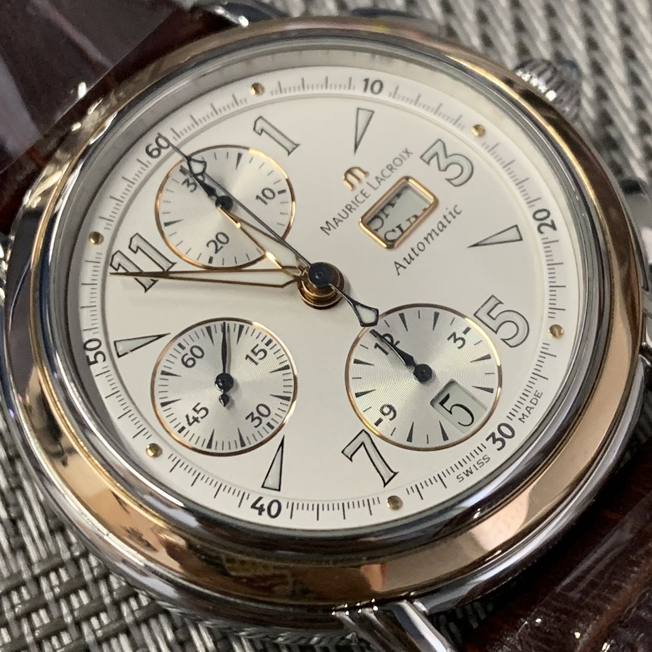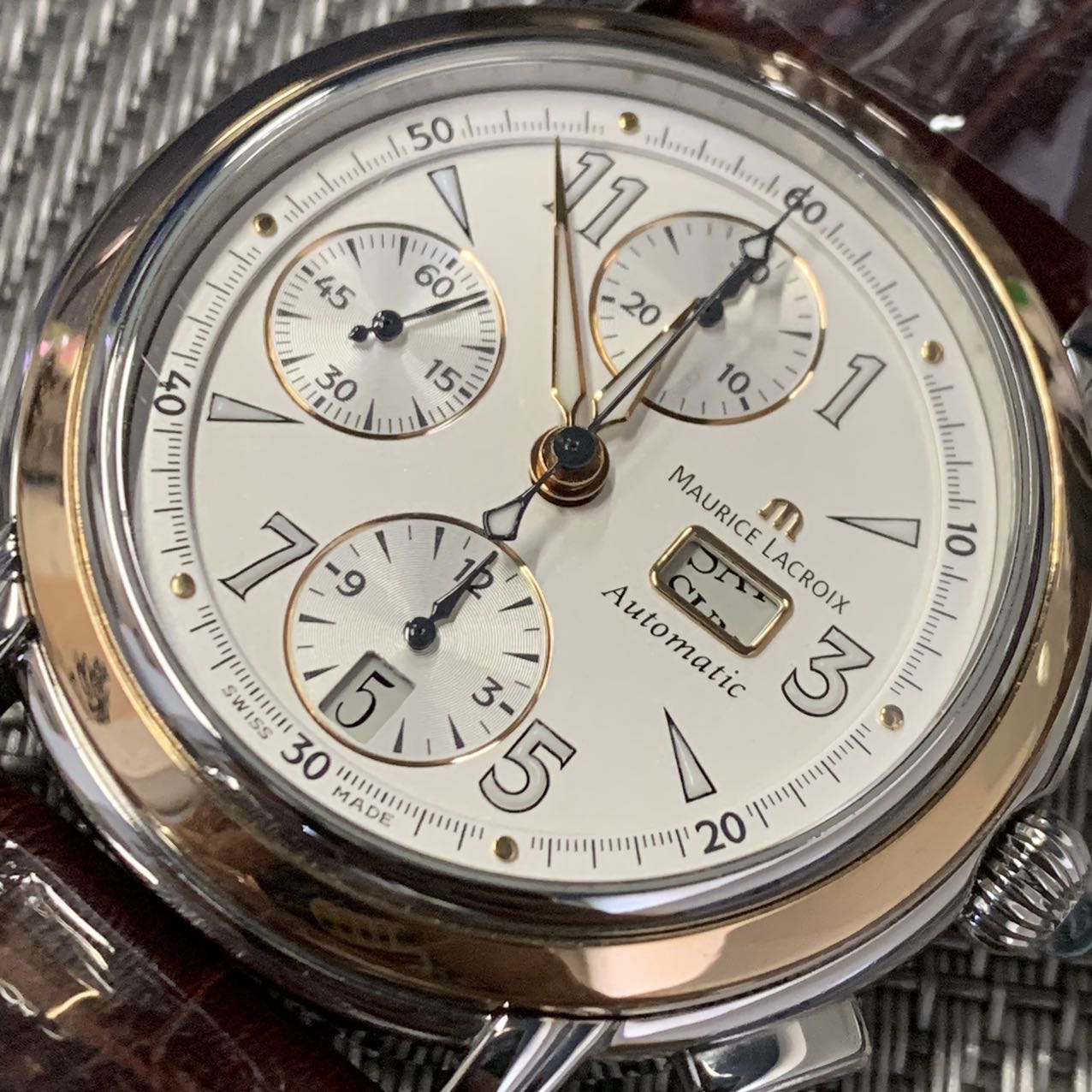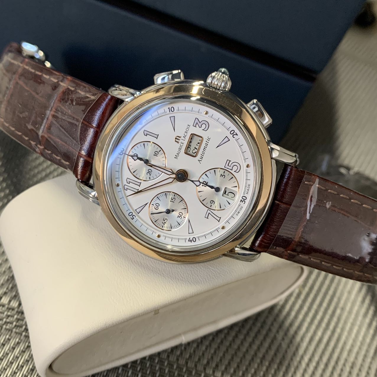 艾美匠心系列机械男表,公价3.4万,表径40mm,单表 97新,18K玫瑰金材质表圈,白盘 三眼计时盘面布局,高性价比正装款。