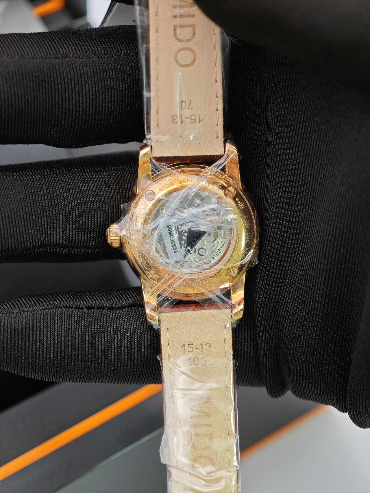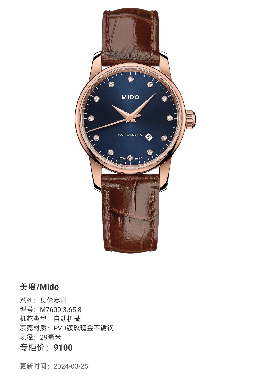 美度/Mido 贝伦赛丽 M7600.3.65.8 自动机械 PVD镀玫瑰金不锈钢 29毫米 专柜价9100