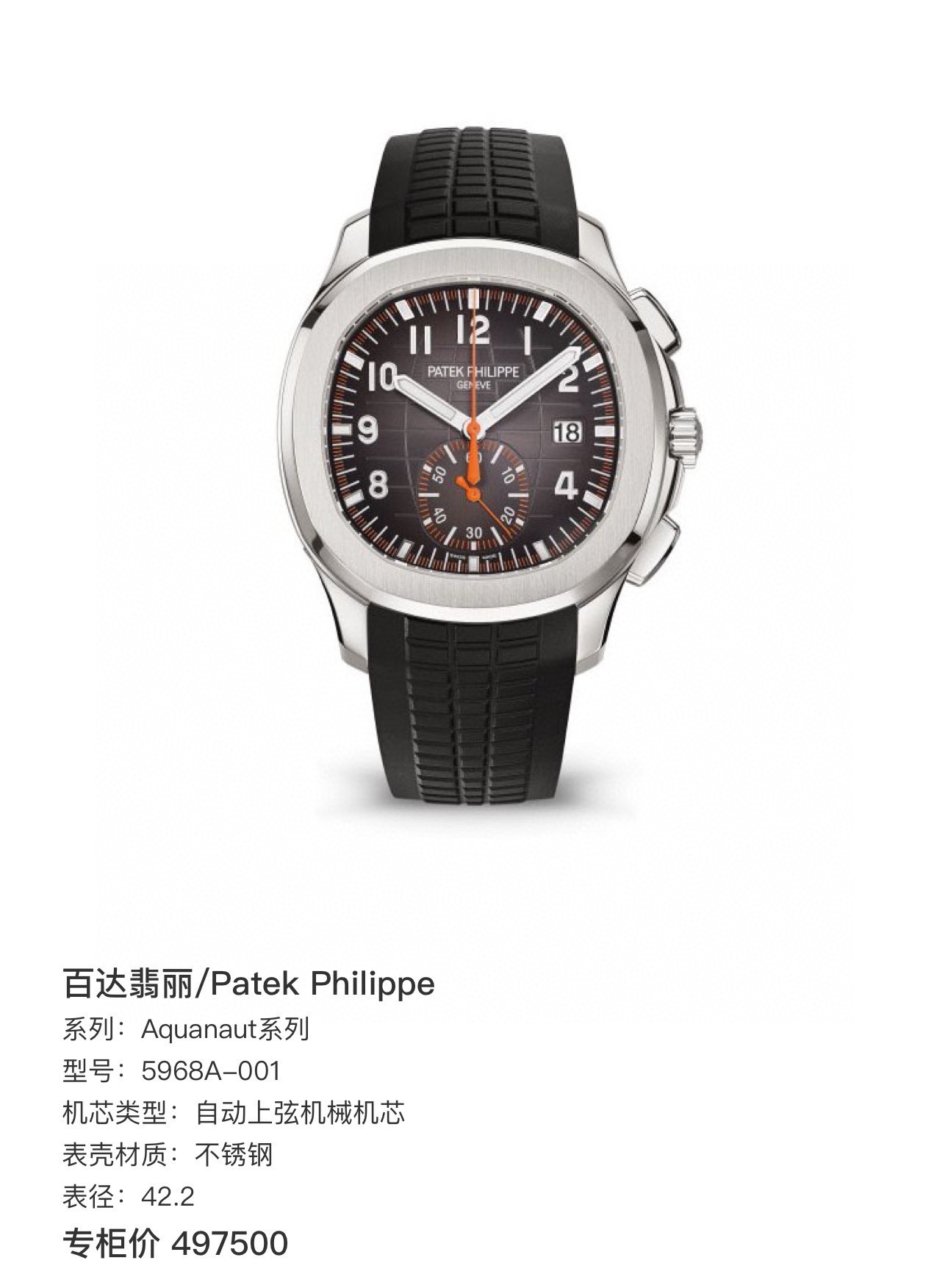 百达翡丽/Patek Philippe Aquanaut系列 5968A-001 自动上弦机械机芯 不锈钢 42.2 专柜价497500