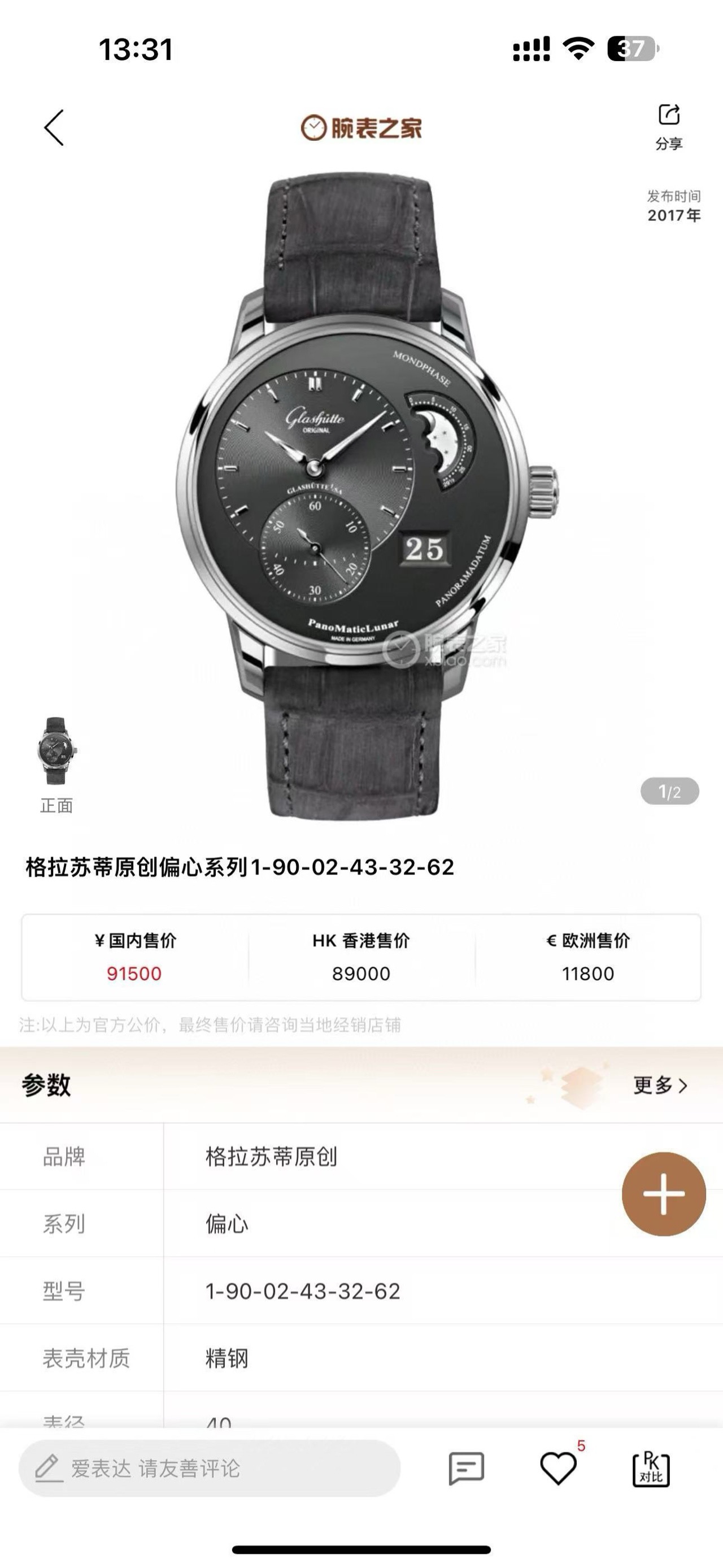 格拉苏蒂原创偏心系列1-90-02-43-32-62 精钢材质 40mm 自动机械 日期显示 大日历 月相 本店极品单表 现货好价~