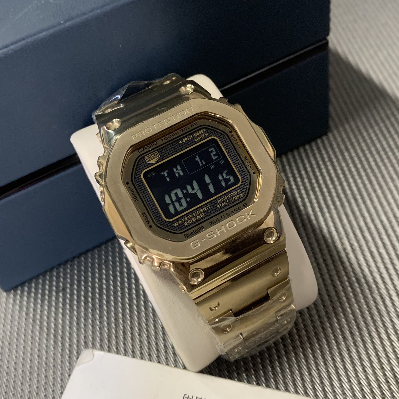 卡西欧小金块GMWB-5000D 35周年限量款,公价3990元,,整表PVD精钢镀金材质,英朗方形表壳,太阳能动力 蓝牙电波 抬手显示等功能,热门溢价款。