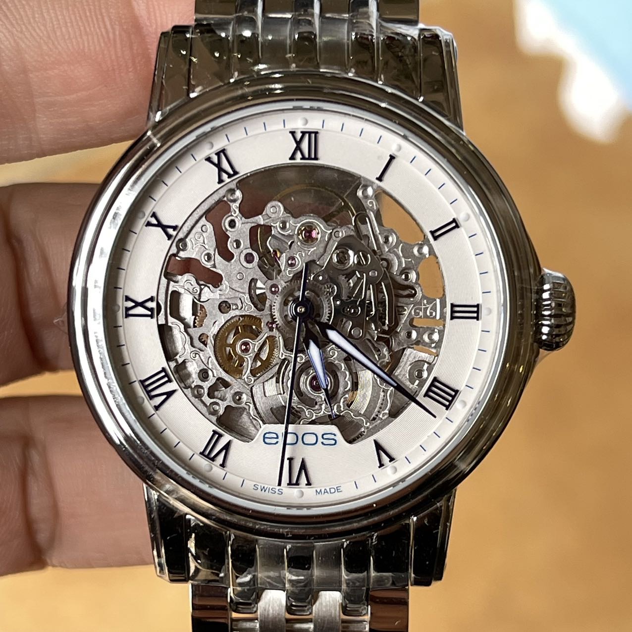 瑞士爱宝时 EPOS-Timeless永恒系列 追逐巨擘-白钢带 3390.155.20.20.30 自动机械男表,41mm,厚度9mm,公价20160元,2022年未使用全套