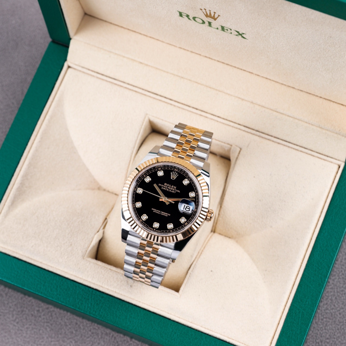 劳力士日志系列126333黑面钻刻自动机械男款 五珠链 18k黄金/钢材质 41mm表径 参考专柜价147000元