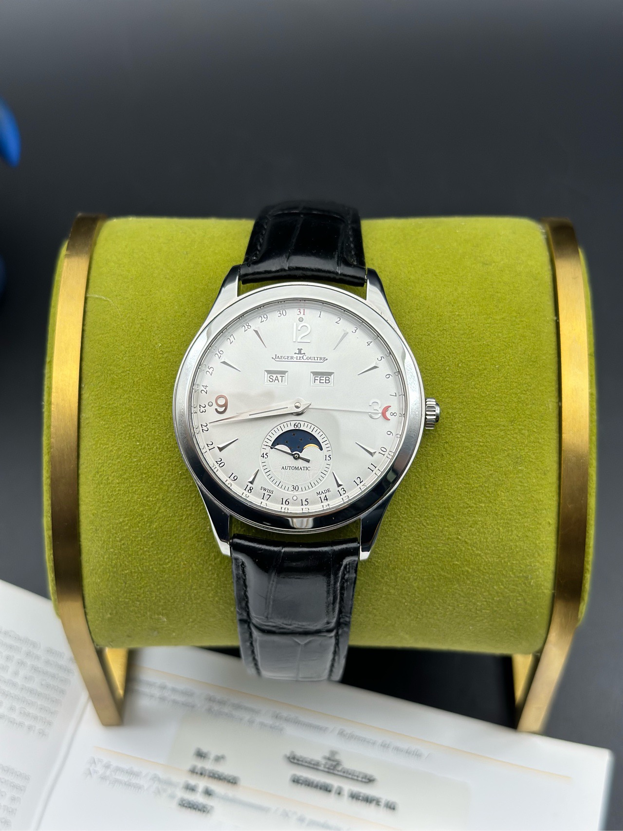 积家 大师系列 自动机械腕表 39mm表径 Q1558420 新款18K金陀 白面星期日历月相款 积家颜值担当 复杂功能机芯 极品18年带保卡 专柜售价76000元现货好价!