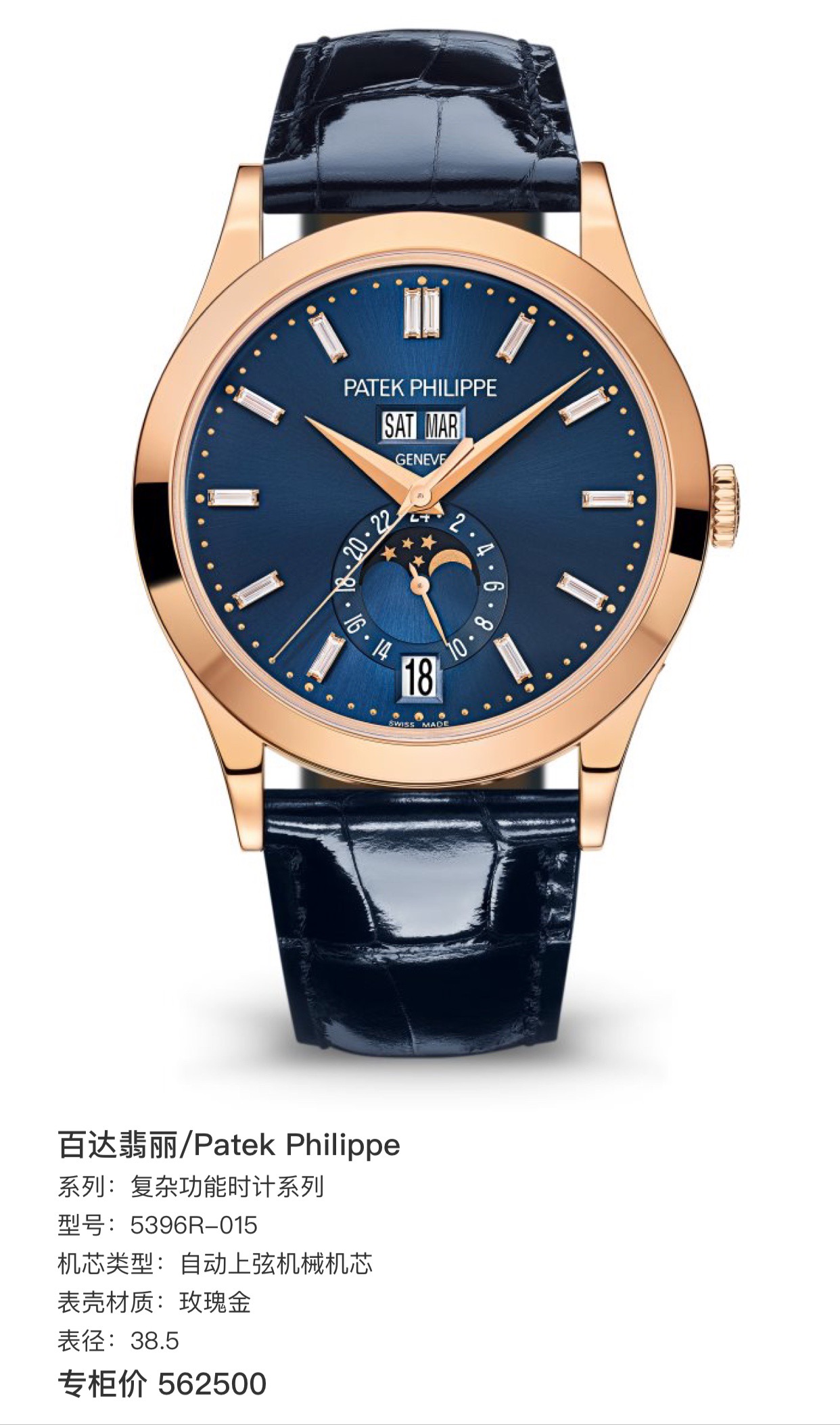 百达翡丽/Patek Philippe 复杂功能时计系列 5396R-015 自动上弦机械机芯 玫瑰金 38.5 专柜价562500,未使用全套~