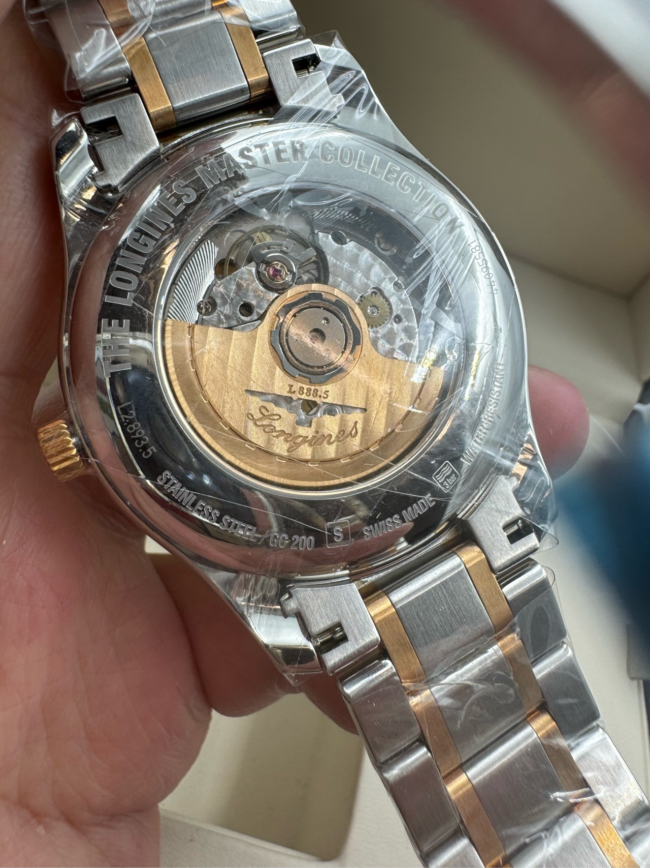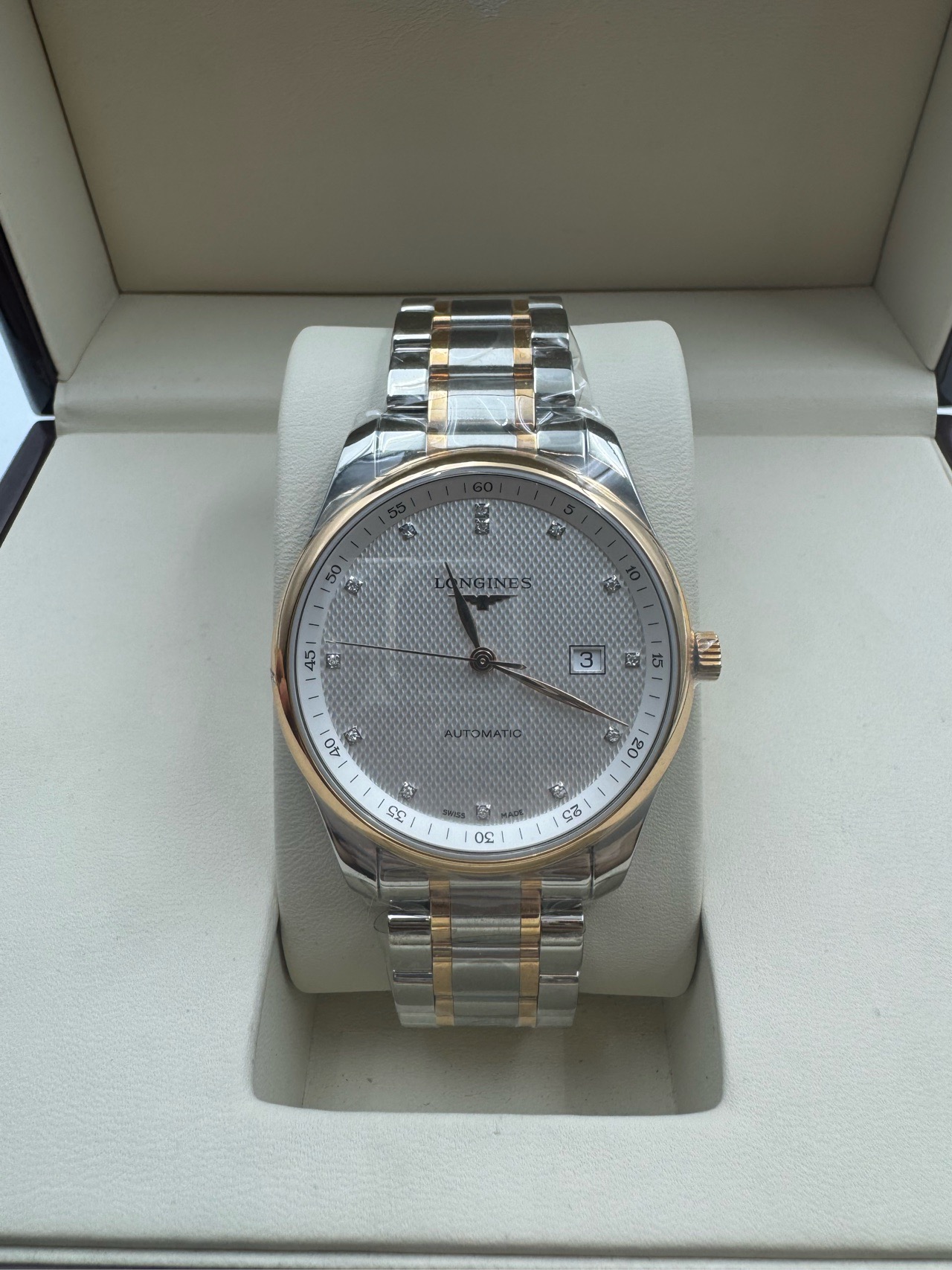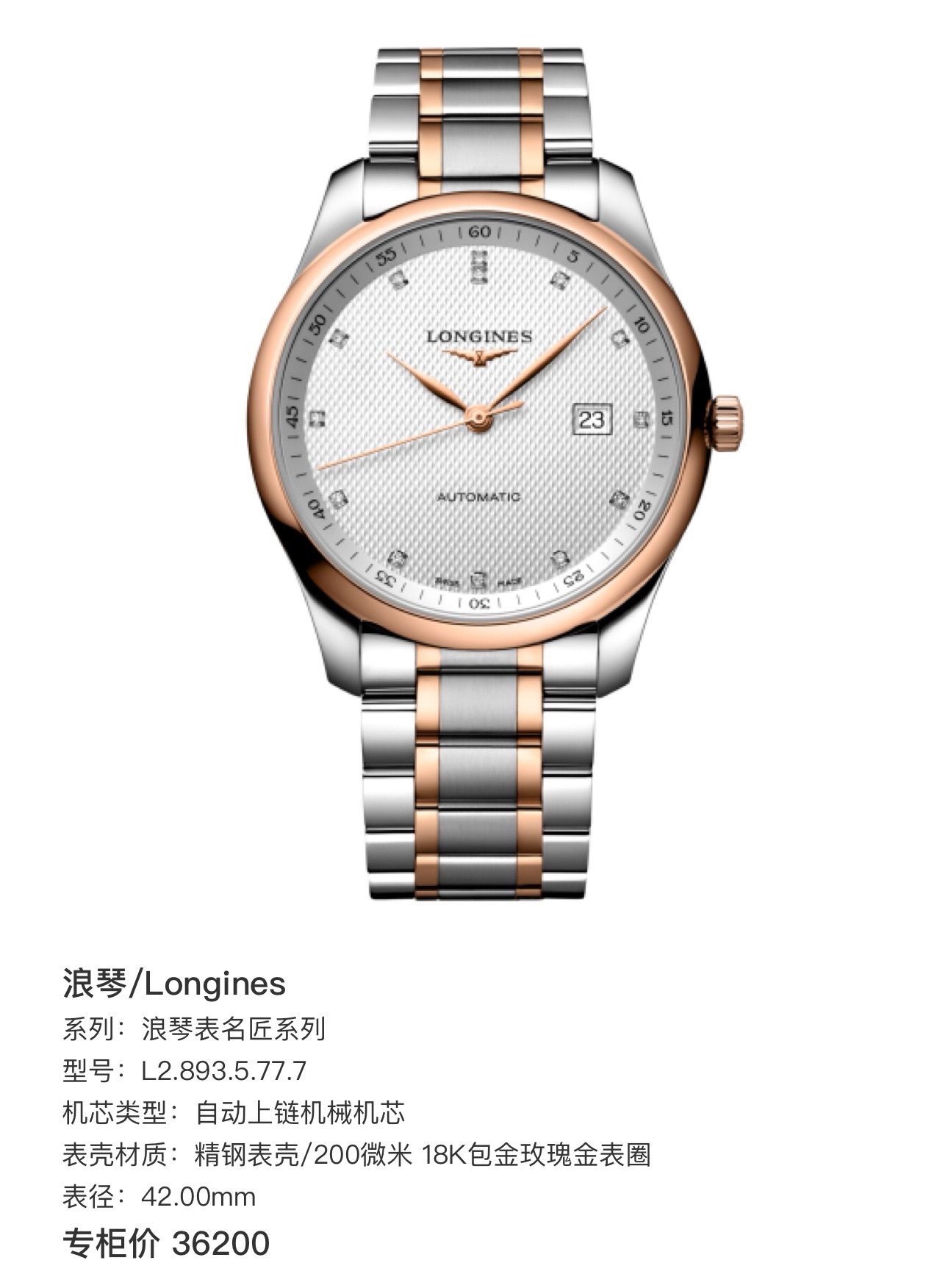 全新未使用,浪琴/Longines 浪琴表名匠系列 L2.893.5.77.7 自动上链机械机芯 精钢表壳/200微米 18K包金玫瑰金表圈 42.00mm 专柜价36200