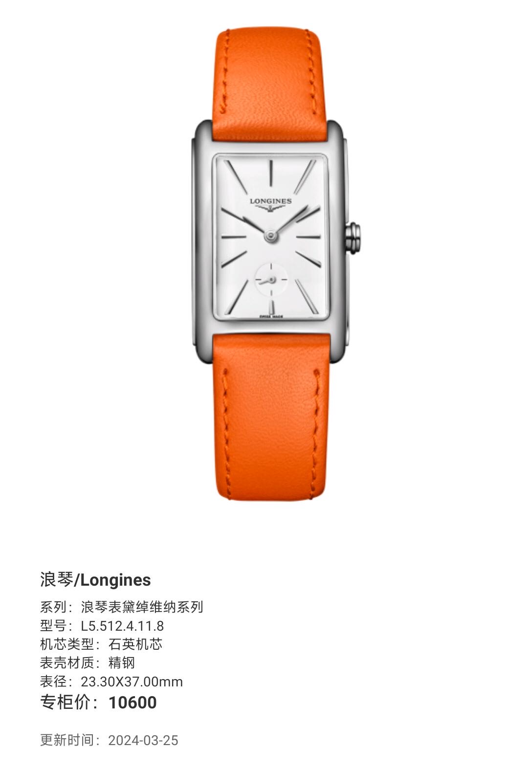 浪琴/Longines 浪琴表黛绰维纳系列 L5.512.4.11.8 石英机芯 精钢 23.30X37.00mm 专柜价10600