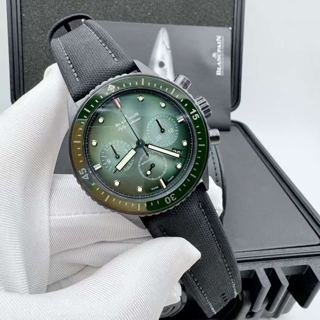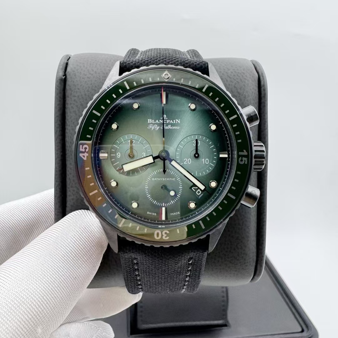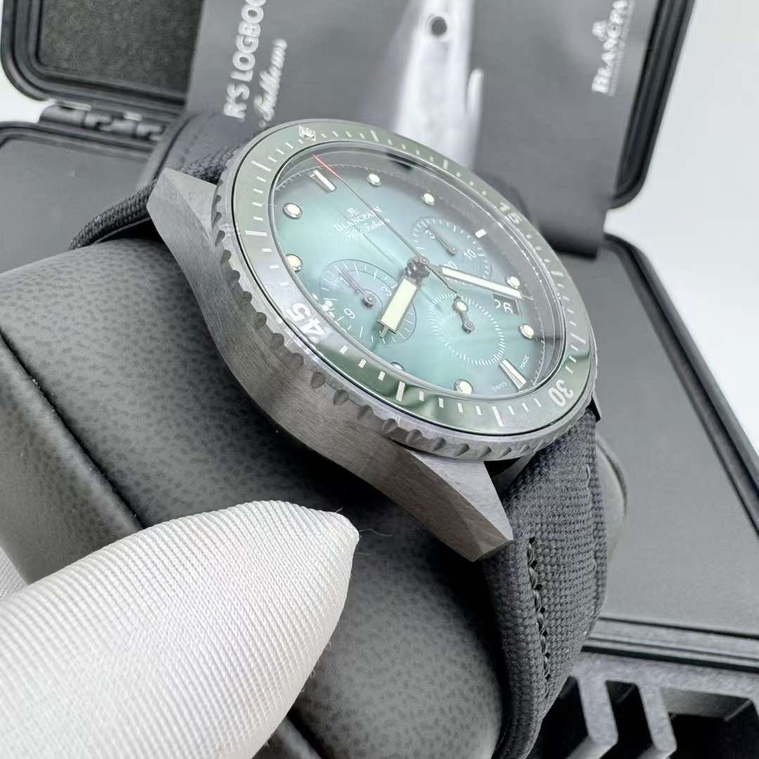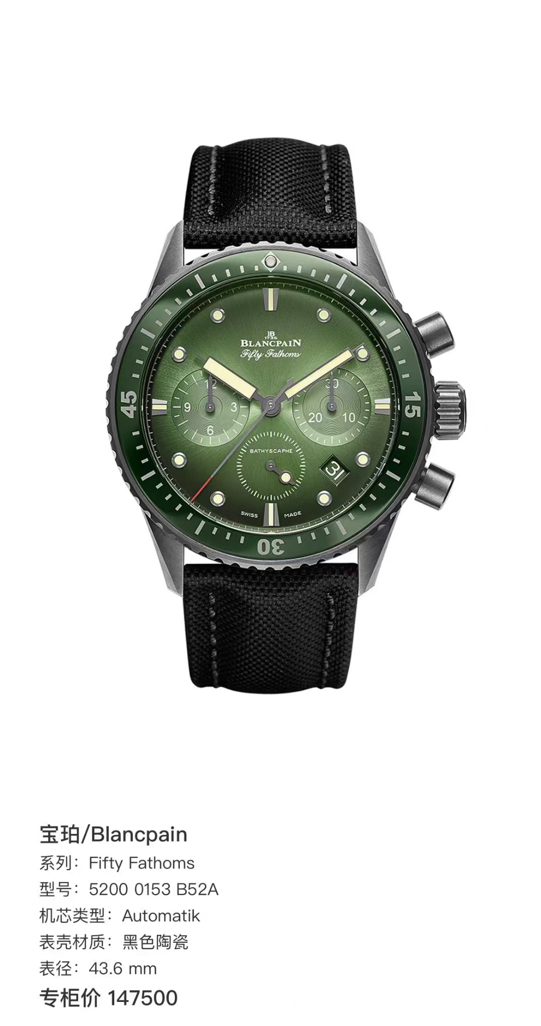 宝珀5200-0153-B52A极光绿43.6表径 黑陶瓷表壳搭配限产绿盘 不同角度有蓝绿、青绿、艳绿等不同变化 内置飞返计时机芯 附件 极品全套