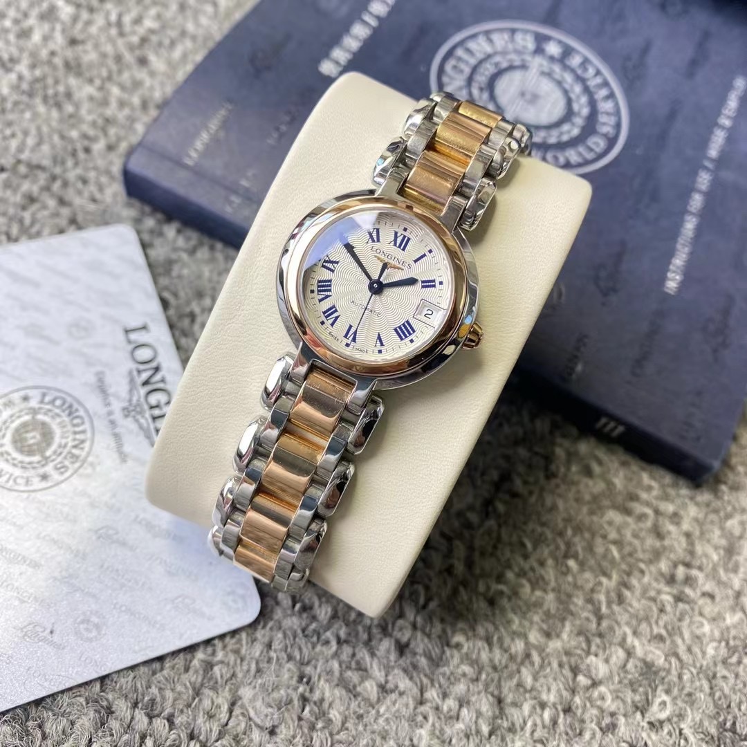 浪琴心月111系列机械女表,公价2.8万,表径26.5mm,全套附件齐全,极品成色,整表18k玫瑰金相间,优雅气球形表壳,上手端庄 奢华。