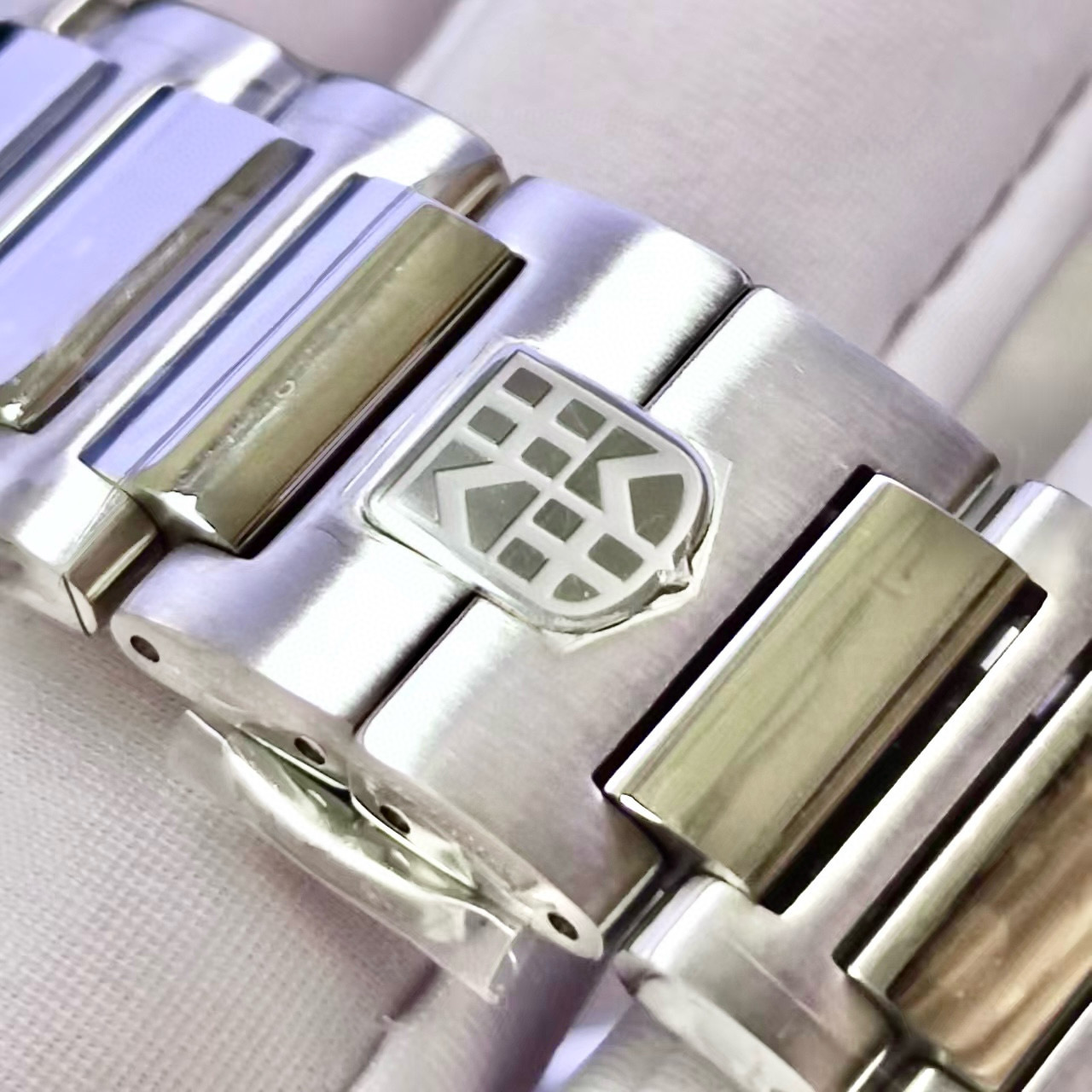 【鹦鹉螺同款】此款腕表是康斯登品牌最新设计语言,采用百达翡丽鹦鹉螺的同款设计风格,并匹配鹦鹉螺腕表一摸一样的一体式钢带。