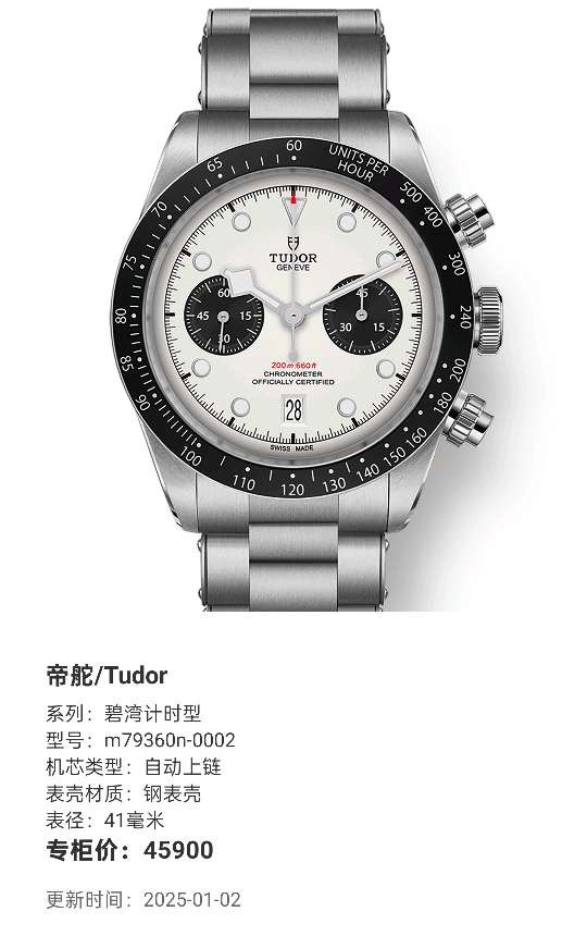 帝舵Tudor熊猫碧湾计时型m79360n-0002自动机械腕表