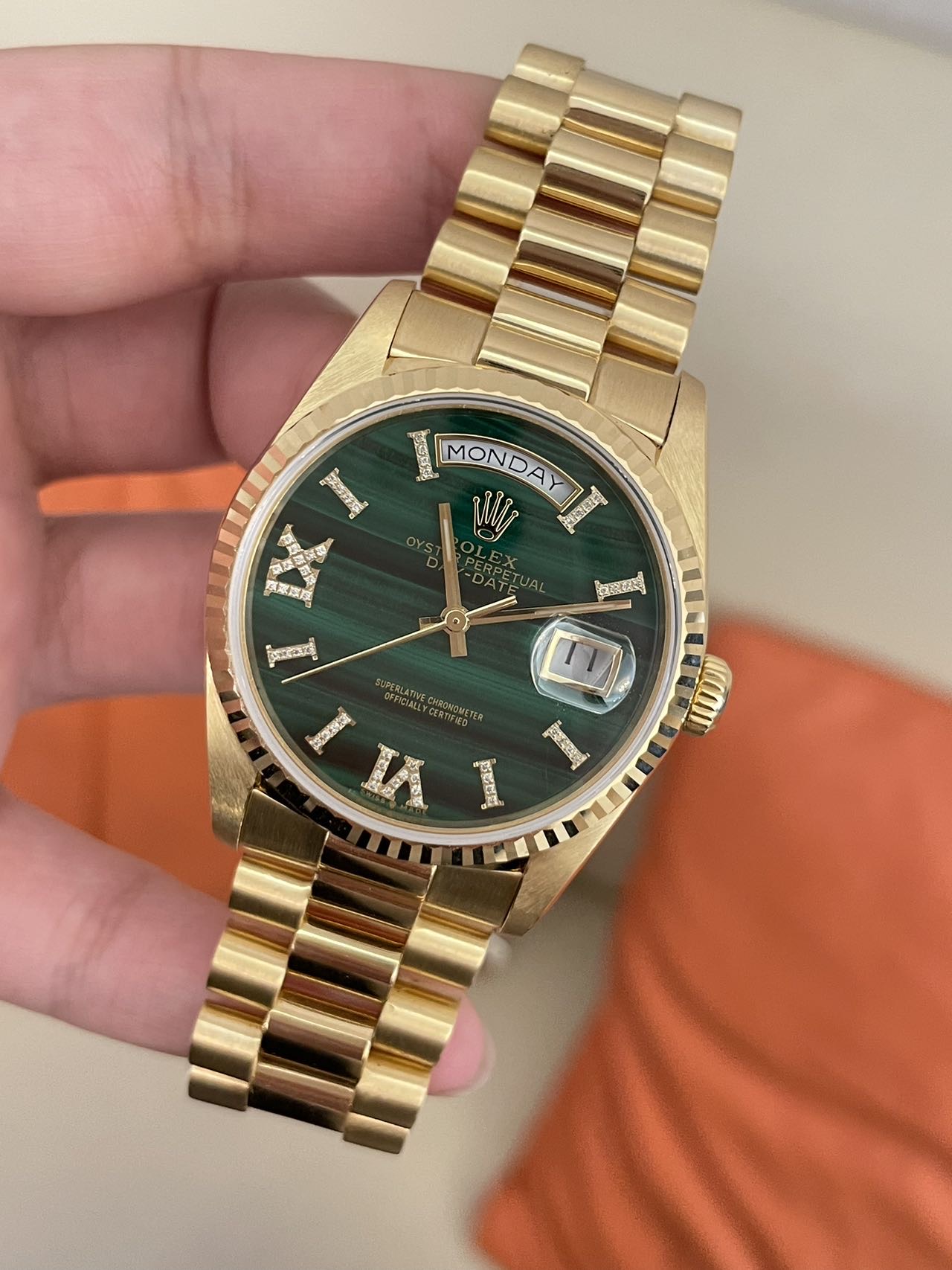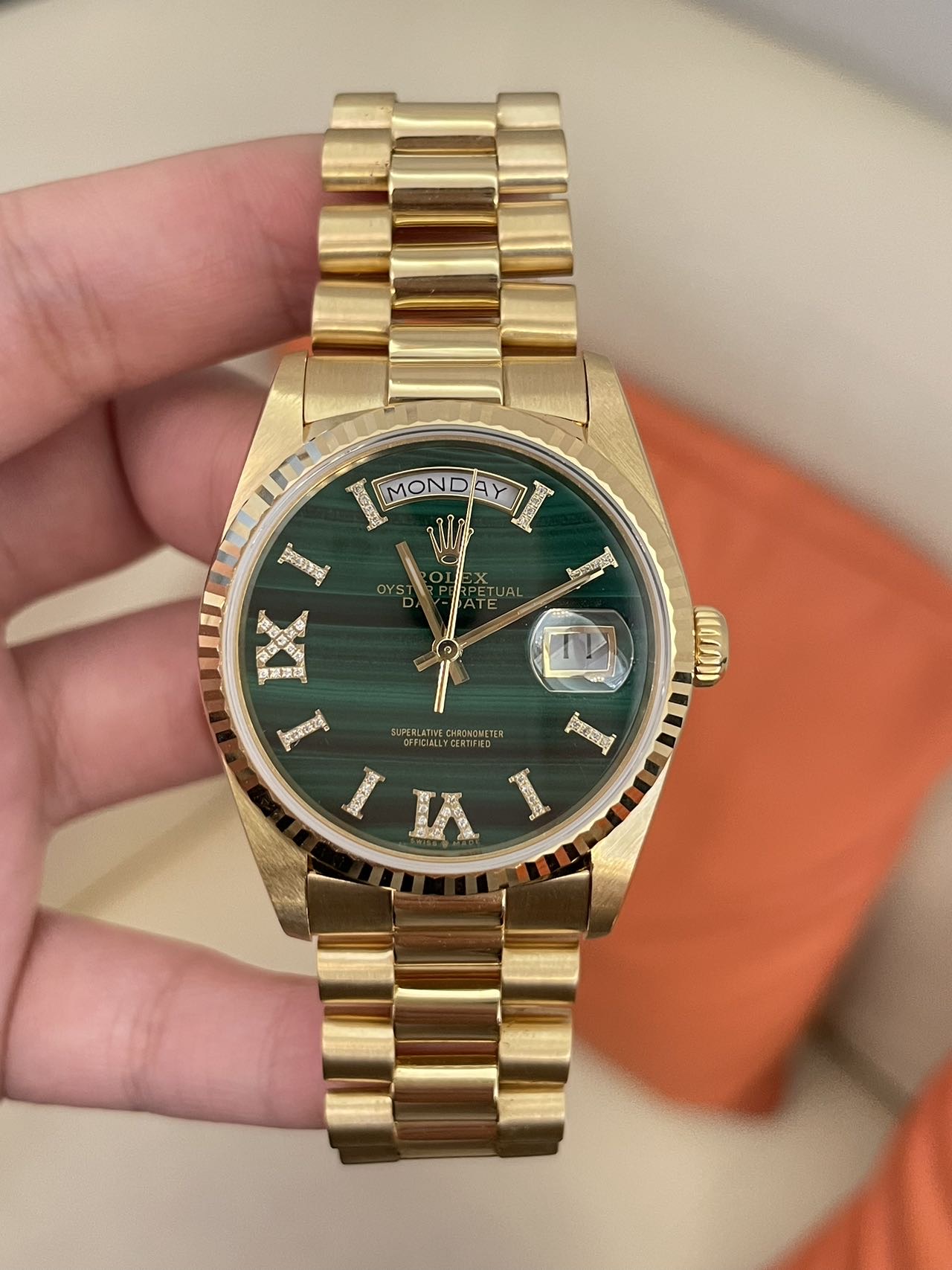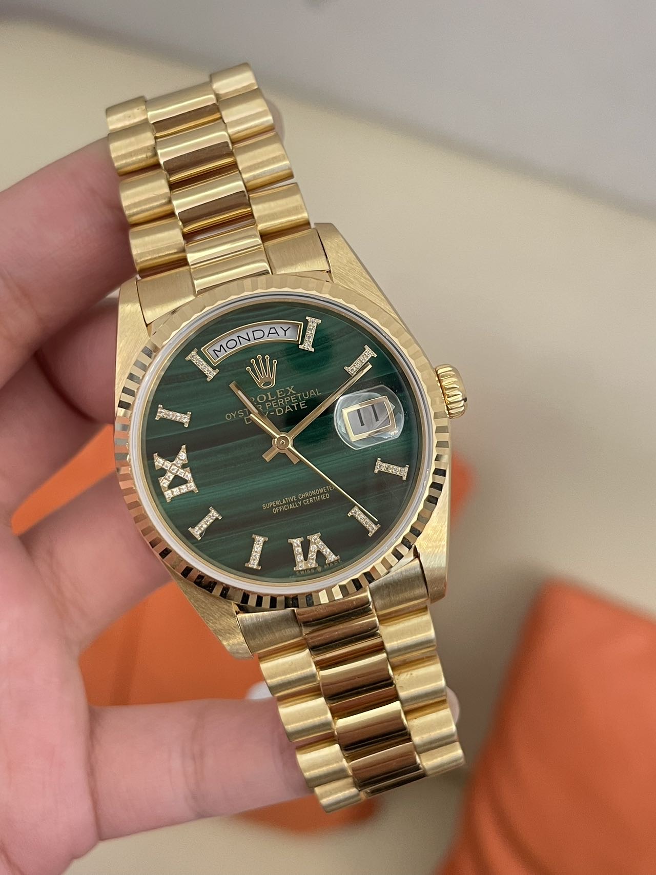 劳力士 星期日历型系列 18238 后镶钻 自动机械 36mm表径 单表 整表18K黄金材质
