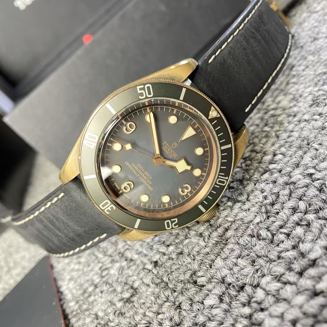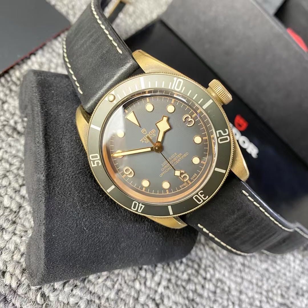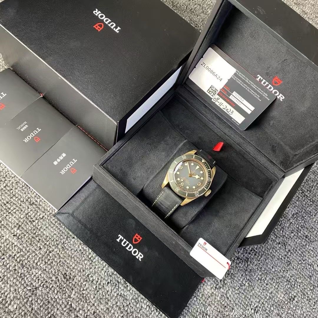 帝舵碧湾系列-79250,青铜石板灰,公价3.56万,表径43mm,全套附件齐全(2023年11月购买) 青铜材质表壳,渐变灰色面表盘,单向旋转氧化铝质表圈,搭载自产 天文台认证MT5601长动力机芯。