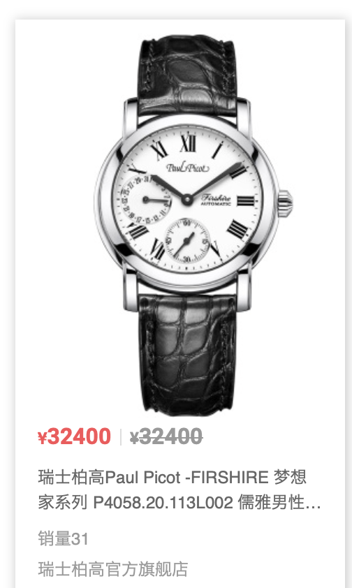 瑞士柏高Paul Picot -FIRSHIRE 梦想家系列 P4058.20.113L002 儒雅男性 商务休闲 自动机械男表,38mm,公价32400元,95新单表,后配表带(赠送皮表带一条)