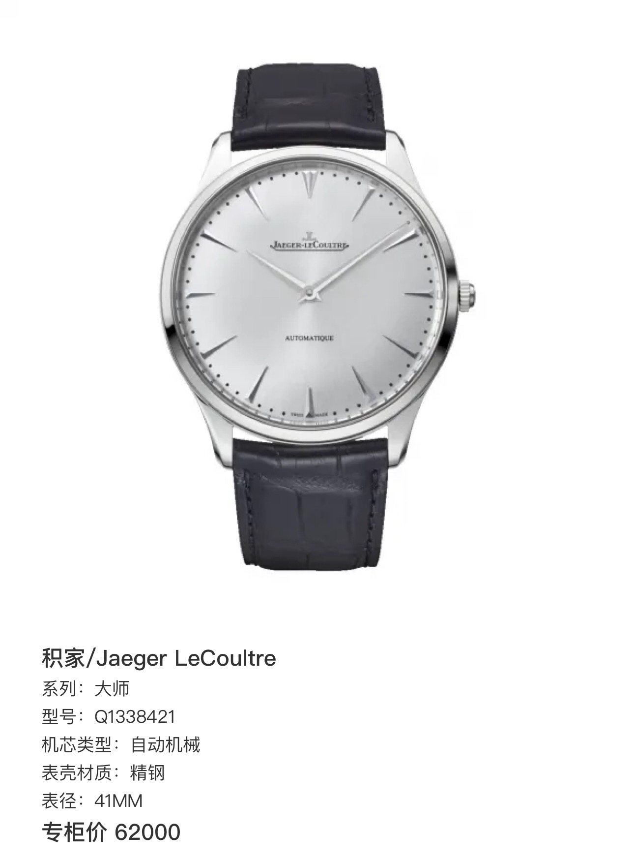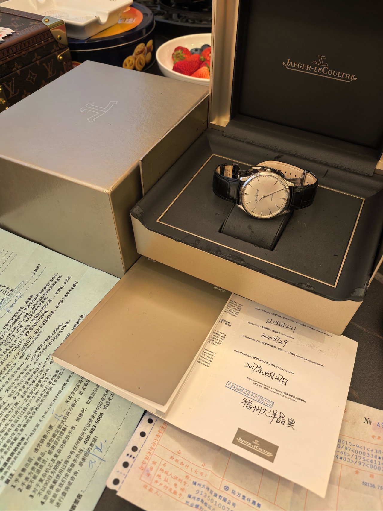 积家/Jaeger LeCoultre 大师 Q1338421 自动机械 精钢 41MM 专柜价62000,2017年国行全套带发票,附件齐全,现货好价