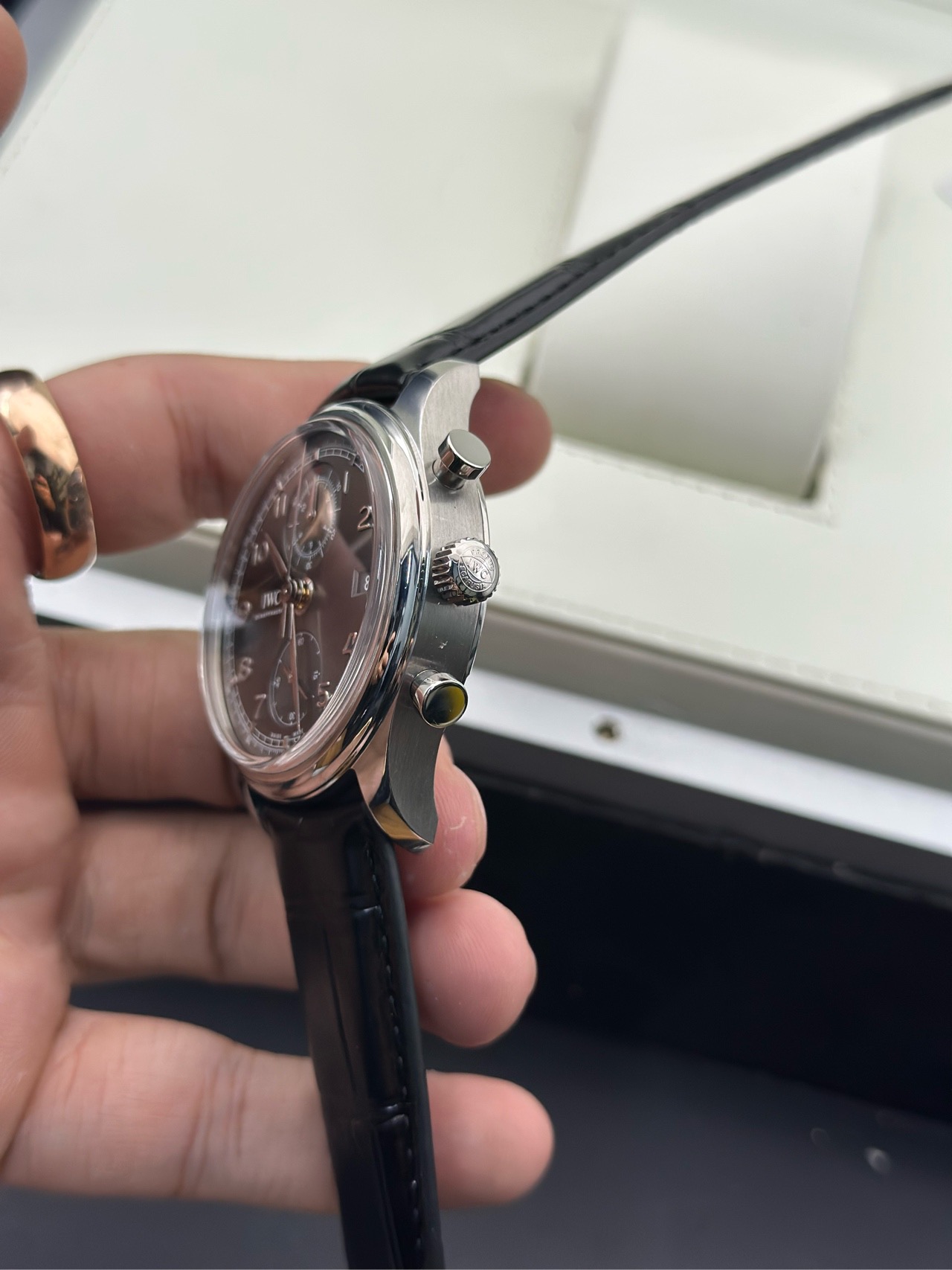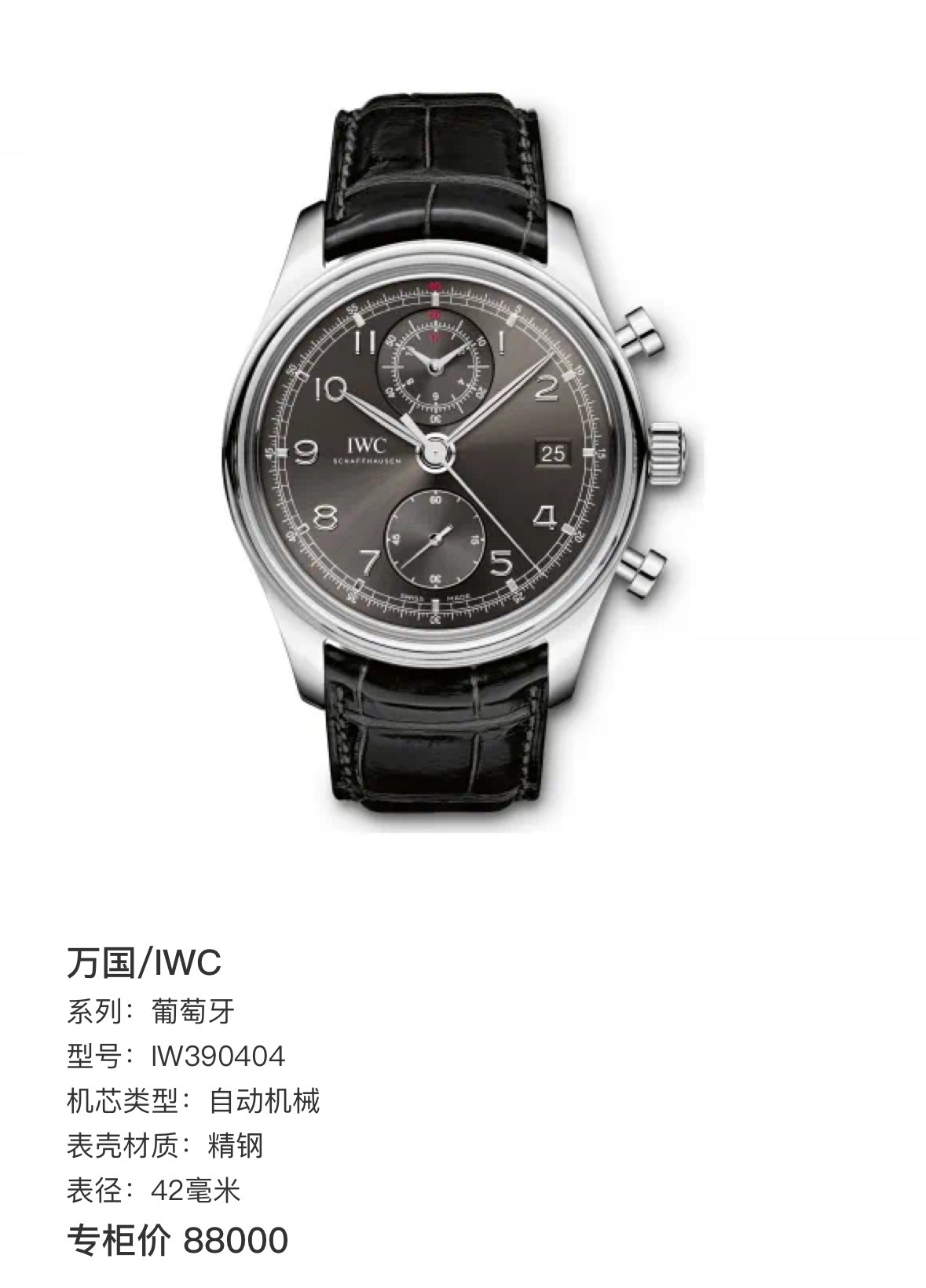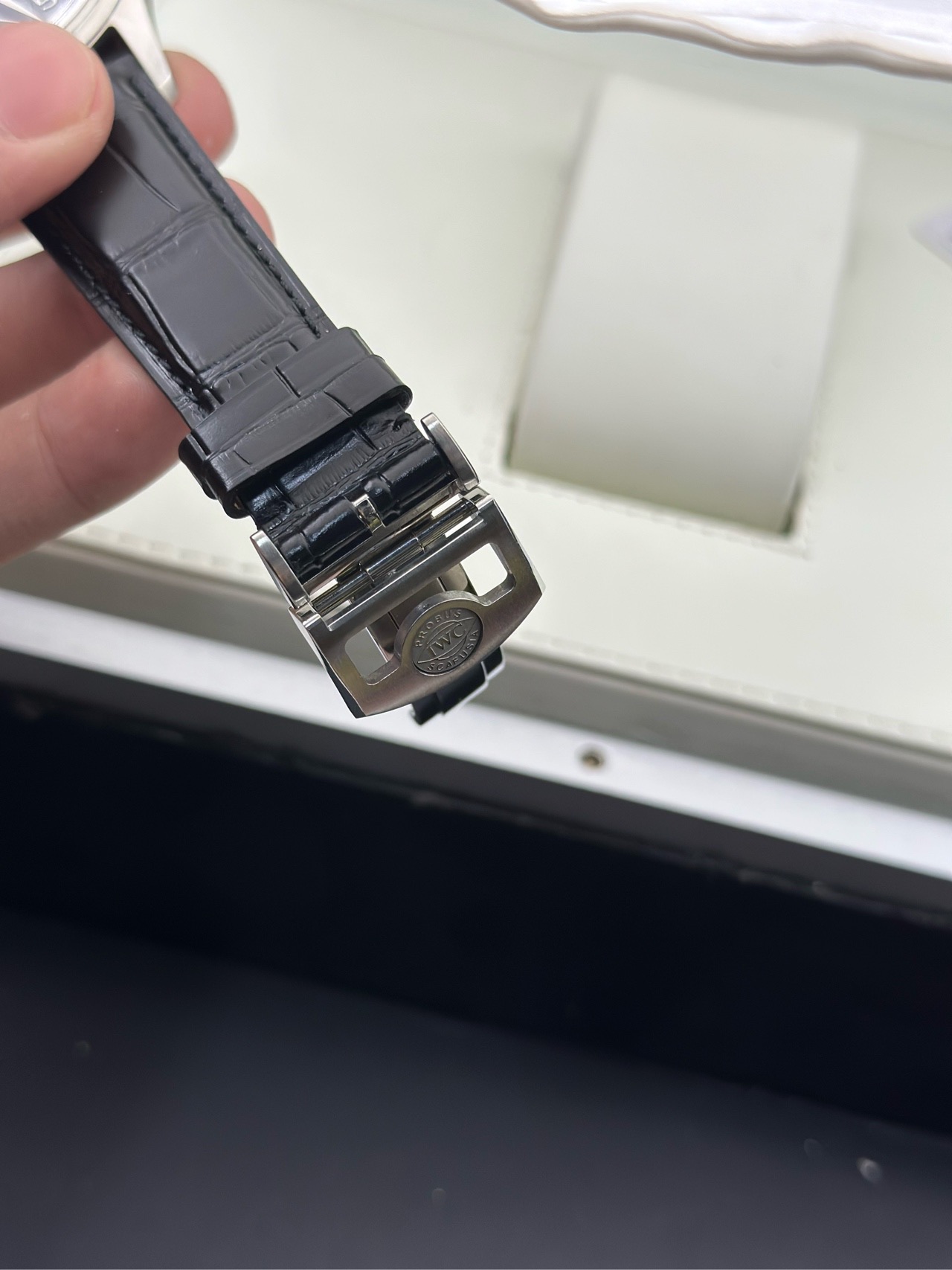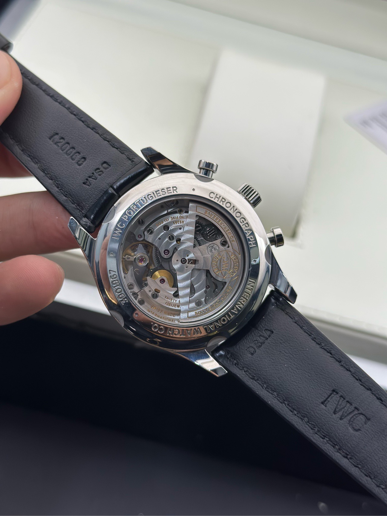 万国 葡萄牙系列 型号:IW390404 男士自动机械表,精钢材质 42mm 深灰色放射面,日期显示计时飞返逆跳功能 新款折叠扣,背透啄木鸟机芯,68小时动力储备 完美成色2017年全套 专柜价88000,现货特价