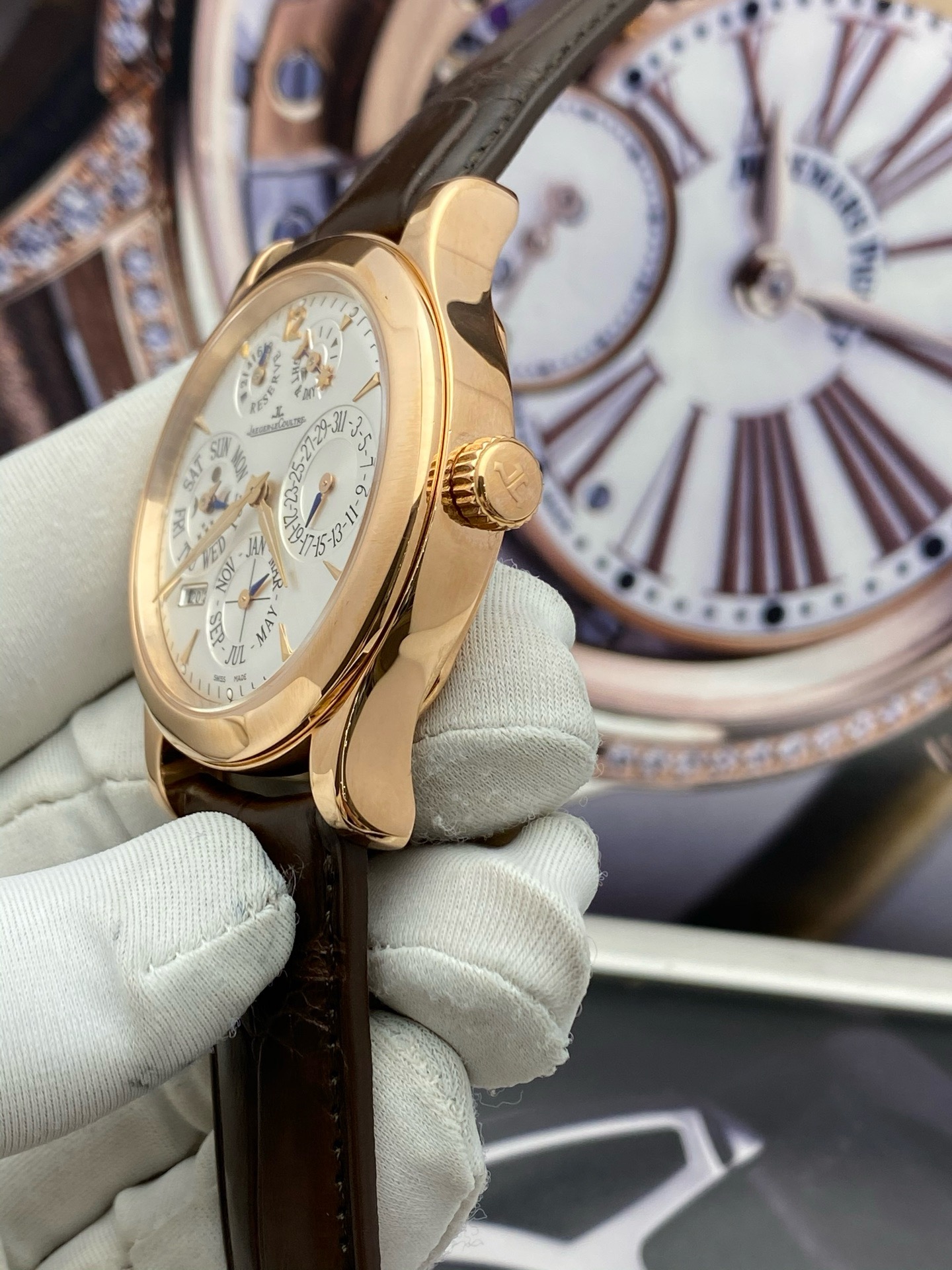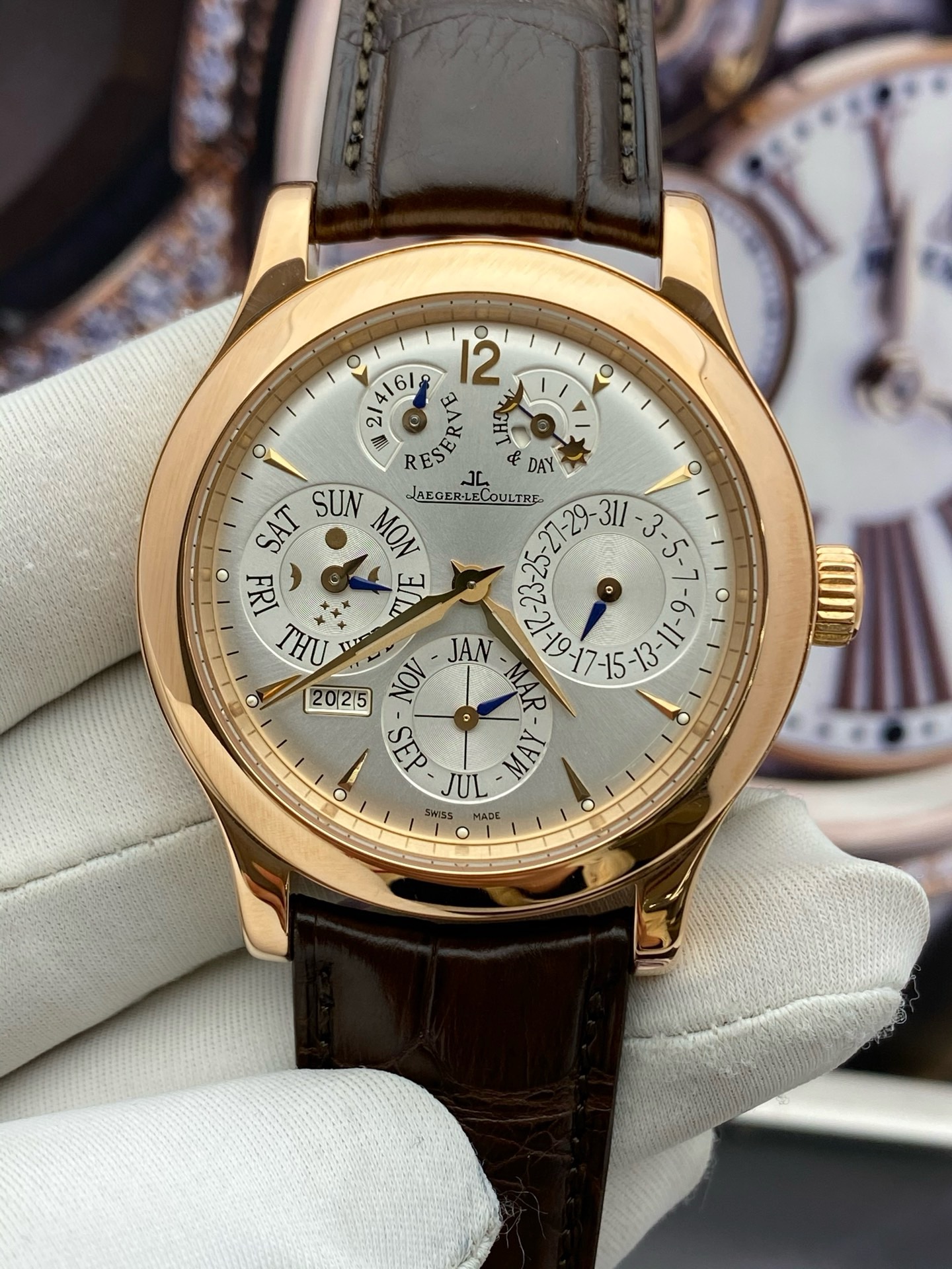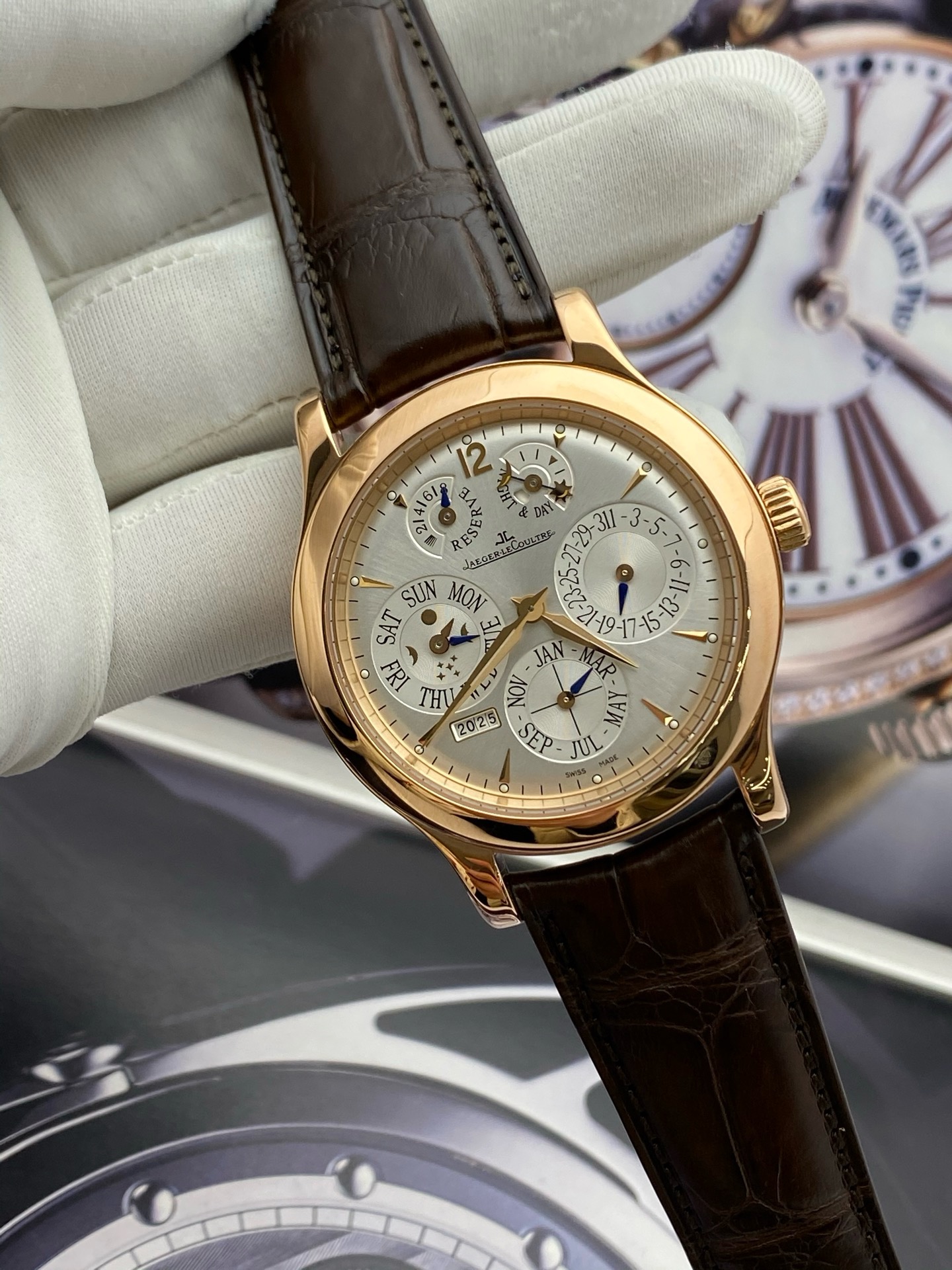 积家大师系列Q161242A、单表、41.5盘、手动机械、日期、星期、月份、年历、月相、万年历、动力储存显示、折叠扣、专柜售价470000