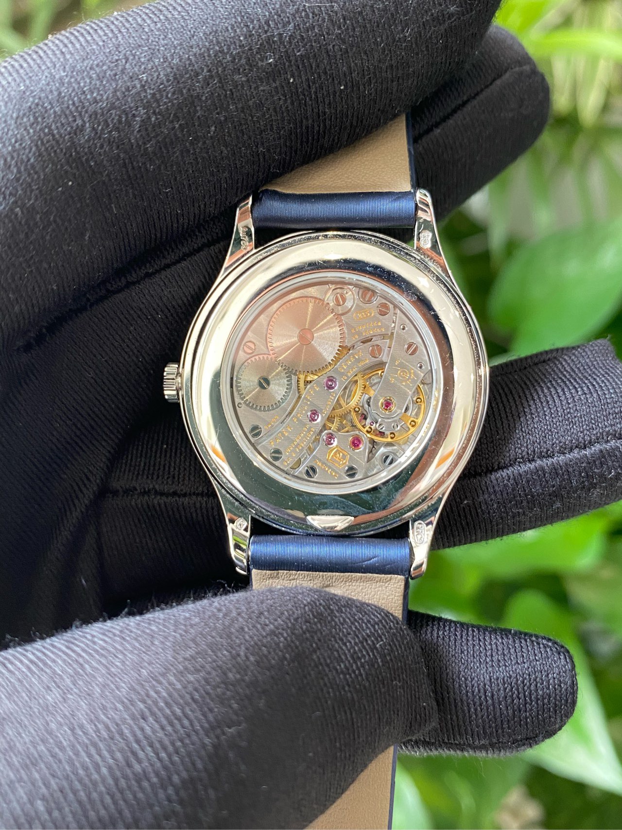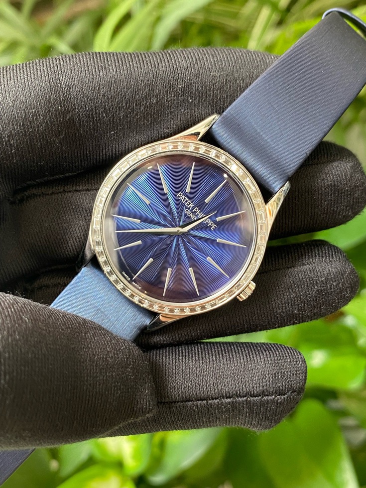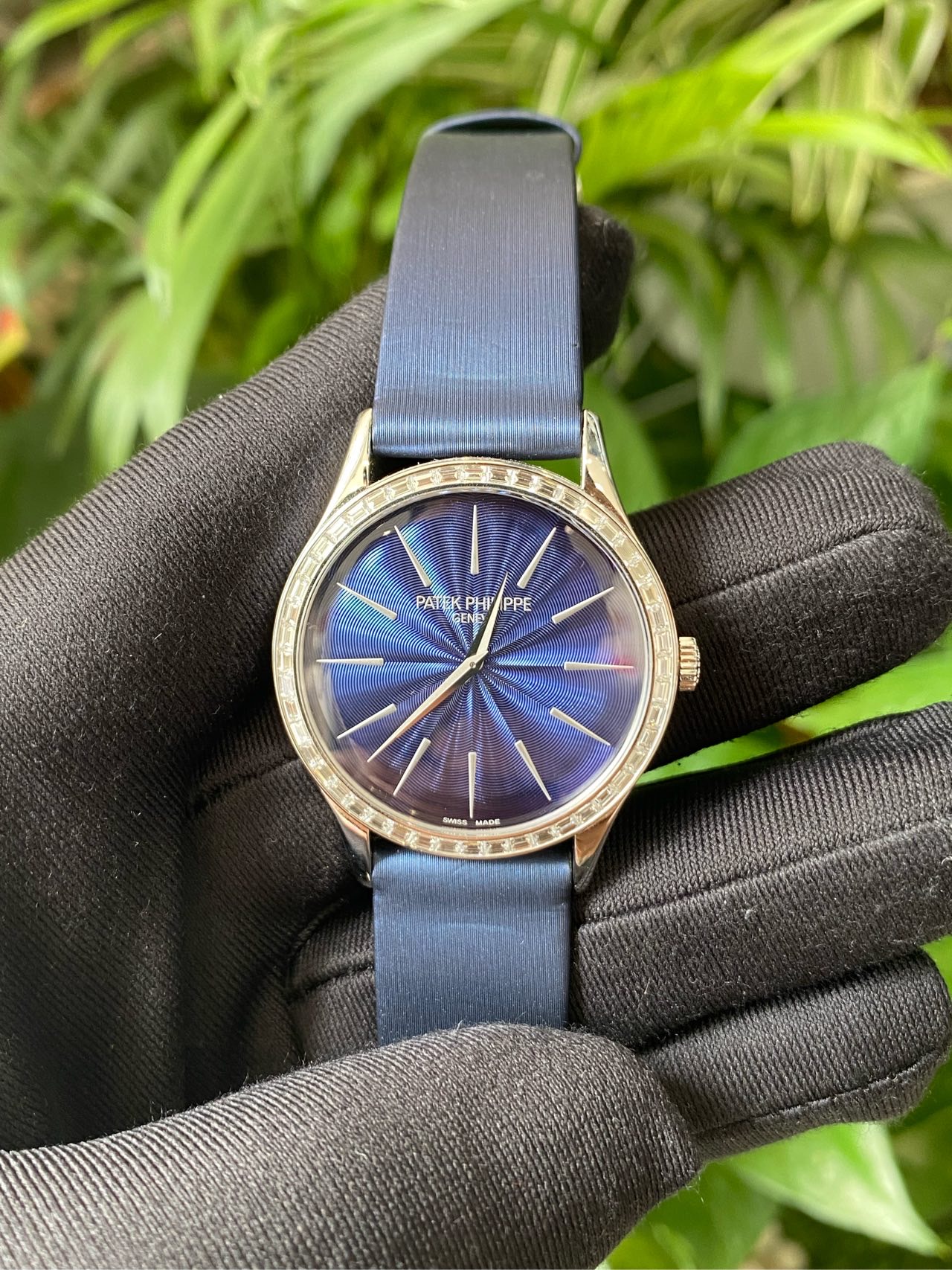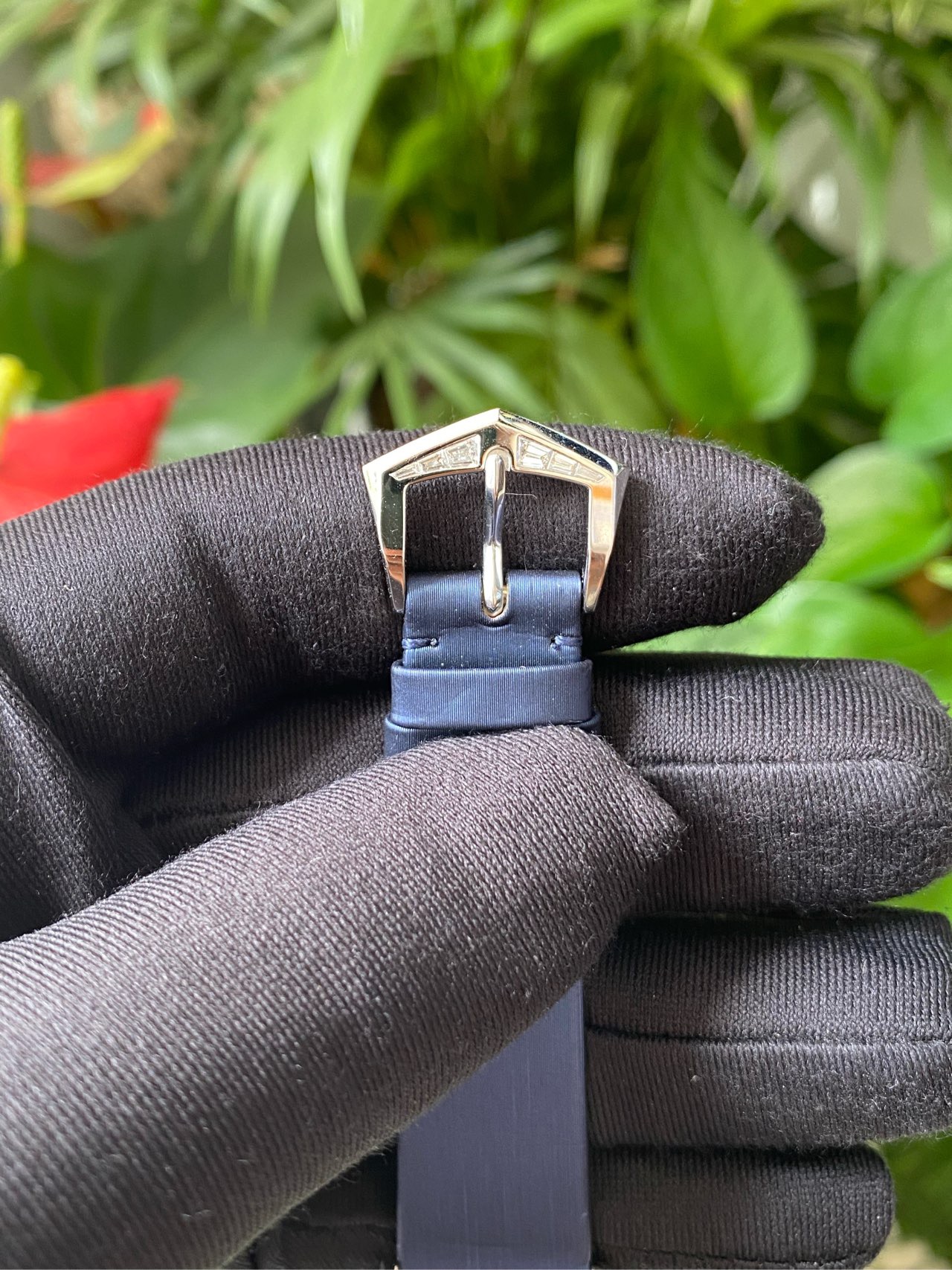 百达翡丽古典系列4897/300G-001手动机械女表,白金表壳,方T钻,放射性蓝色表盘,33mm完美表径,