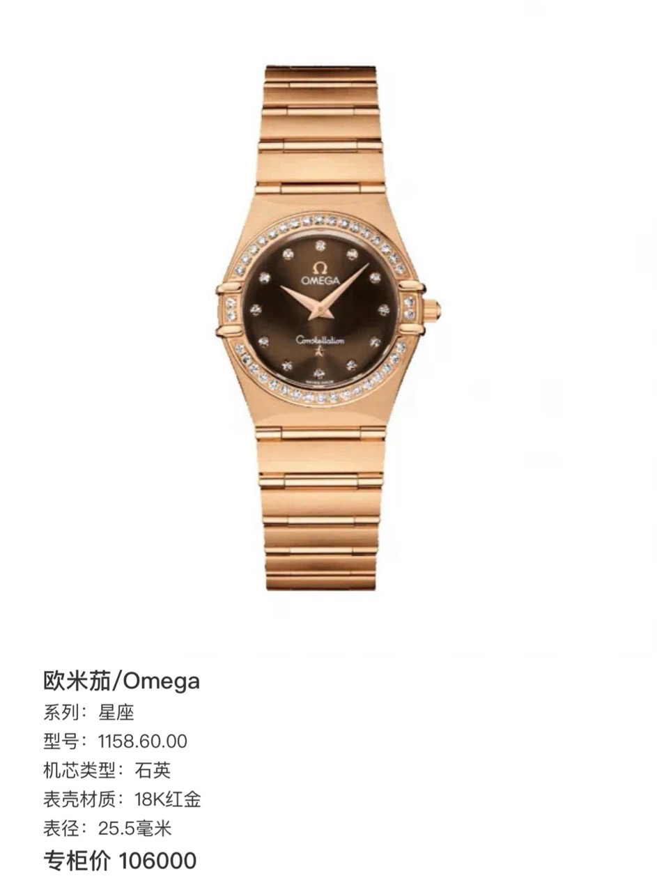欧米茄 星座 1158.60.00 石英 18K红金 25.5mm表径 空白卡全套 专柜价106000 现好价~