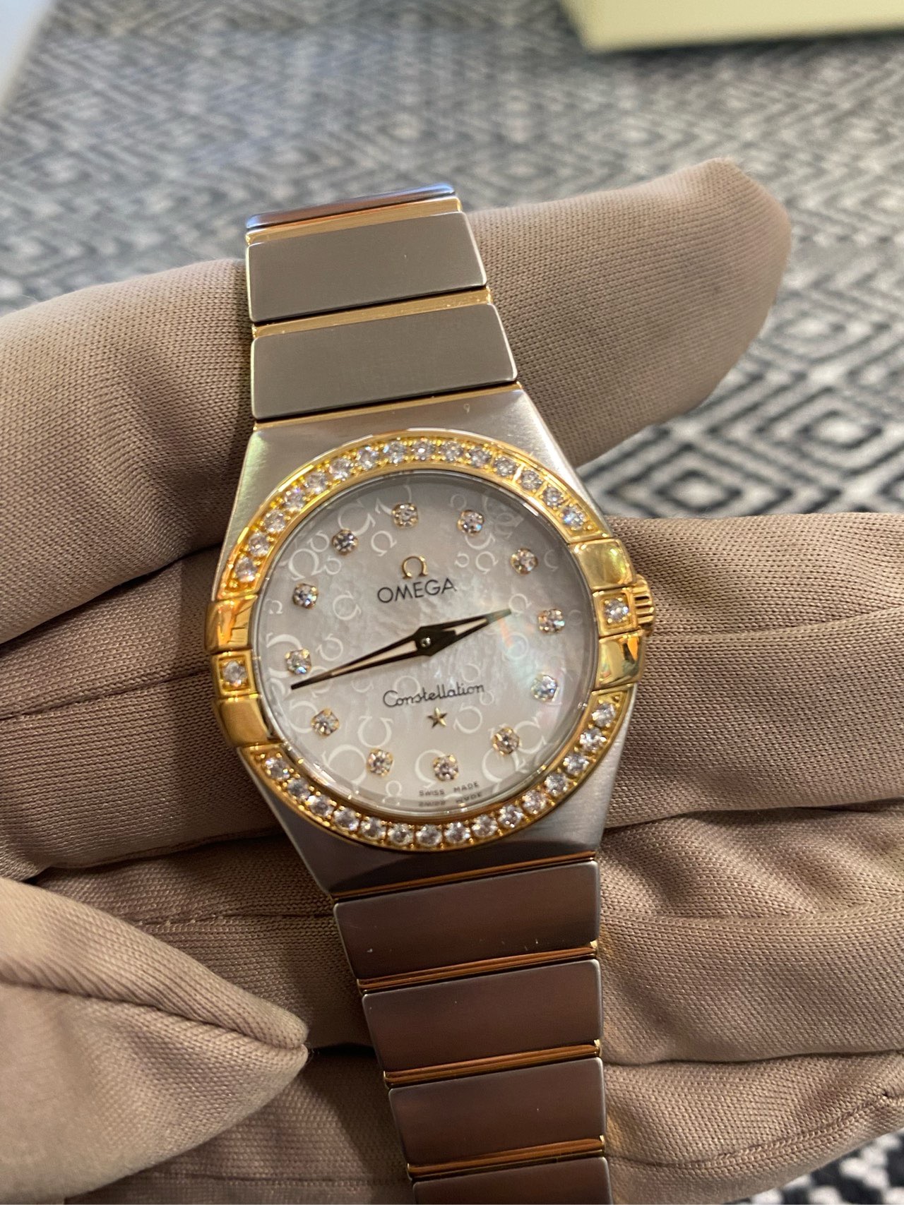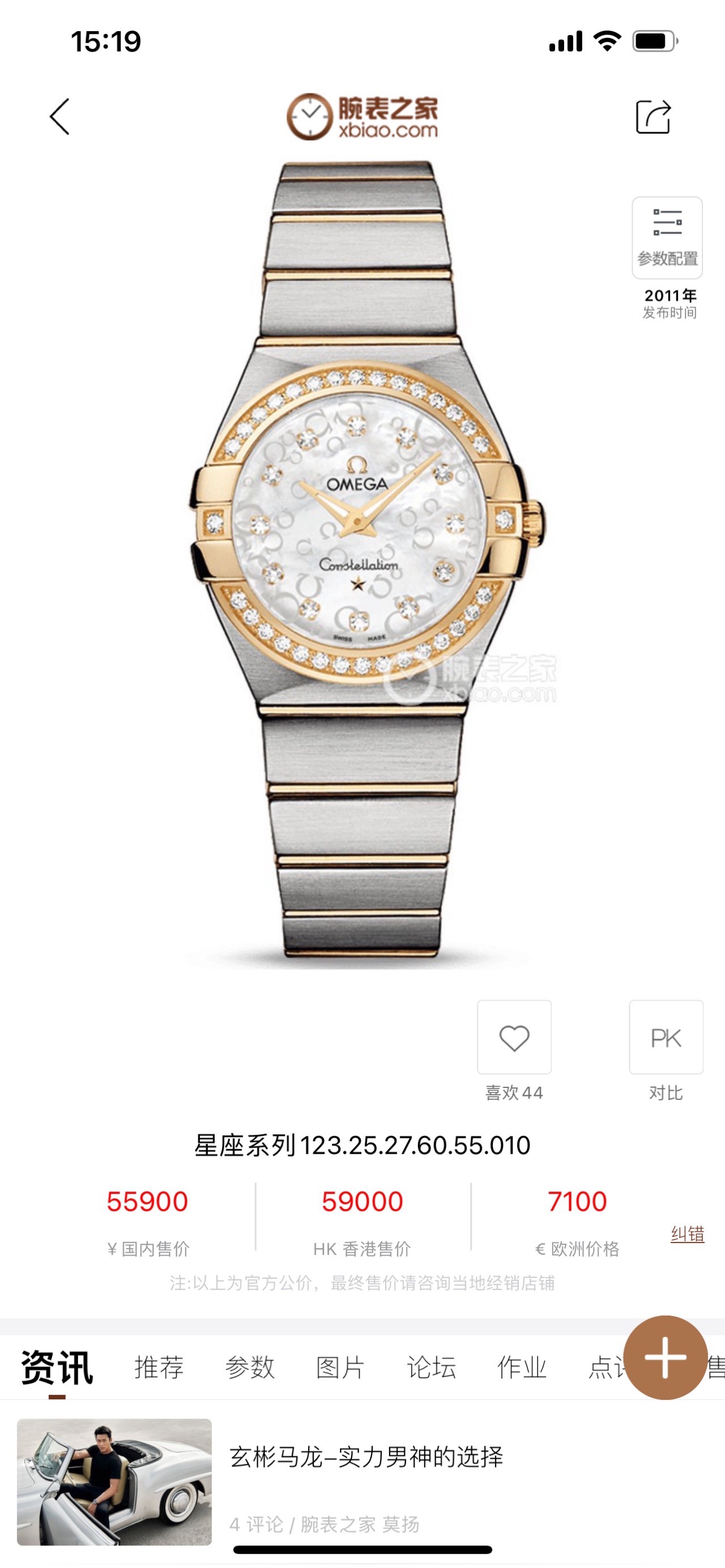 欧米茄星座女表123.25.27.60.55.010,27mm表径,间金18k黄金,公价55900,好价出售