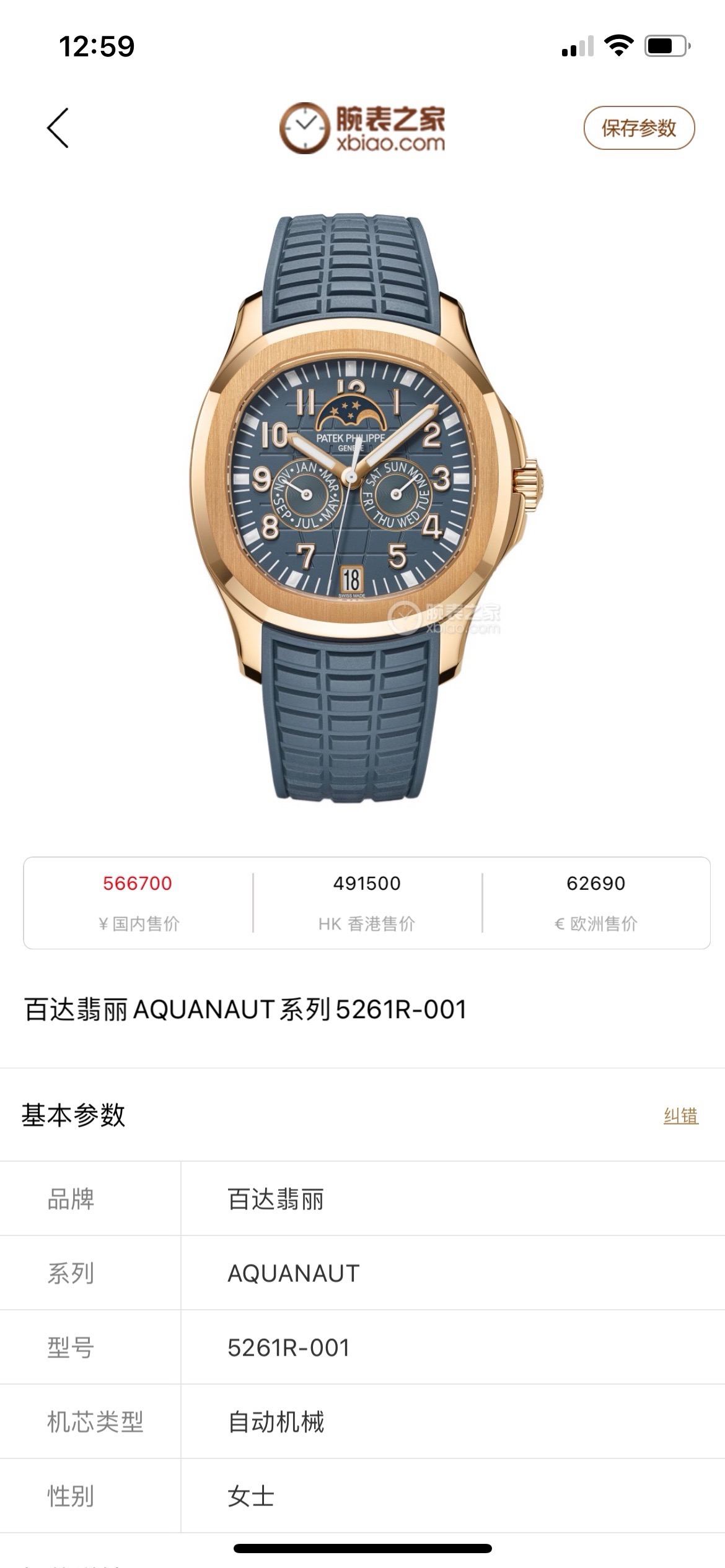 百达翡丽/Patek Philippe Aquanaut系列 5261R-001 自动上弦机械机芯 玫瑰金 39.9 专柜价566700